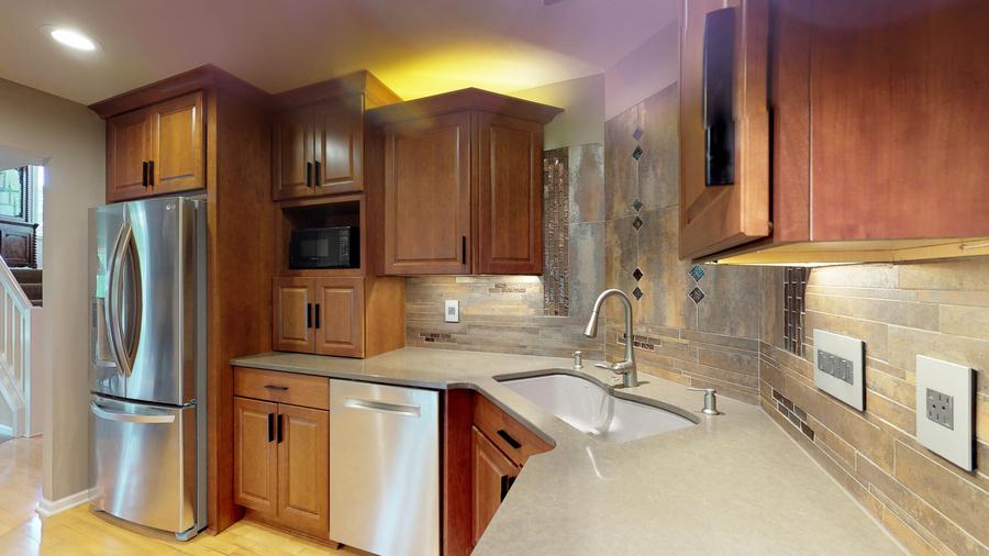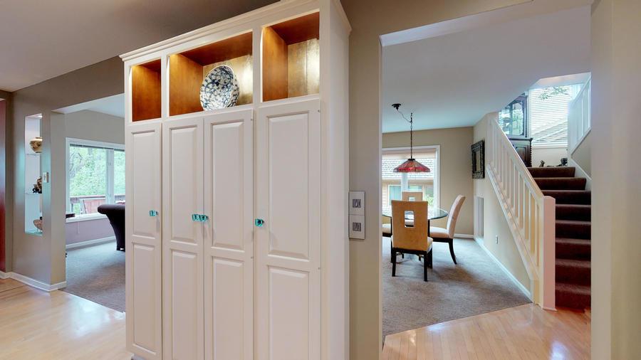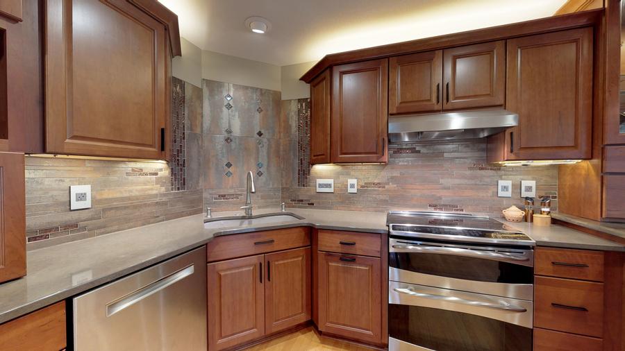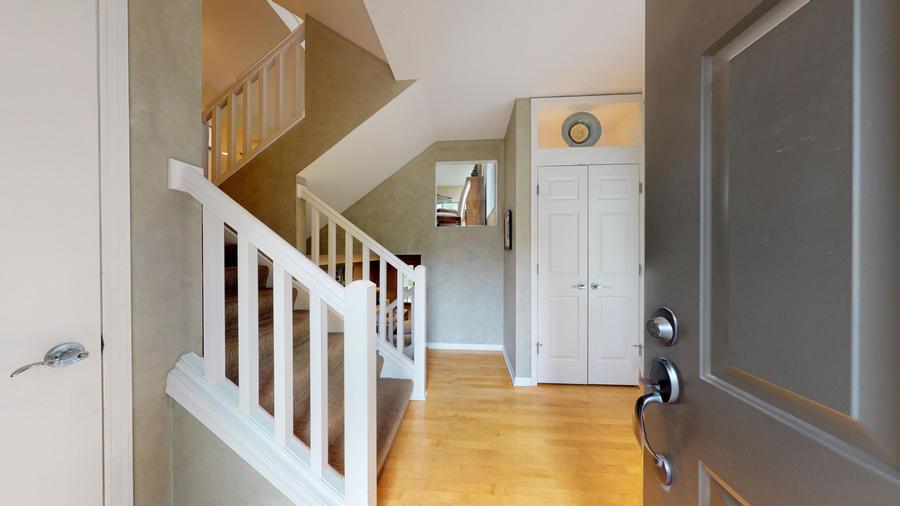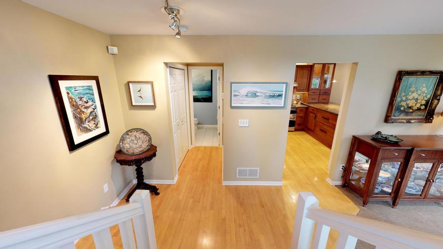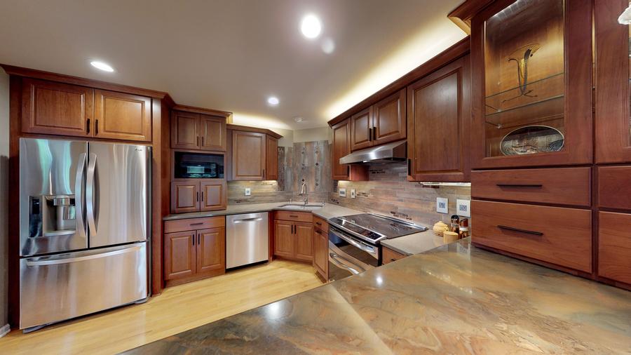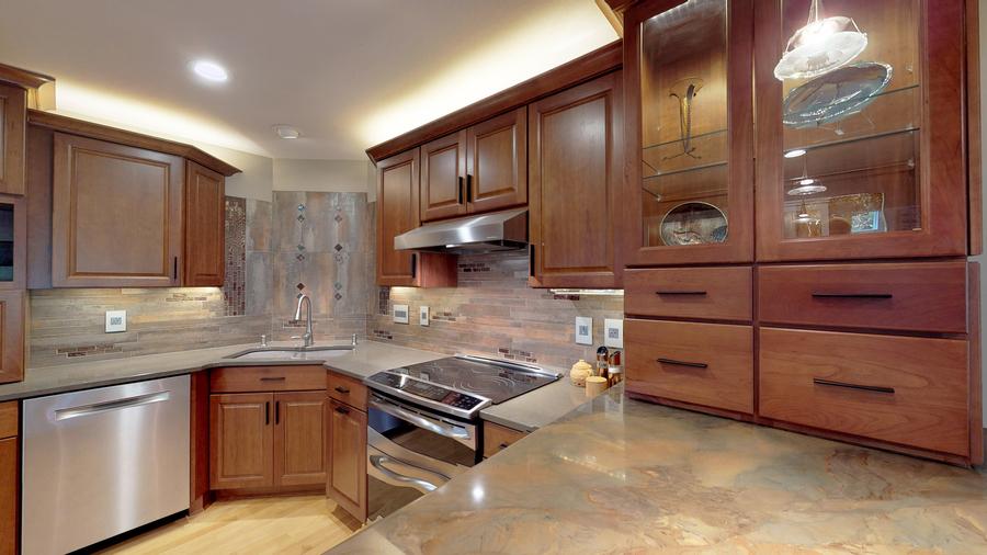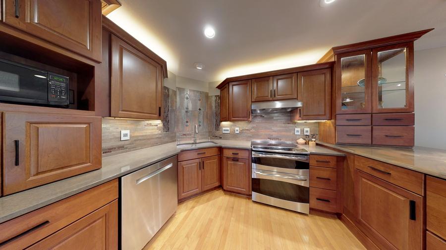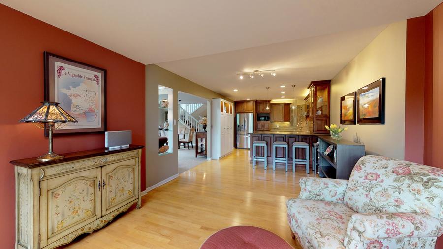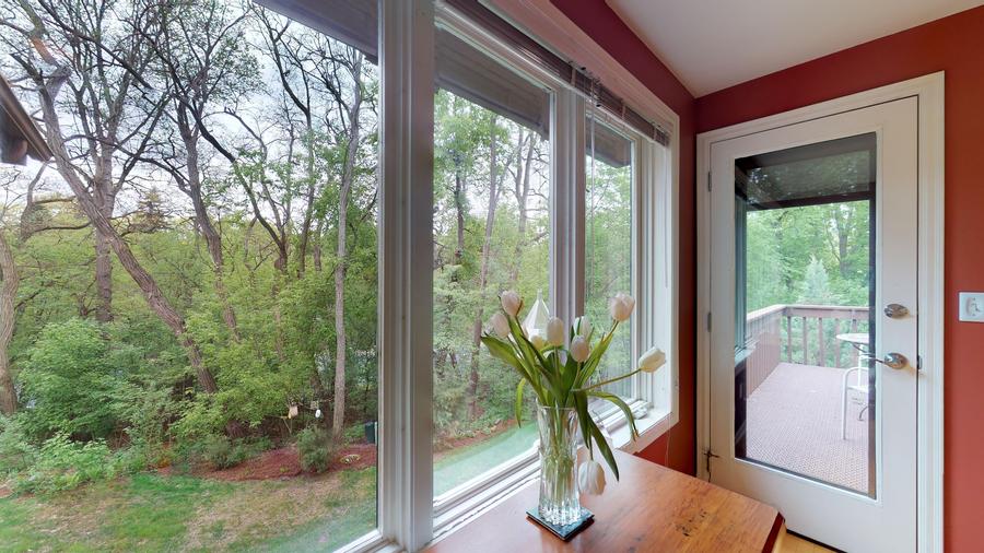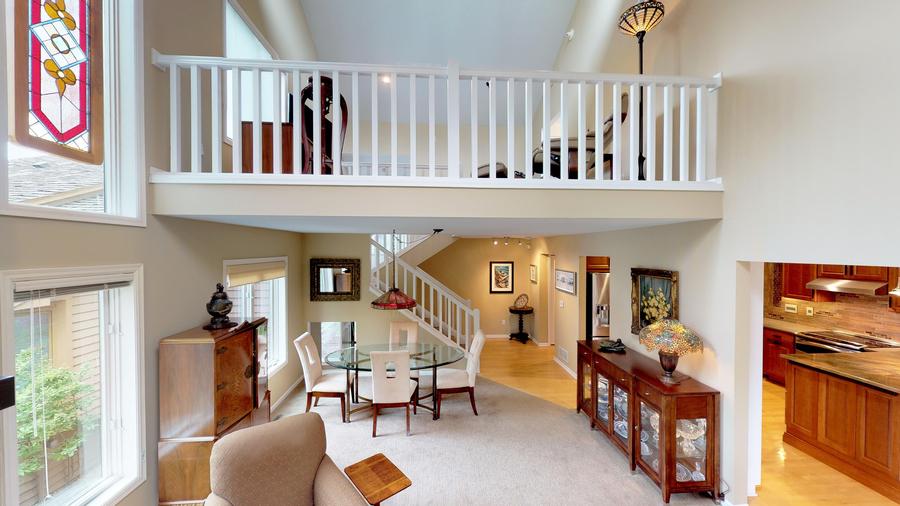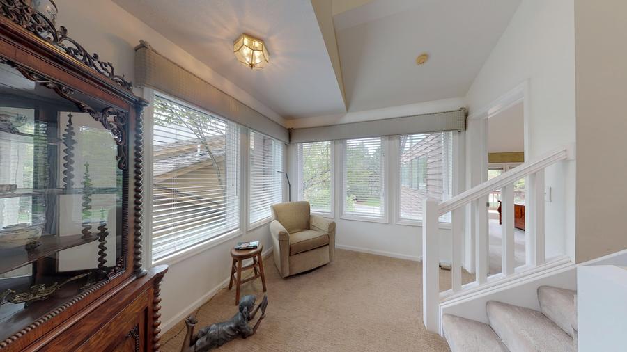 The main floor flows from the entry to a showcase kitchen w/ Cherry cabinets w/pullout drawers, Copper Dune quartzite peninsula w/Swarovski pendant light, tile and glass backsplash, LG French door fridge, double oven and 2 pantries. The expansive owners suite has a deck, skylight, walk-in closet and loft as well as a remodeled 3/4 bath with custom vanity w/honed marble counter, double sinks, pull out drawers w/ power strips, ceramic tile shower w/ extra tall inset niche and frameless glass door. Maple hardwood floors, 2 fireplaces, cedar shake roof, Leaf Guard gutters. This 16 unit community has a monthly fee of $235 & includes: lawn care & snow removal, lights & water for common areas, trash & recycle, & exterior window washing twice/year. (Roof, siding, windows, and insurance are NOT included in the fee.) Pets are ok! View the Matterport Virtual Tour
