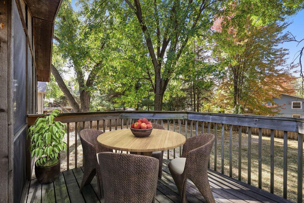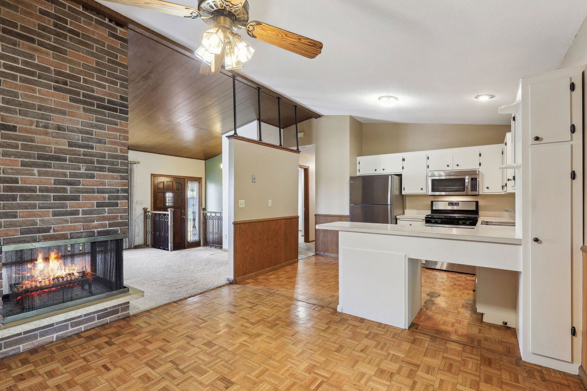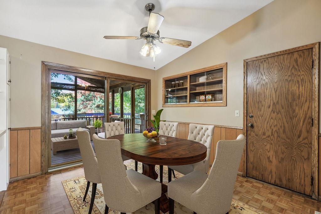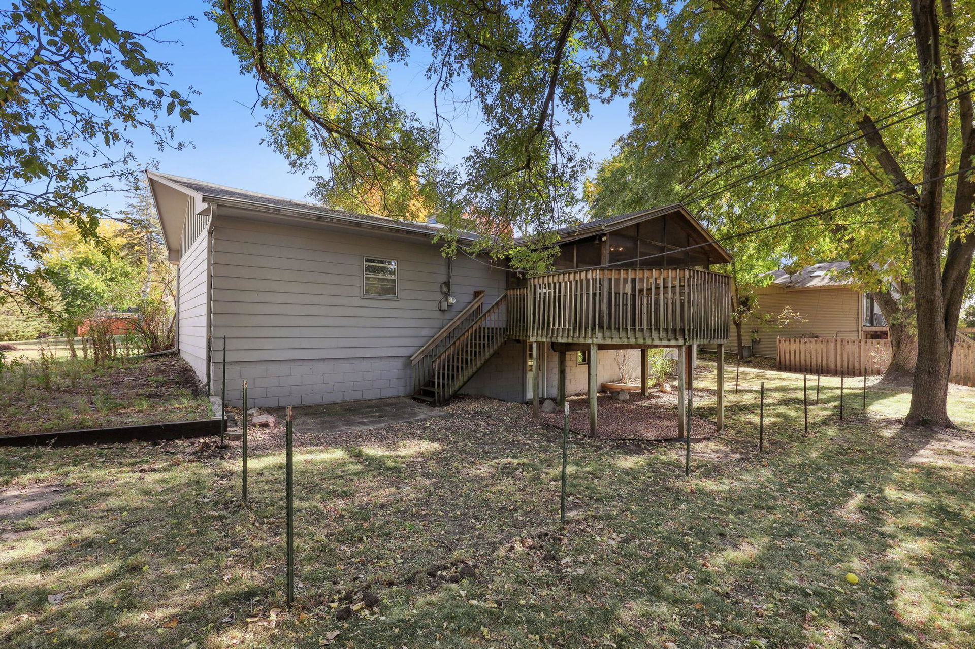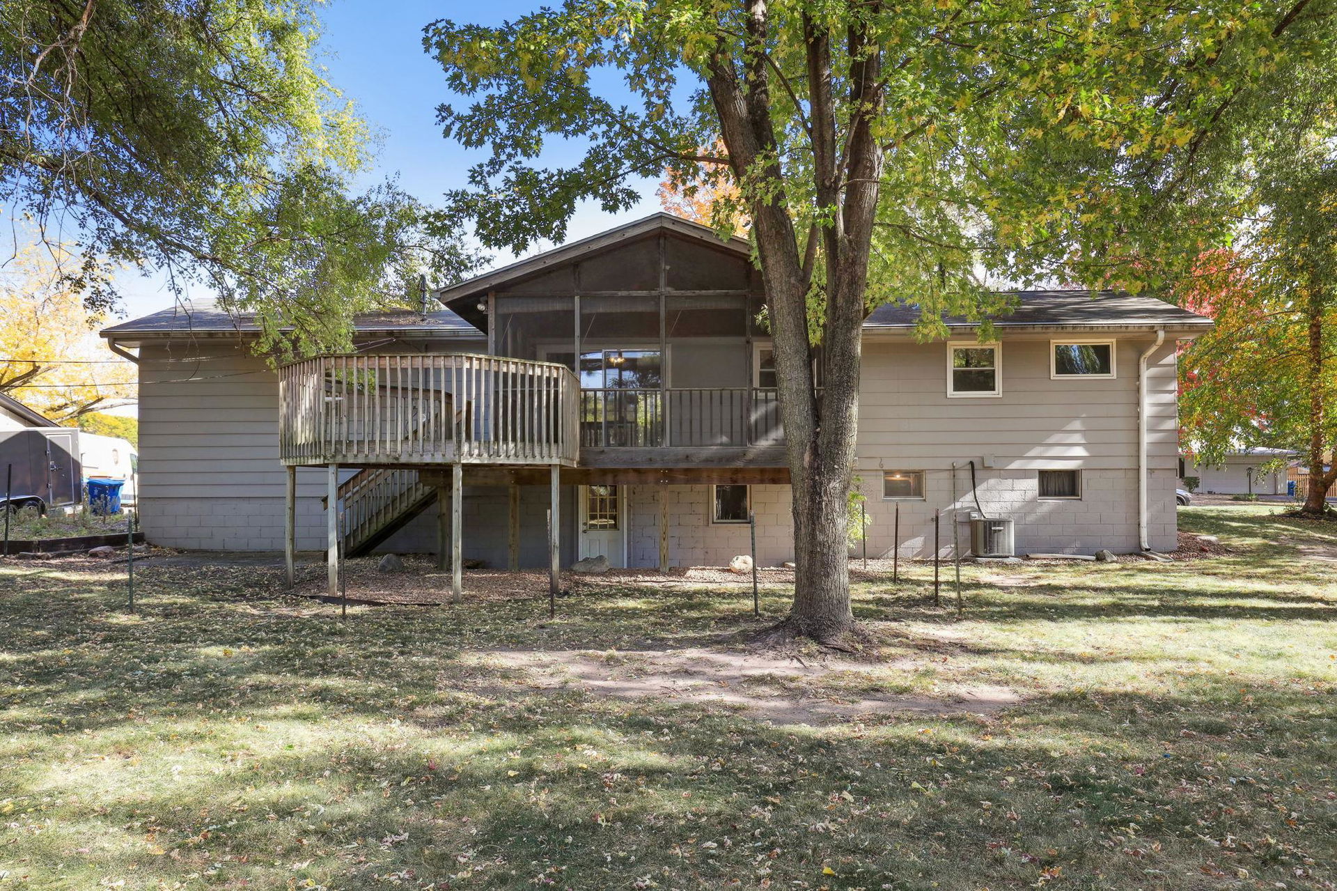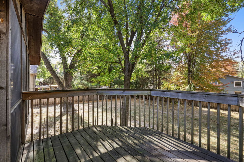 Welcome Home! Discover this one-level gem in the heart of Bloomington. As you step inside, be greeted by vaulted ceilings spanning the living room, kitchen, and informal dining area. A striking 3-sided fireplace serves as the centerpiece of the open floor plan. The kitchen seamlessly flows into the informal dining room and opens up to a delightful screened-in porch, perfect for enjoying many months of the year. This porch also connects to a spacious deck, providing ample space for outdoor entertainment. The living room boasts a beautiful bay window. The kitchen features stainless steel appliances, and the dining room offers a built-in buffet with glass doors. The property sits on a generous 0.31-acre lot. An oversized garage includes a workbench area and extra storage space above. Recent updates to the home include: New furnace and A/C (2022), new water heater, new patio door (2021), new screen door on the front, painted kitchen, rebuilt fireplace flue in the living room, newer windows throughout the home, gutters with gutter guards, rebuilt chimney, and wrought iron railing to basement. Enjoy the convenience of being close to shopping, restaurants, schools, and easy access to main highways. This home truly has it all!