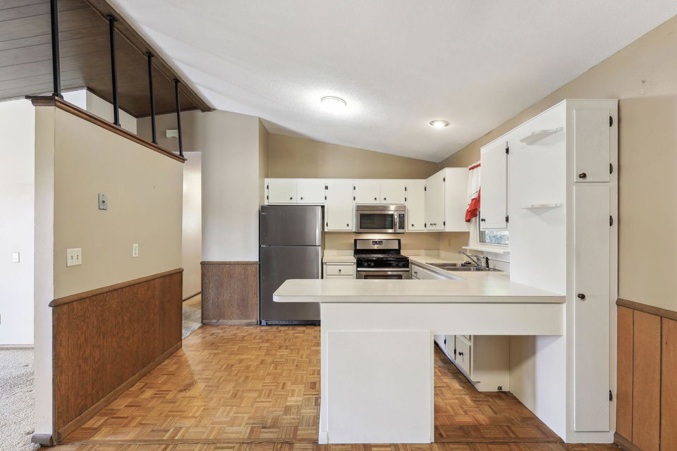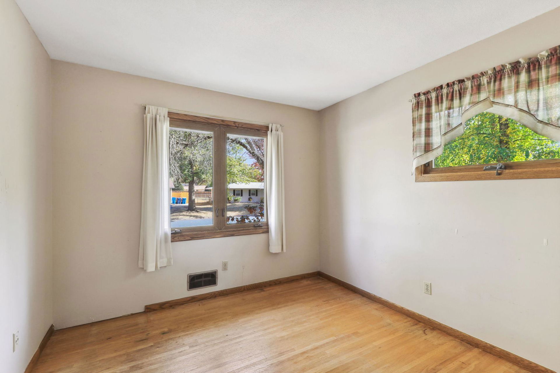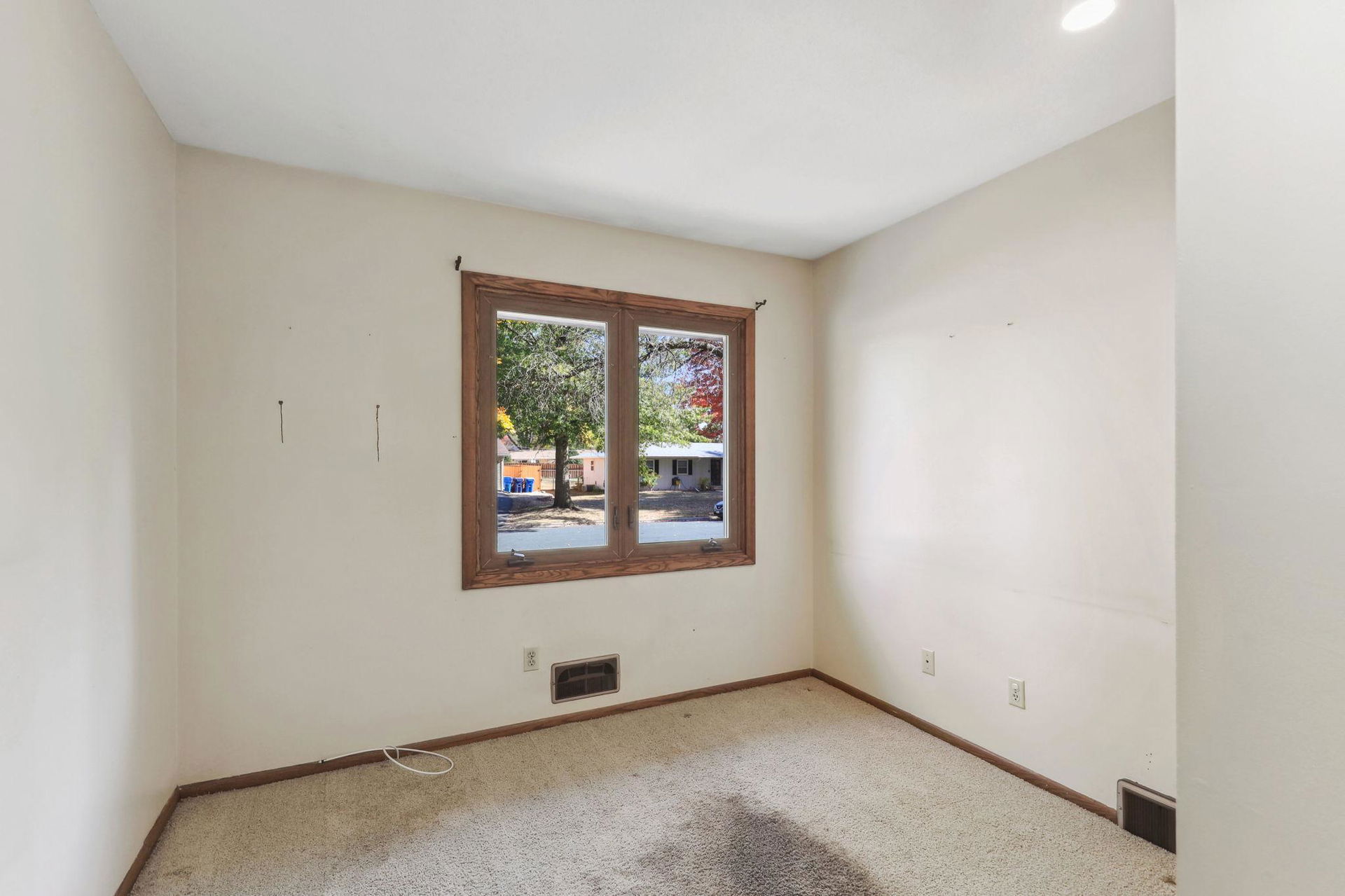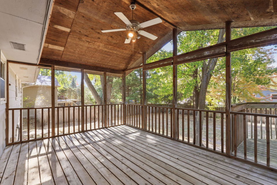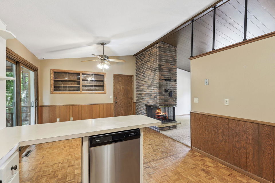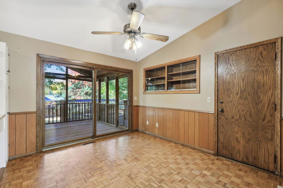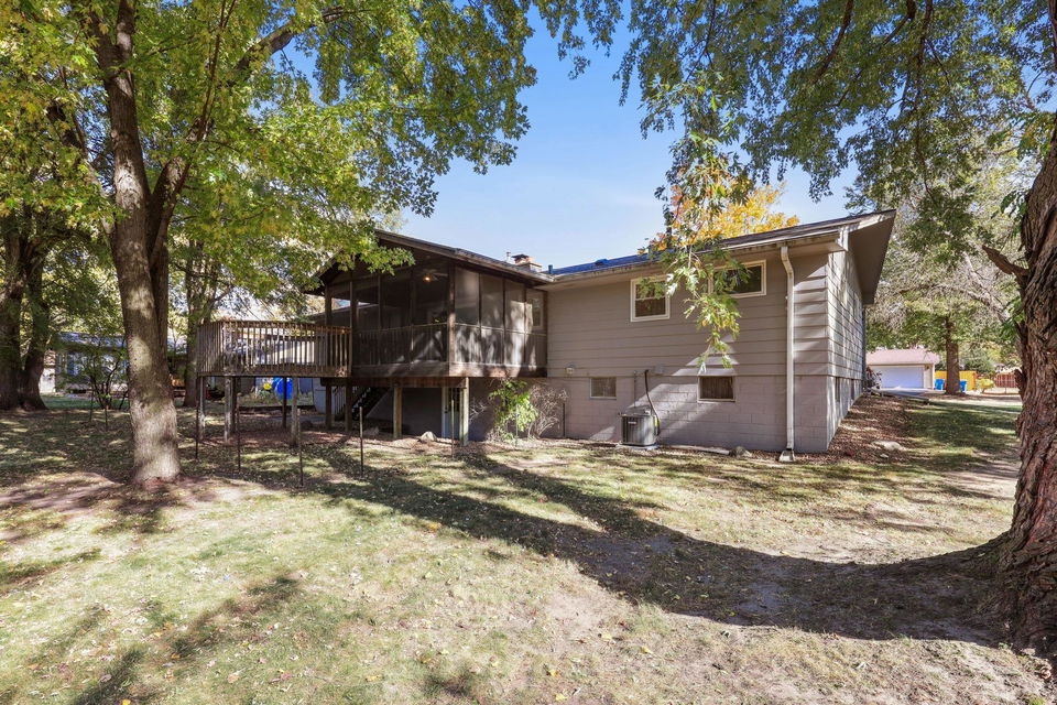 Welcome Home! Discover this one-level gem in the heart of Bloomington. As you step inside, be greeted by vaulted ceilings spanning the living room, kitchen, and informal dining area. A striking 3-sided fireplace serves as the centerpiece of the open floor plan. The kitchen seamlessly flows into the informal dining room and opens up to a delightful screened-in porch, perfect for enjoying many months of the year. This porch also connects to a spacious deck, providing ample space for outdoor entertainment. The living room boasts a beautiful bay window. The kitchen features stainless steel appliances, and the dining room offers a built-in buffet with glass doors. The property sits on a generous 0.31-acre lot. An oversized garage includes a workbench area and extra storage space above. Recent updates to the home include: New furnace and A/C (2022), new water heater, new patio door (2021), new screen door on the front, painted kitchen, rebuilt fireplace flue in the living room, newer windows throughout the home, gutters with gutter guards, rebuilt chimney, and wrought iron railing to basement. Enjoy the convenience of being close to shopping, restaurants, schools, and easy access to main highways. This home truly has it all!