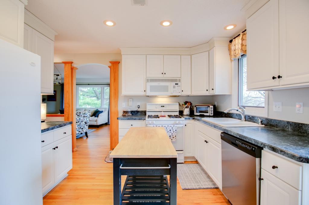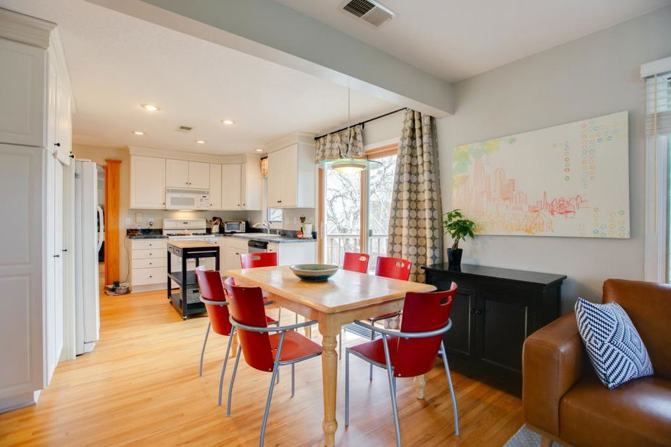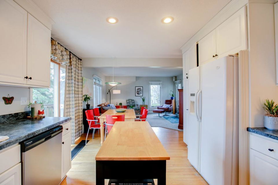 Conveniently located just 5 blocks east of Bde Maka Ska in South Uptown; walking distance to groceries, shops, restaurants, cafes, and bars; and attractively positioned to live the active lakes lifestyle! Cute, turn-of-the-century, 1906 farmhouse situated on a spacious oversized 0.21 acre lot with a huge side yard, lush greenery, nice landscaping, a fully fenced backyard, a large deck, and a 2 car detached garage with enough driveway space for 4 more cars or a great basketball court! Cozy vestibule/porch upon entering leads to sitting room with hardwood floors and tons of windows with great natural light. Updated kitchen with loads of full-sized cabinets, solid surface counters, and a tile backsplash. Convenient main level powder room. Upper level features 3 bedrooms, a full bath, and a kitchenette off one of the bedrooms that could easily be converted to an upper laundry or additional bathroom. Bonus 3rd level BR and tons of storage space in the basement. Great equity builder!
