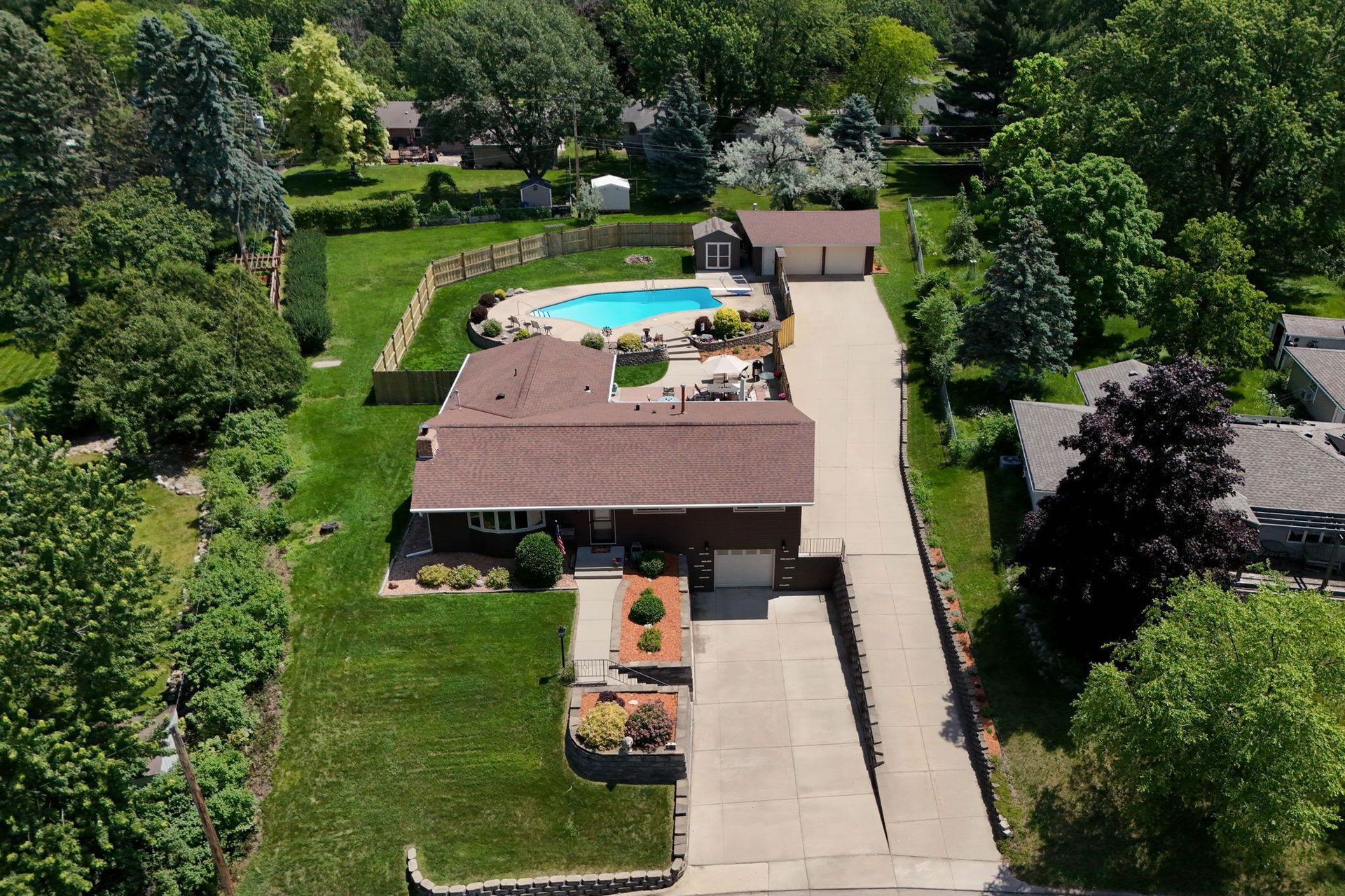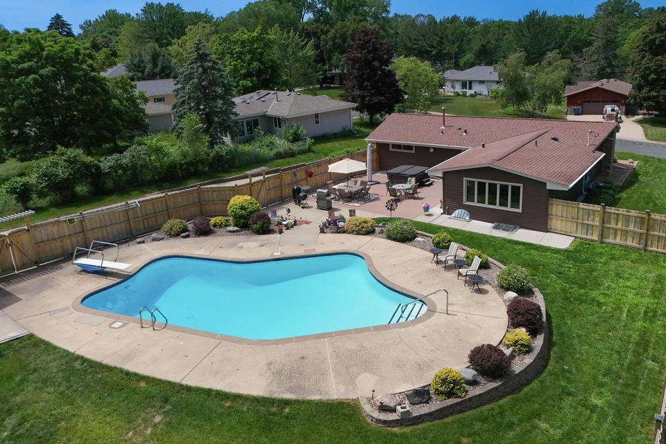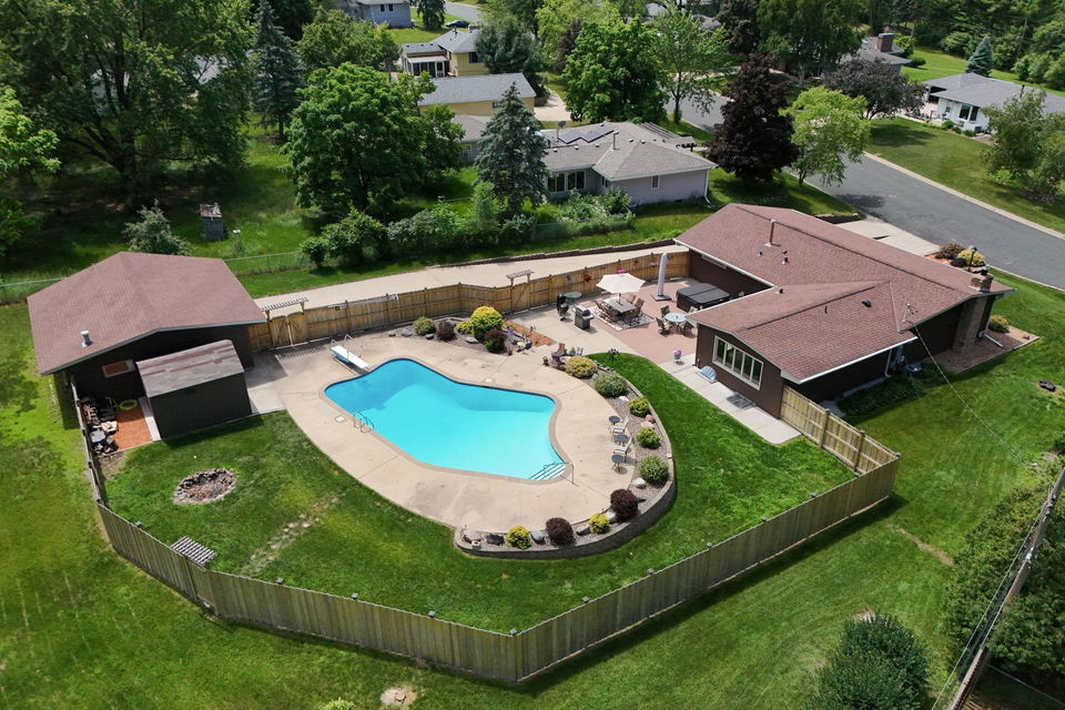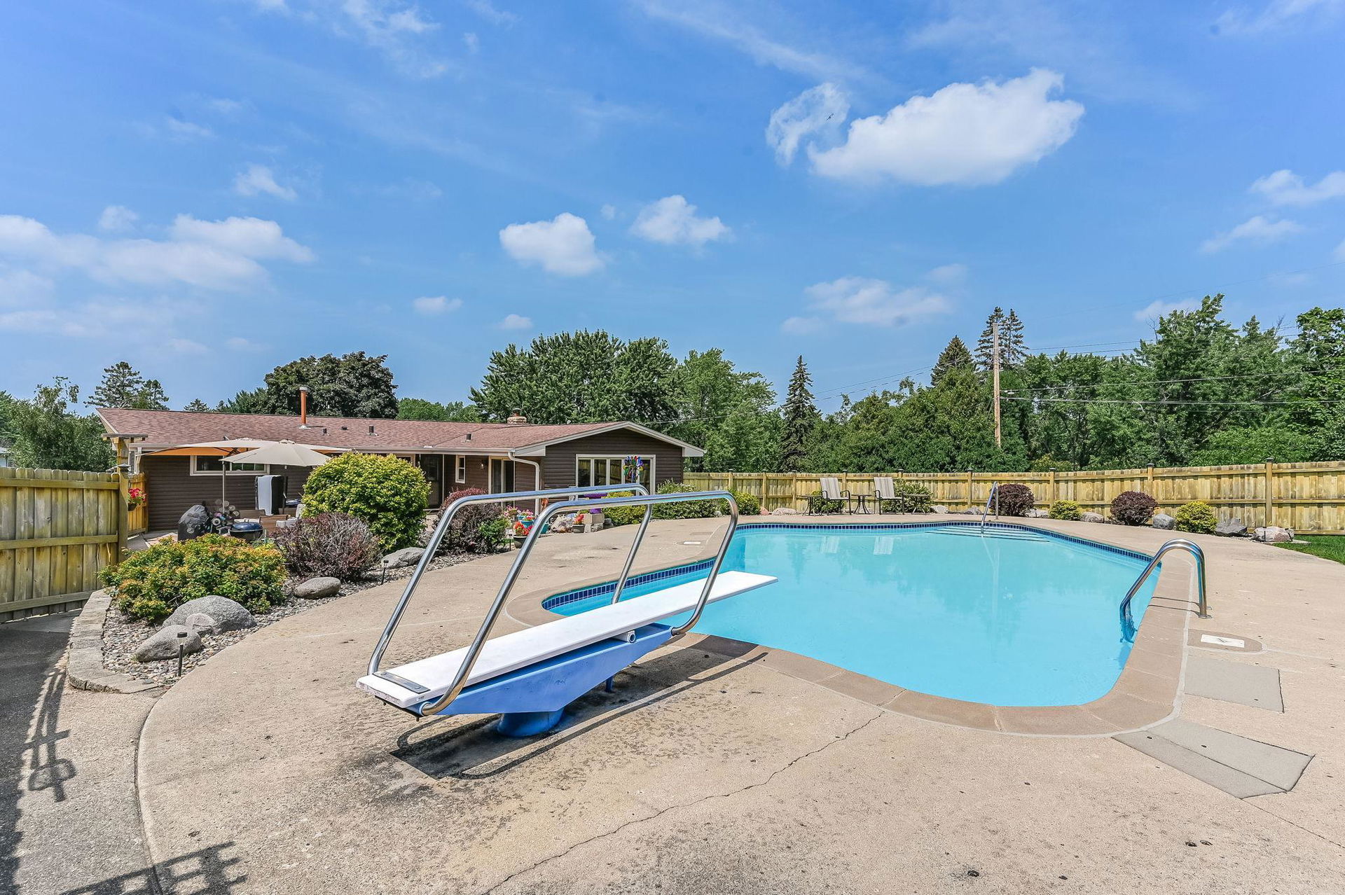 A bit of a rare find awaits you on this quiet winding road! Perched up slightly on a .55 acre log, this awesome one level offers commanding western exposure for radiant sunsets! Prime West Bloomington location near the river bluffs off France: abundant nature, trails and parks, and access to shopping and restaurants just down the road! Meticulously maintained, updated, and loved by current owners for 24 years! An extensive list of improvements is available for you. Main floor offers an open floor plan with large living room and gorgeous hardwood flooring, formal dining, 3 bedrooms, and a full bath. Additionally, a vaulted main floor family room off back loaded with windows and access to your poolside oasis. More to follow on that…Full kitchen remodel/expansion…a chef’s delight! Beautiful cabinetry, granite counters, cool breakfast bar, GE Profile stainless steel appliances, loads of storage and workspace! Awesome mudroom space off kitchen with access to yard offers coat hooks, bench, desk area, and full wall pantry/storage. Lower level walks out to one car attached tuckunder garage. Large family room with bar, a flex space, large walk-in-closet near garage, updated 3/4 tiled bath and 4th bedroom. Roomy laundry and mechanical room finishes off lower level! Perfect for our hot MN sunny days your own private pool with commercial diving board! Lounge on the pool deck or patio amongst really pretty gardens. Plus, a hot tub for star gazing all year long! Pool/hot tub are both in excellent condition! 2 car detached garage and shed! Reat space for toys/hobbies! 6’ full wood privacy fencing with gated access to huge yard spaces beyond pool area. Expansive concrete driveways and retaining walls are in impeccable condition. Come by for a visit and see yourself living the dream on Goodrich Road!
