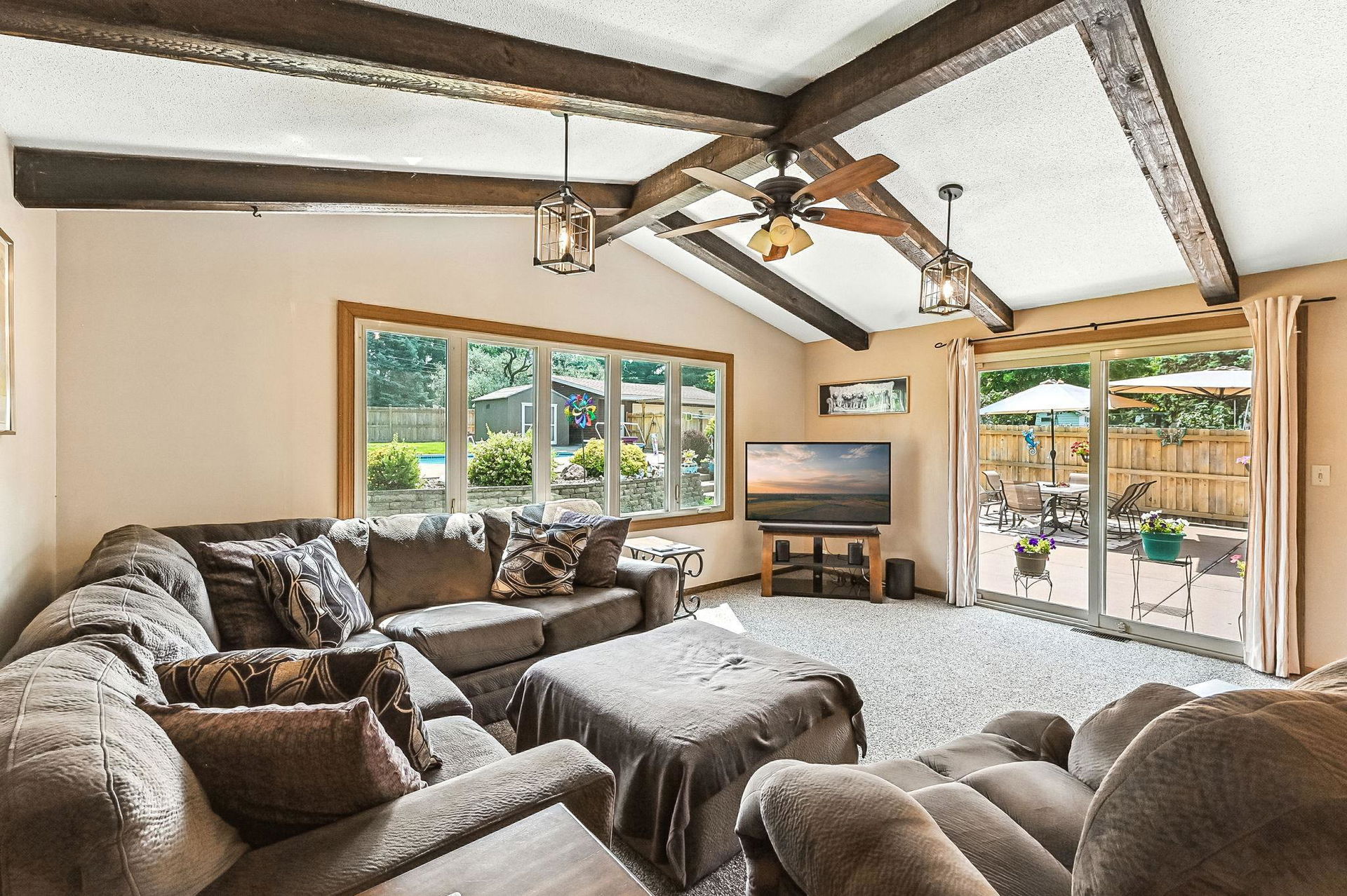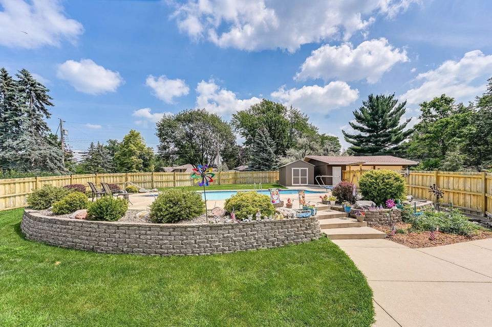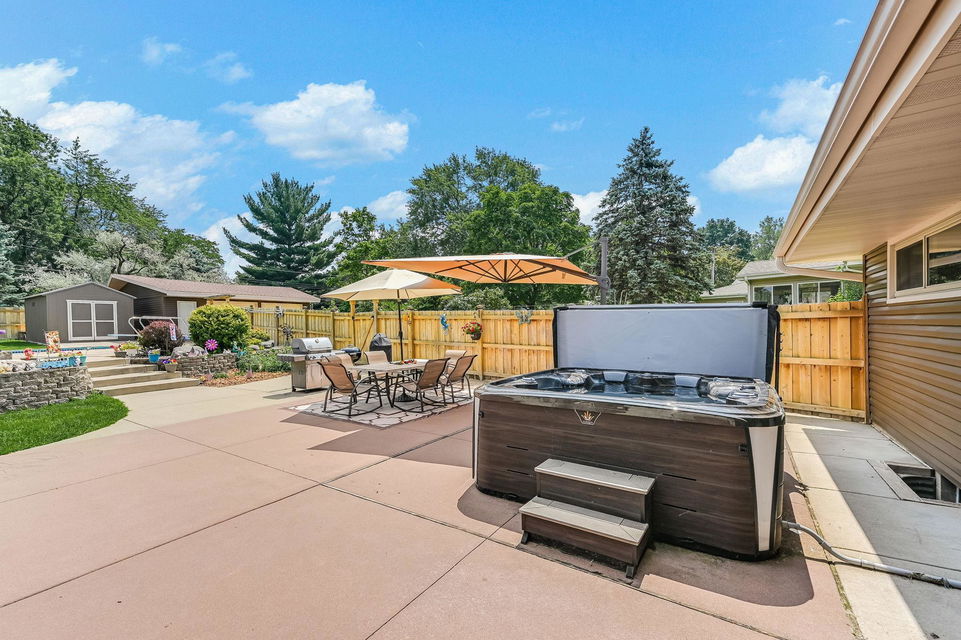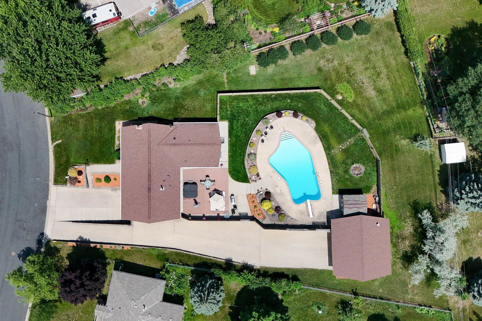 A bit of a rare find awaits you on this quiet winding road! Perched up slightly on a .55 acre log, this awesome one level offers commanding western exposure for radiant sunsets! Prime West Bloomington location near the river bluffs off France: abundant nature, trails and parks, and access to shopping and restaurants just down the road! Meticulously maintained, updated, and loved by current owners for 24 years! An extensive list of improvements is available for you. Main floor offers an open floor plan with large living room and gorgeous hardwood flooring, formal dining, 3 bedrooms, and a full bath. Additionally, a vaulted main floor family room off back loaded with windows and access to your poolside oasis. More to follow on that…Full kitchen remodel/expansion…a chef’s delight! Beautiful cabinetry, granite counters, cool breakfast bar, GE Profile stainless steel appliances, loads of storage and workspace! Awesome mudroom space off kitchen with access to yard offers coat hooks, bench, desk area, and full wall pantry/storage. Lower level walks out to one car attached tuckunder garage. Large family room with bar, a flex space, large walk-in-closet near garage, updated 3/4 tiled bath and 4th bedroom. Roomy laundry and mechanical room finishes off lower level! Perfect for our hot MN sunny days your own private pool with commercial diving board! Lounge on the pool deck or patio amongst really pretty gardens. Plus, a hot tub for star gazing all year long! Pool/hot tub are both in excellent condition! 2 car detached garage and shed! Reat space for toys/hobbies! 6’ full wood privacy fencing with gated access to huge yard spaces beyond pool area. Expansive concrete driveways and retaining walls are in impeccable condition. Come by for a visit and see yourself living the dream on Goodrich Road!