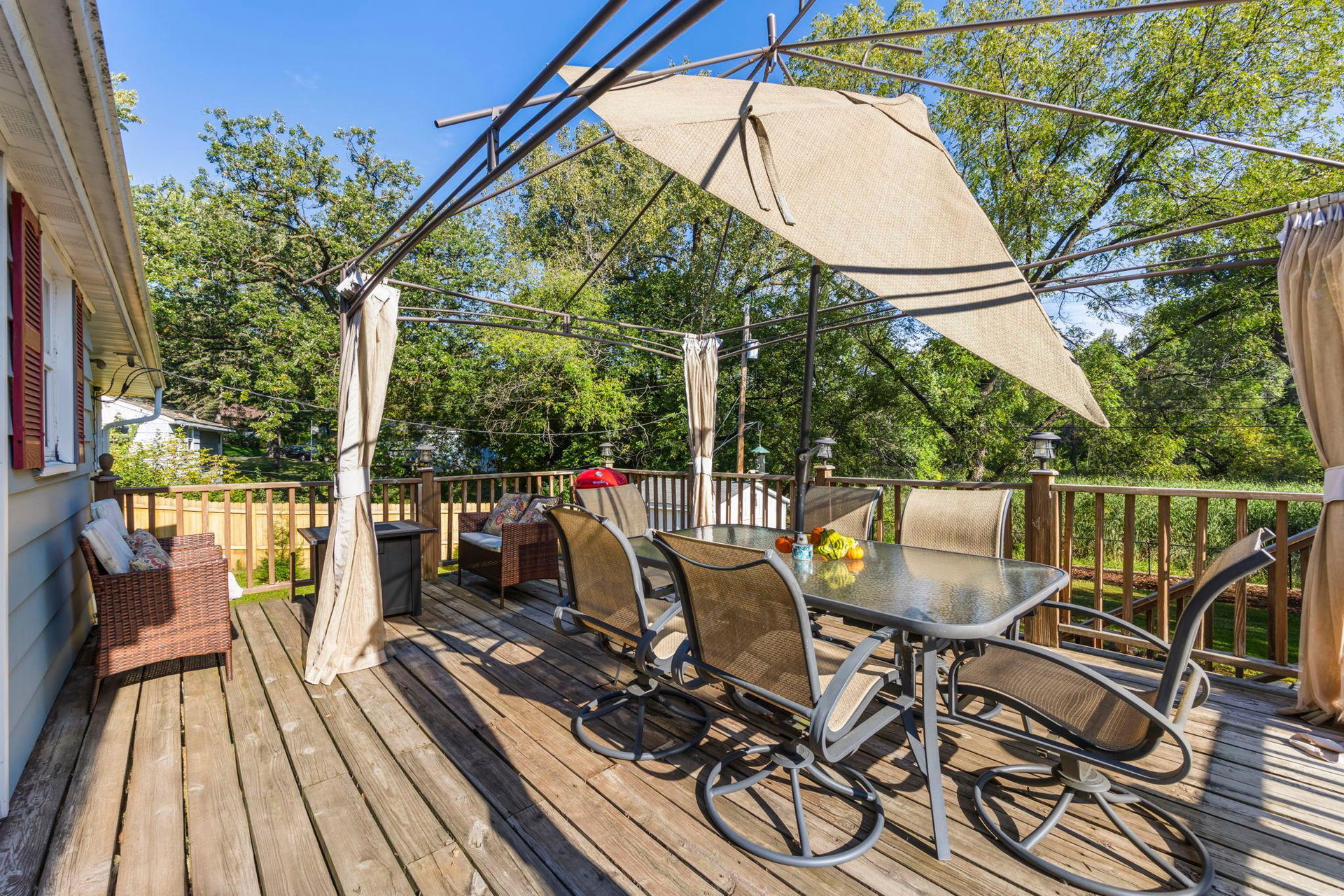 Escape to your own Northwoods retreat! This beautifully maintained rambler sits on a quiet street and backs up to serene marshland, anchored by a majestic black walnut tree on a spacious 0.34-acre lot. The backyard is a true oasis—perfect for entertaining or unwinding—with a deck, patio, firepit, garden, shed, and plenty of room to roam. Inside, enjoy three bedrooms on one level, stunning nature views from the kitchen and dining room, and a cozy lower-level family room with a fireplace. Recent updates include a new roof (2018), furnace and A/C (2022), and water heater and softener (2024). Additional highlights: cedar privacy fencing, split rail and chain-link fencing, permanent garage storage, and a built-in workbench. Ideally located near Shady Oak Lake, parks, trails, and with easy access to Hwy 169, 494, and Hwy 7—this home offers the perfect blend of tranquility and convenience.