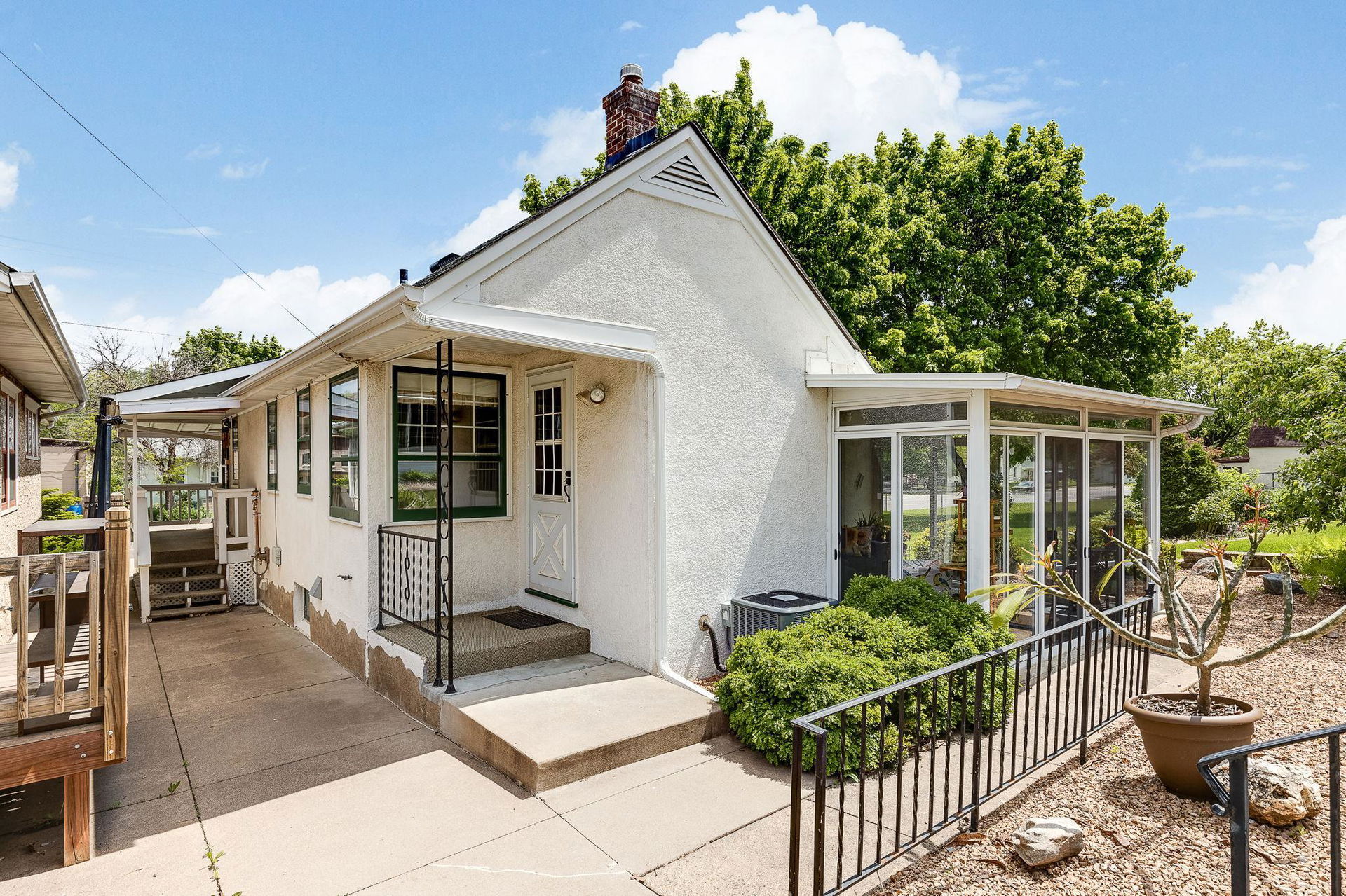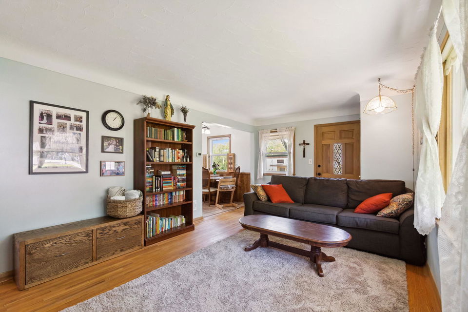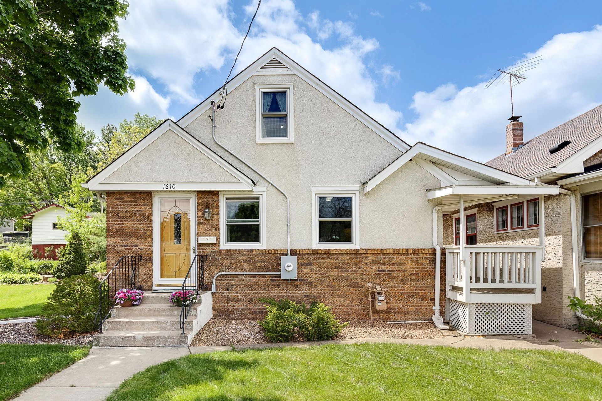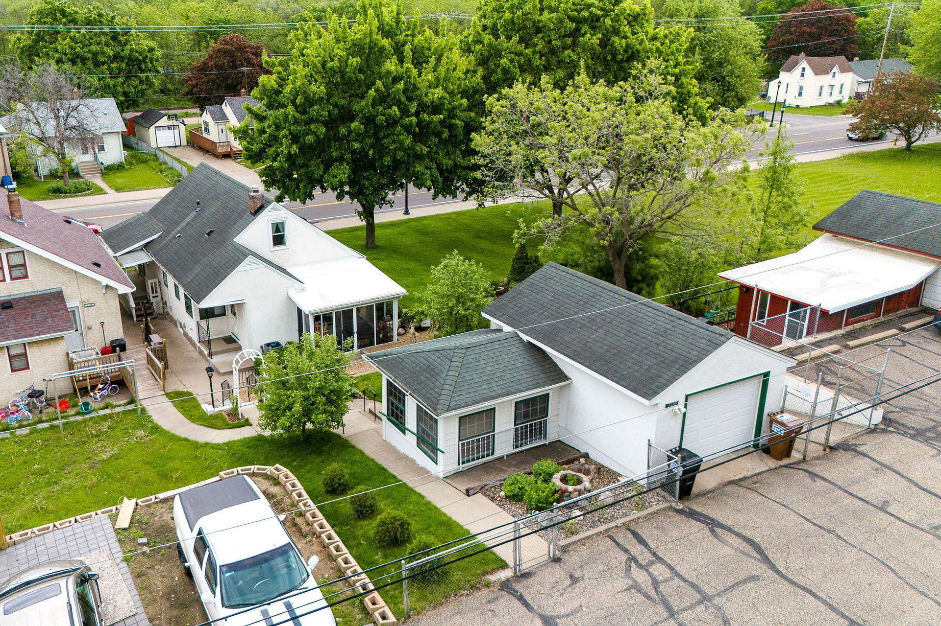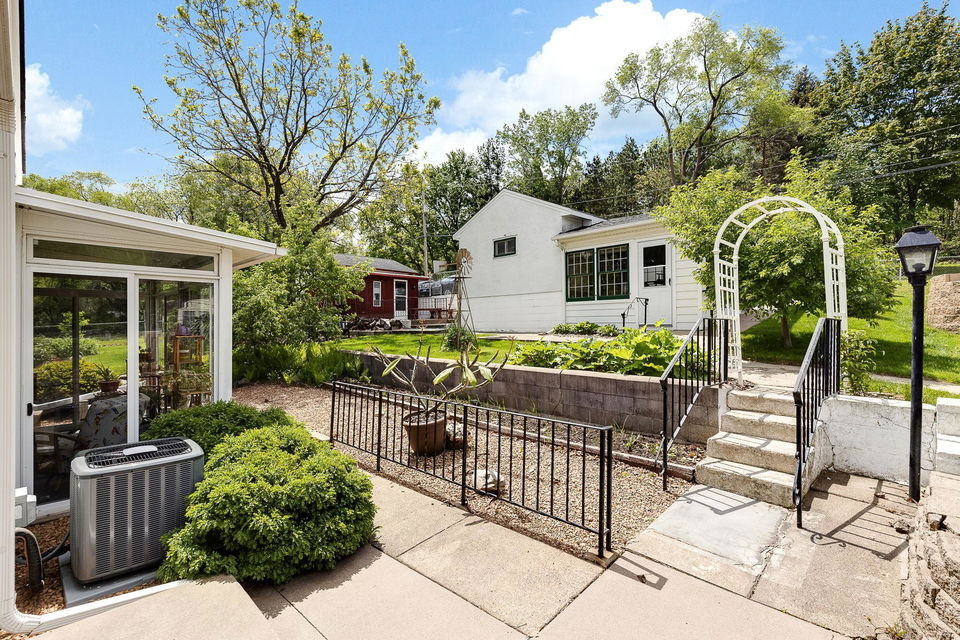 Apple trees, cherry trees, blueberries, and raspberries all set on a .29 acre charming lot with firepit area and gardens! A quaint 1954 2 bedroom, 2 bathroom 1.5 story awaits! Such a warm and inviting vibe here at 1610! Main floor den and sunroom and bedroom with full bath. Upper level loft and bedroom with insulated eaves and full length storage. Central air! Lower level almost 100% finished offers large family room with built-ins, flex nook, laundry, and ½ bath! 2 detached garages and 3 additional parking spots. Large shed attached to one garage and workshop attached to 2nd garage. South Saint Paul is an attractive, historic, and inviting community! Come join!