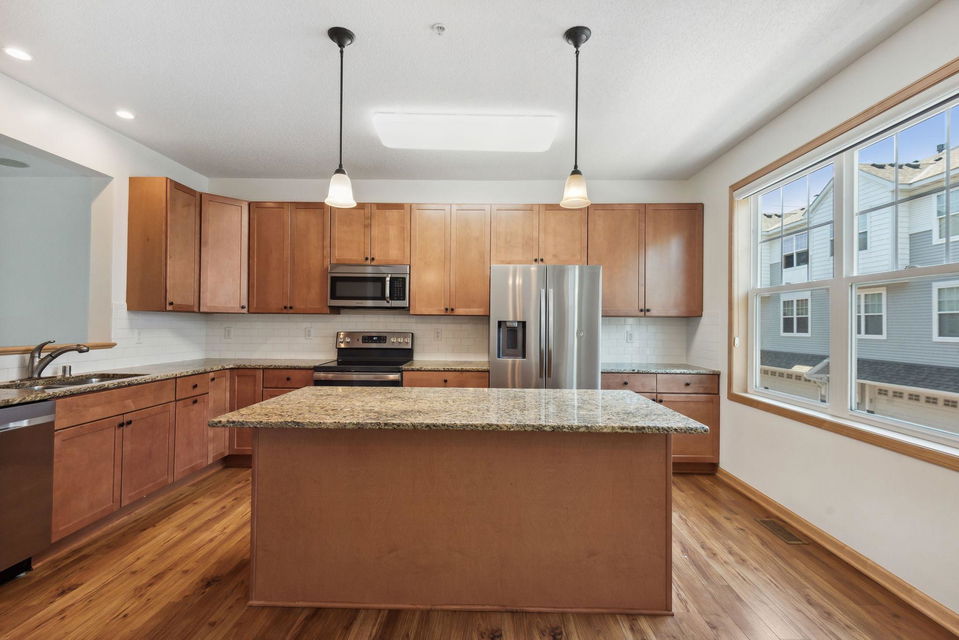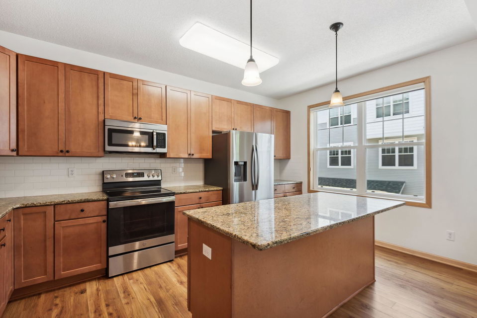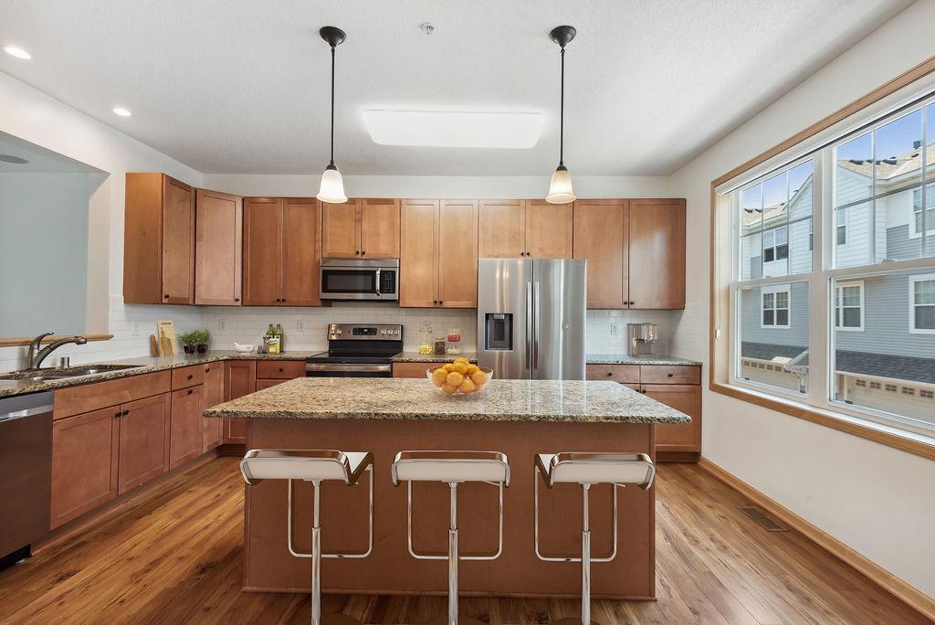 Turn-key and welcoming 3 bedroom, 3 bath, and lower level family room set on lovely heavily treed Village Trail in Maplewood! 9’ ceilings on main and open floorplan. Amazing kitchen with granite counters, large center island, and tiled backsplash – open to living and dining areas plus a private deck. Beautiful, engineered hardwood floors and ½ bath on main. 3 bedrooms on upper level plus convenient laundry room and fully tiled hall bathroom. 3rd bedroom is owner’s suite with large walk in closet and private bath with double vanity. Finished lower level is a versatile space – family room/bedroom/office/workout options. Tuck under 2 car attached garage. Great location!