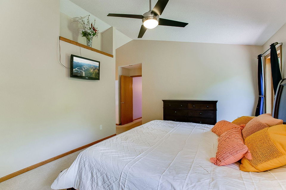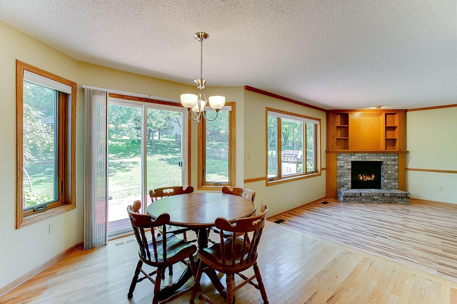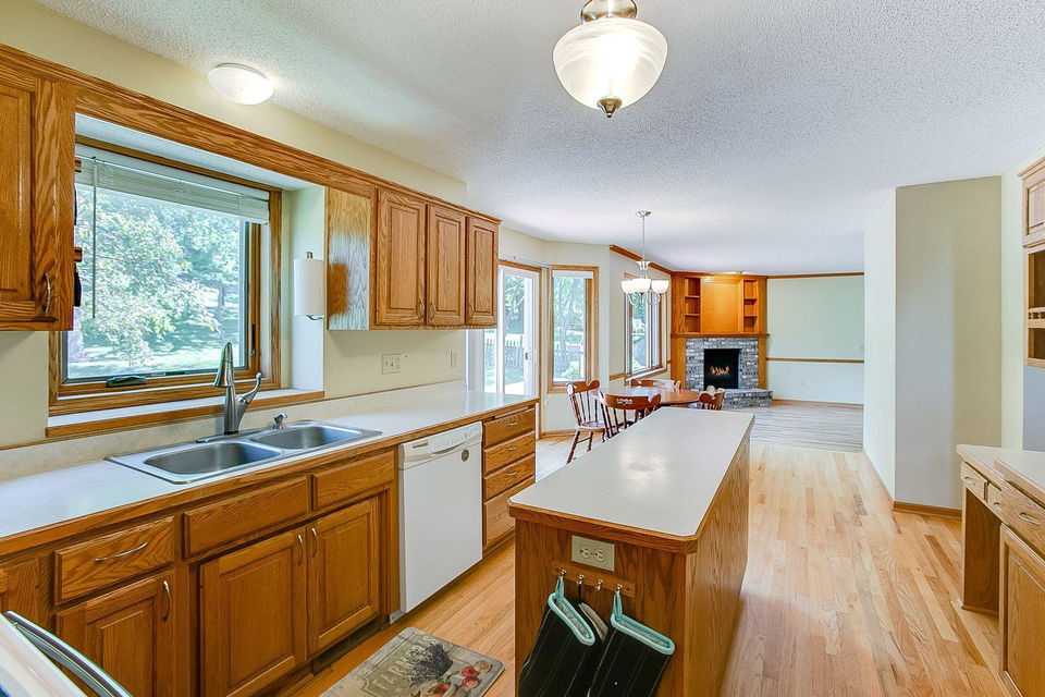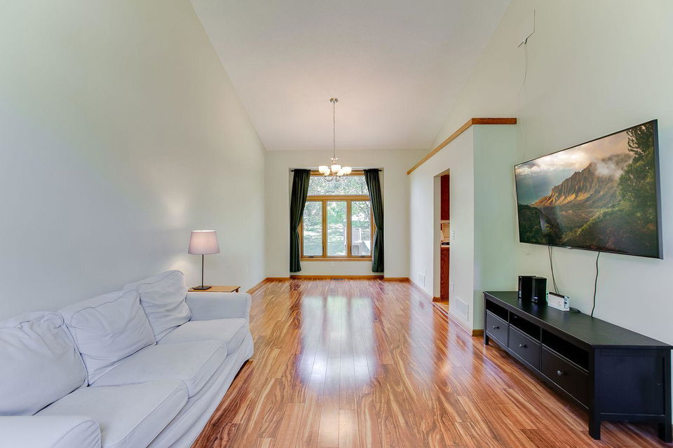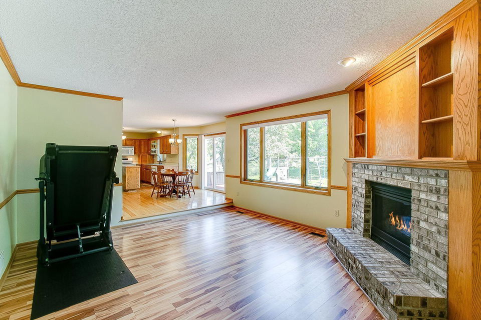 Gorgeous two-story home on a quiet street! Only re-location makes this home available! Enjoy time in your kitchen looking out at the beautiful backyard. Kitchen has a nice amount of counter space with a center island and opens to informal dining and family room with a gas fireplace. The 3 season porch features knotty pine paneling and natural light. Vaulted ceilings in the living room/dining room are spacious and ideal for entertaining. Upper level features 3 bedrooms with master suite having vaulted ceilings and WIC. Mud room, laundry on main and huge foyer with nice closet. Lower level