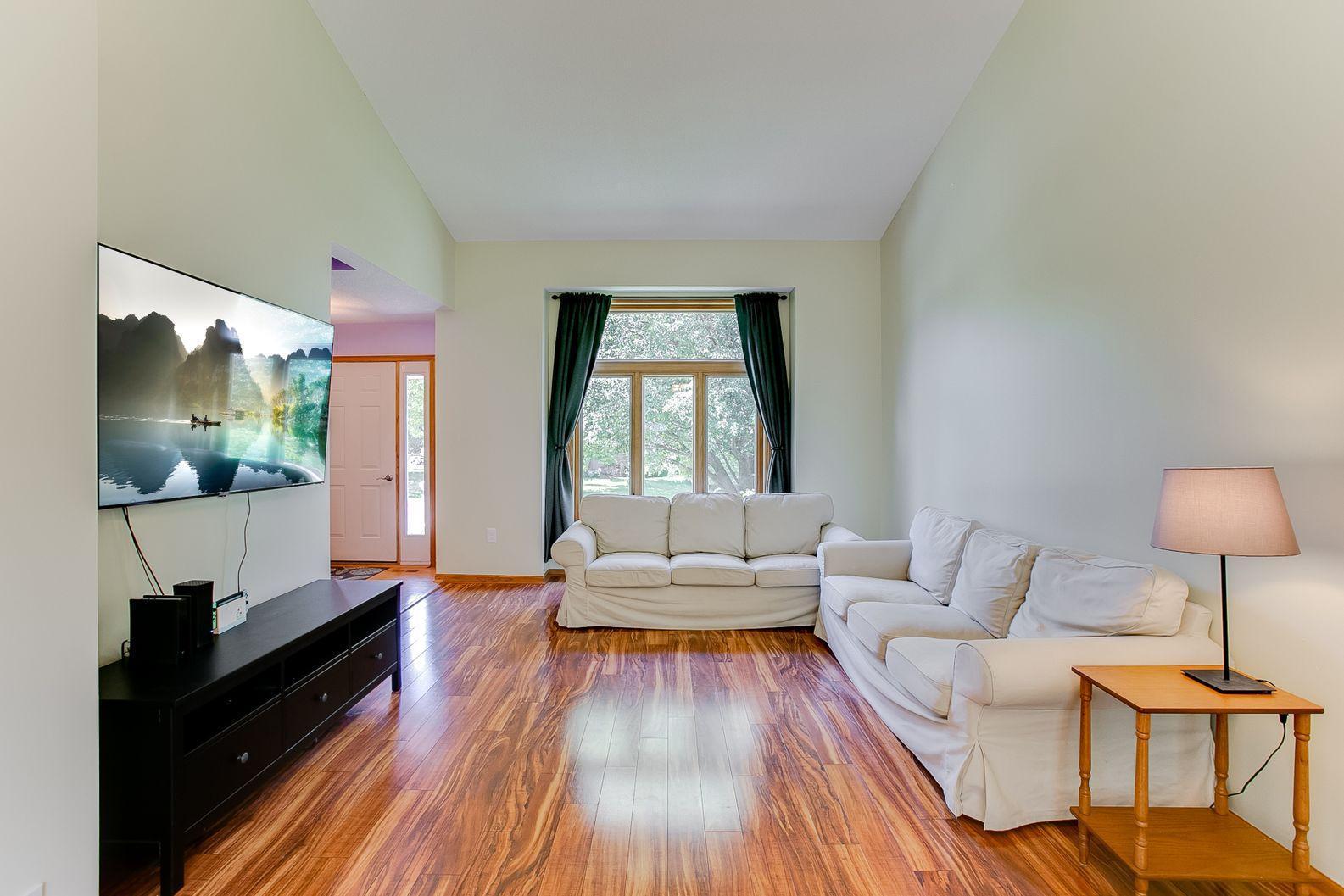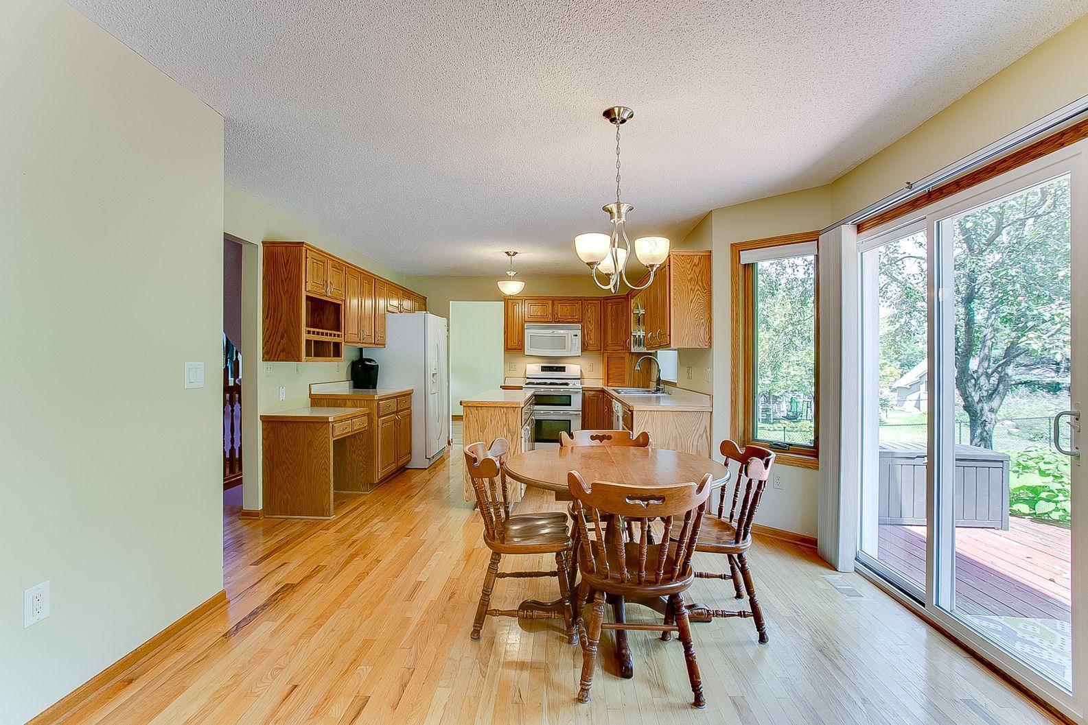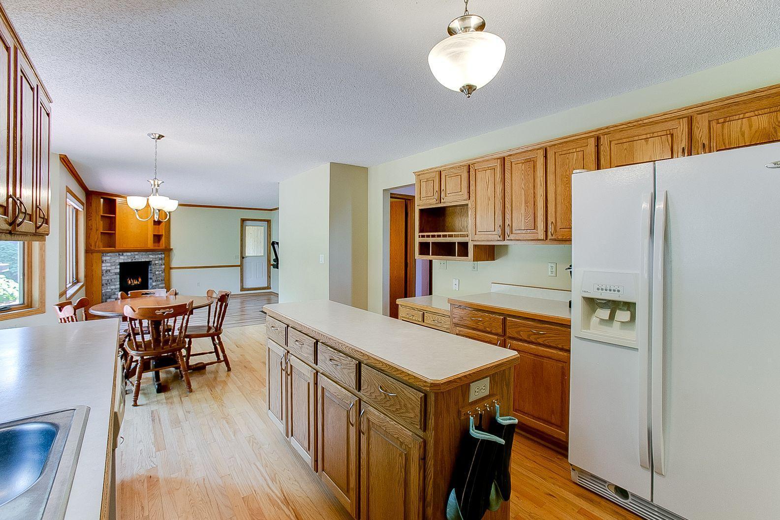 Gorgeous two-story home on a quiet street! Only re-location makes this home available! Enjoy time in your kitchen looking out at the beautiful backyard. Kitchen has a nice amount of counter space with a center island and opens to informal dining and family room with a gas fireplace. The 3 season porch features knotty pine paneling and natural light. Vaulted ceilings in the living room/dining room are spacious and ideal for entertaining. Upper level features 3 bedrooms with master suite having vaulted ceilings and WIC. Mud room, laundry on main and huge foyer with nice closet. Lower level