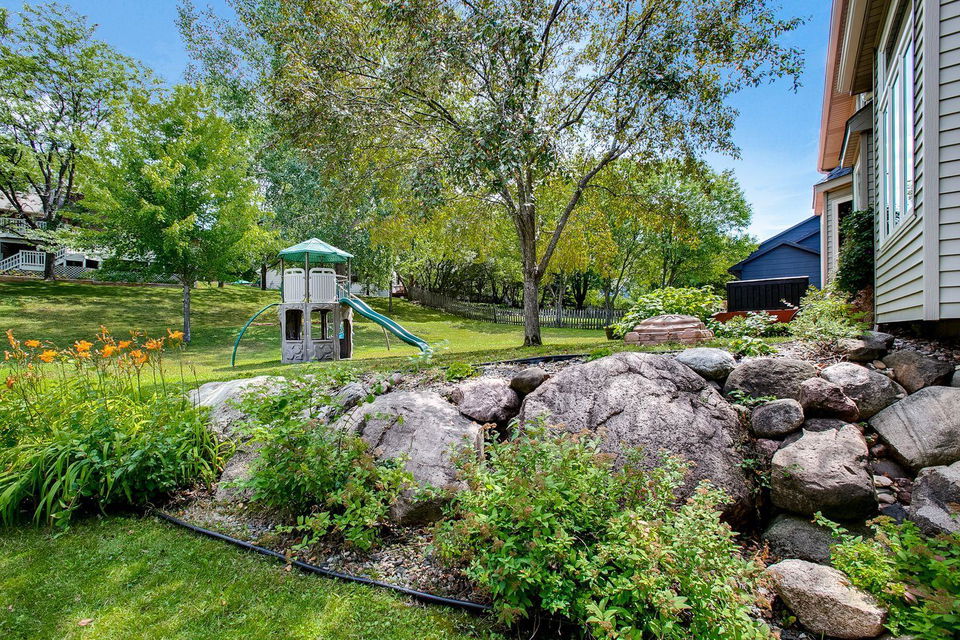 recreation/family room has great space. Anderson Renewal windows-2019, roof and gutters-2021, water heater and softener-2018, painted exterior-2022, three stage furnace with 98% efficiency and heat pump-2020, window coverings all replaced-2019, smart thermostat-2020 and so much more! Freezer and new play system included in the sale. Sprinkler system, 3 car garage and front porch! A Must See!