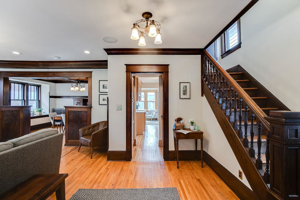 Truly charming Grand Avenue Craftsman 2 story offers the original architectural appointments of 1916 yet thoughtfully updated! Stunning woodwork, hardwood flooring, and boxed beam ceiling in dining! Front 3 season porch and rear main floor family room and mud room overlooking huge fenced yard! $109k kitchen renovation is FABULOUS! Upper level offers 3 bedrooms, renovated full bathroom, and exquisite private owner’s bathroom! Today’s lifestyles at home demand new versatile spaces. Above 3 car garage is a 21×31 bonus room awaiting your finishing touches!