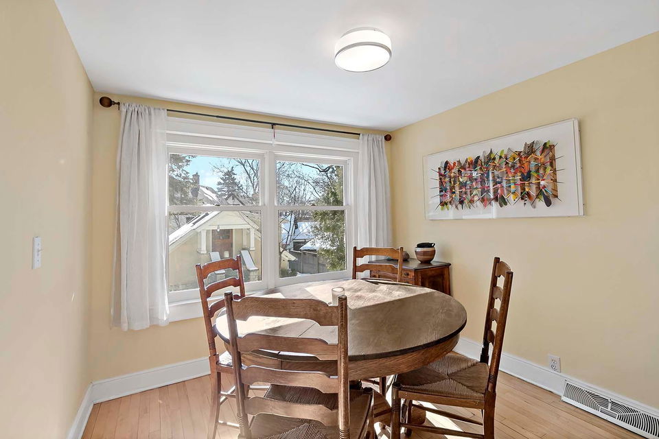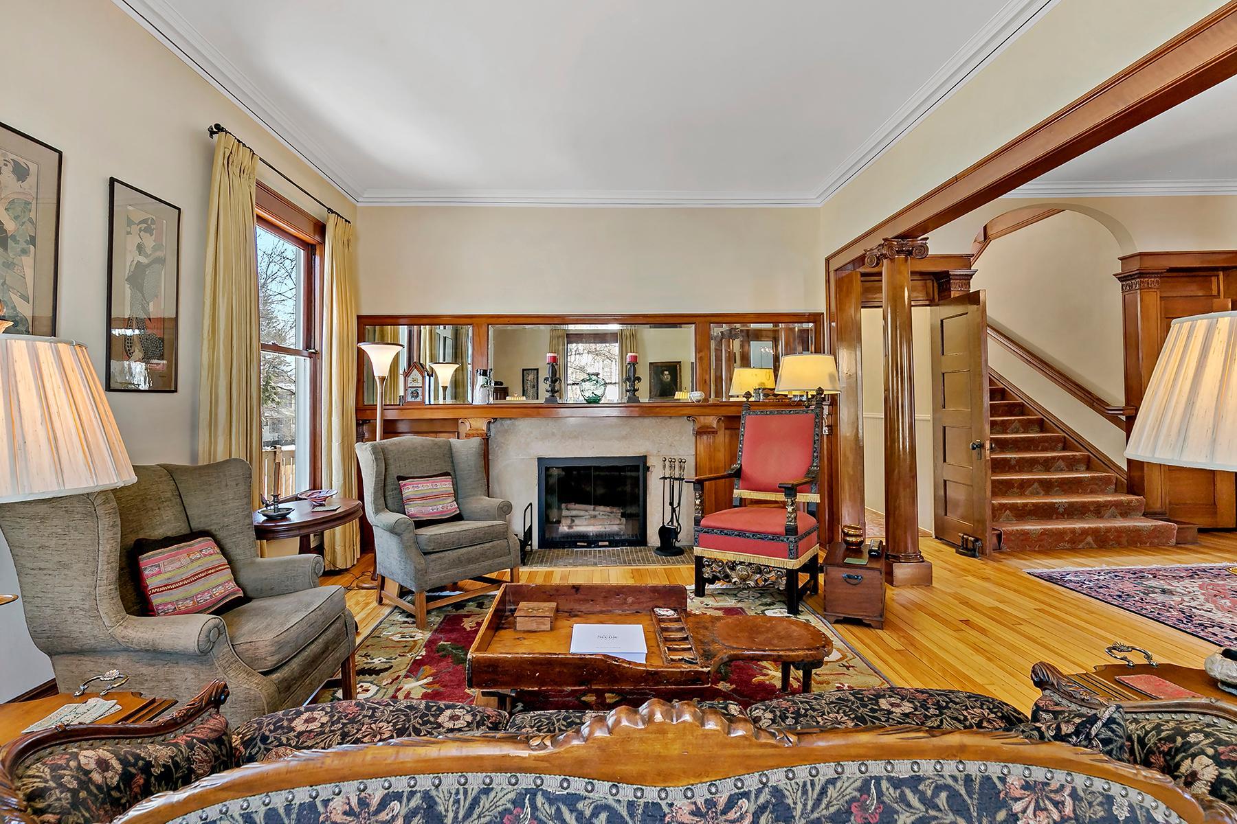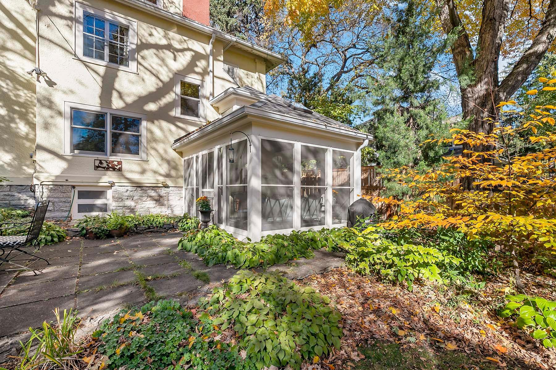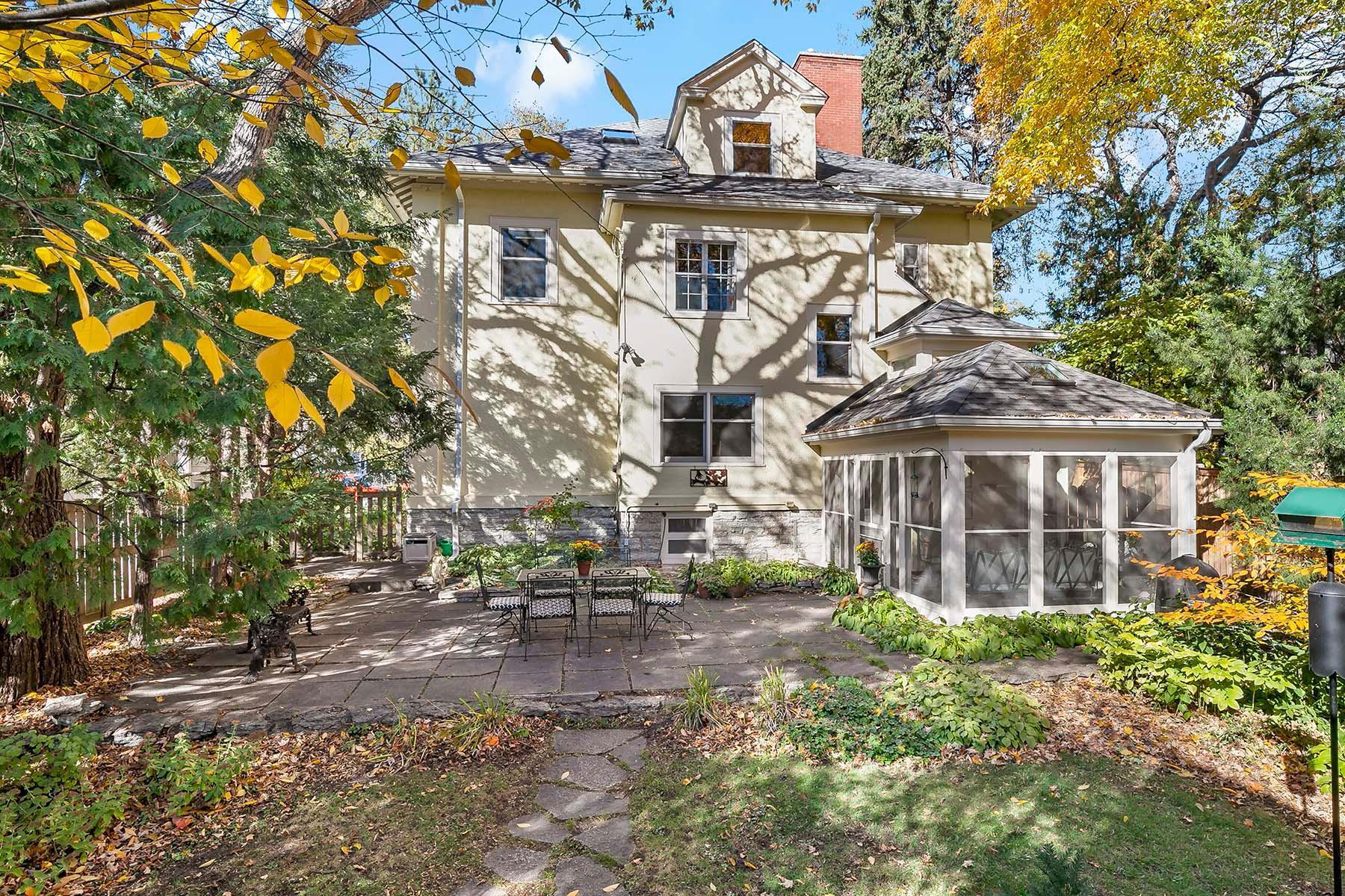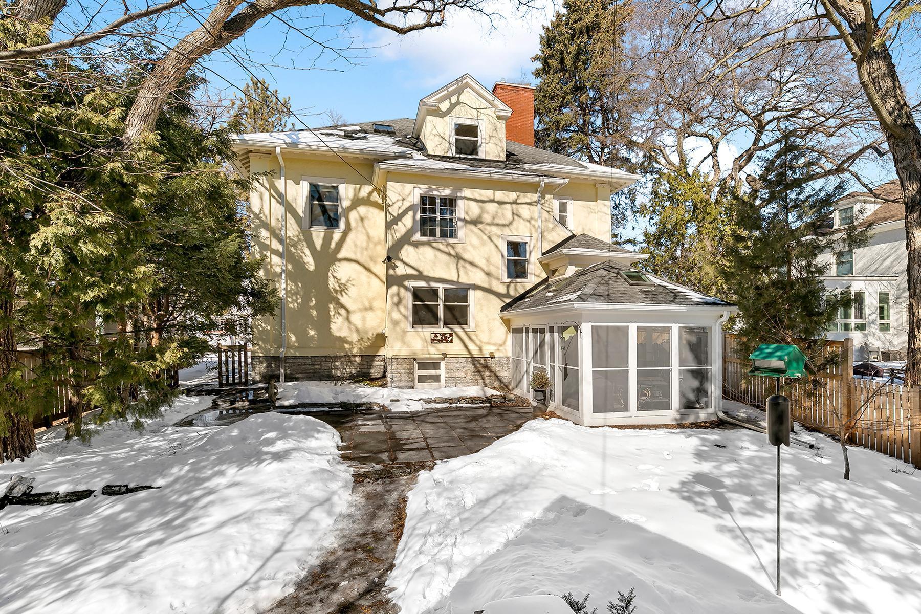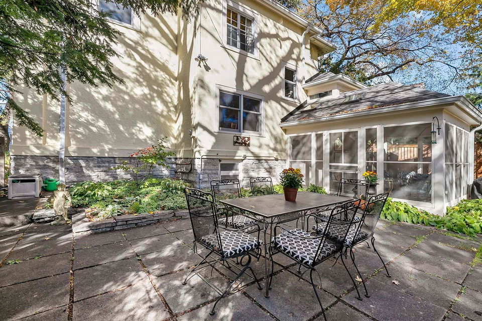 Beautifully maintained, classic Kenwood home, featuring stunning natural woodwork, hardwood floors, and gracious living spaces. The main floor includes tall ceilings, formal and informal gathering spaces, and rooms filled with natural light. Four bedrooms on the second floor including primary bedroom with private 3/4 bath. Stunning staircase leading to the finished third floor with additional bedroom and office/studio. Basement includes a family room and ample storage. Enjoy the outdoor back patio and screened porch. Two car garage with vaulted, skylit workshop up above. This lovely home has it all!