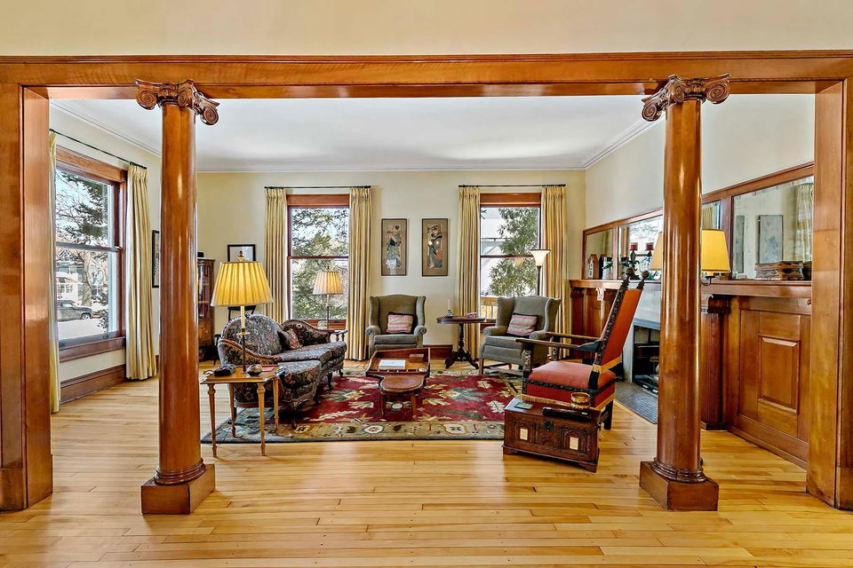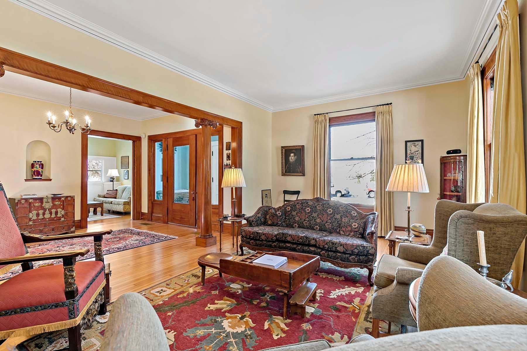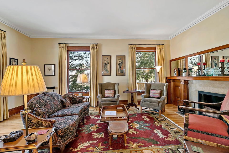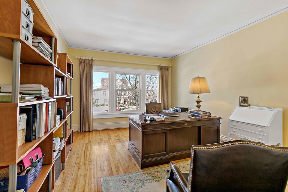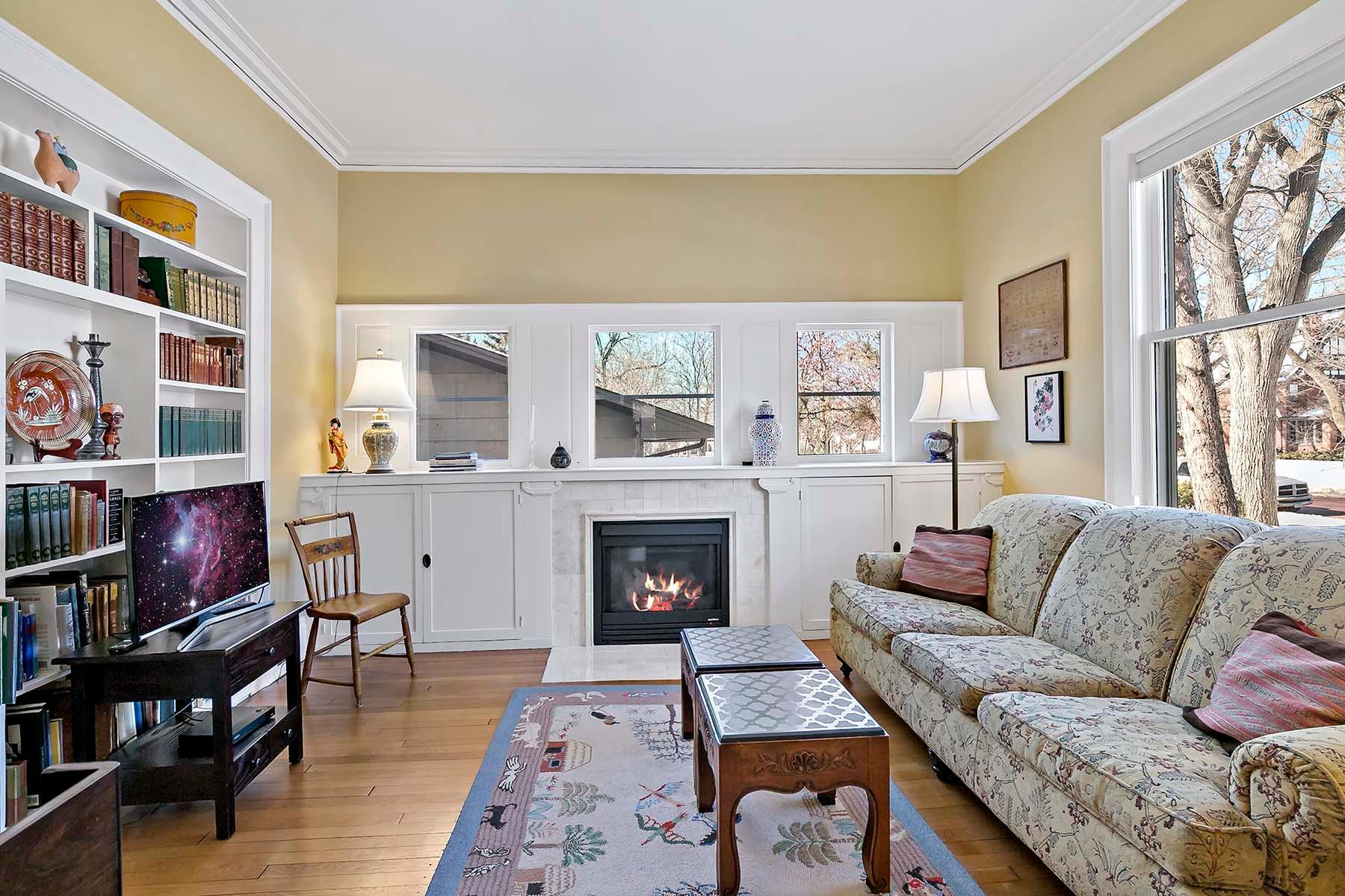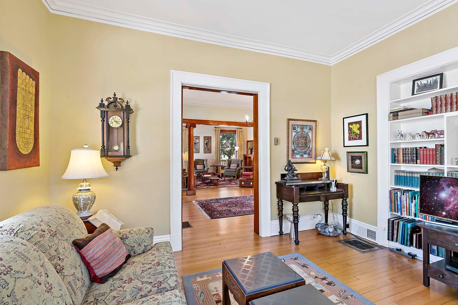 Beautifully maintained, classic Kenwood home, featuring stunning natural woodwork, hardwood floors, and gracious living spaces. The main floor includes tall ceilings, formal and informal gathering spaces, and rooms filled with natural light. Four bedrooms on the second floor including primary bedroom with private 3/4 bath. Stunning staircase leading to the finished third floor with additional bedroom and office/studio. Basement includes a family room and ample storage. Enjoy the outdoor back patio and screened porch. Two car garage with vaulted, skylit workshop up above. This lovely home has it all!