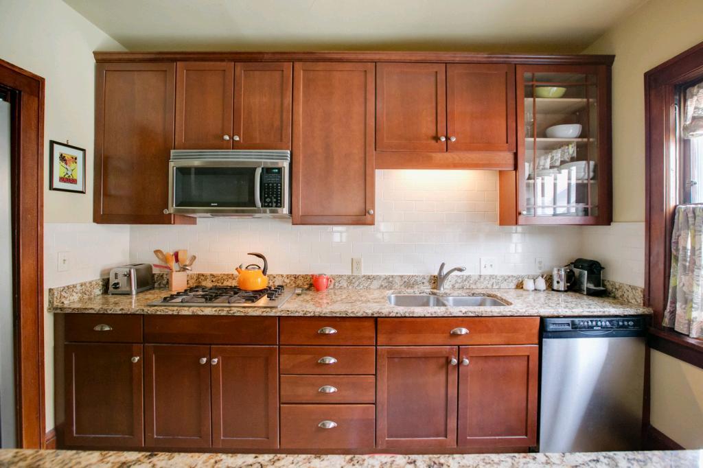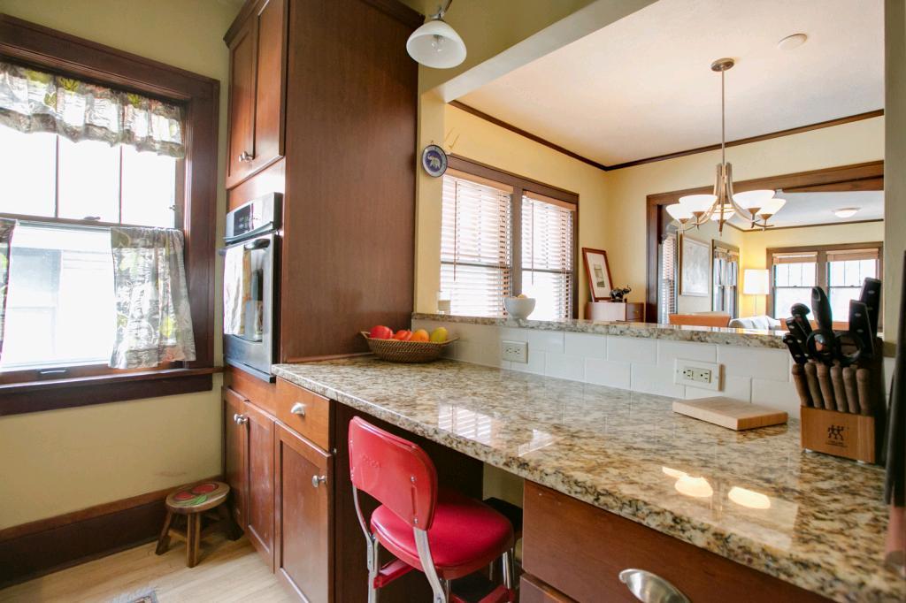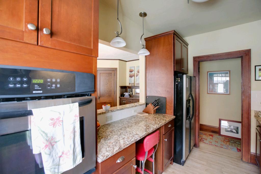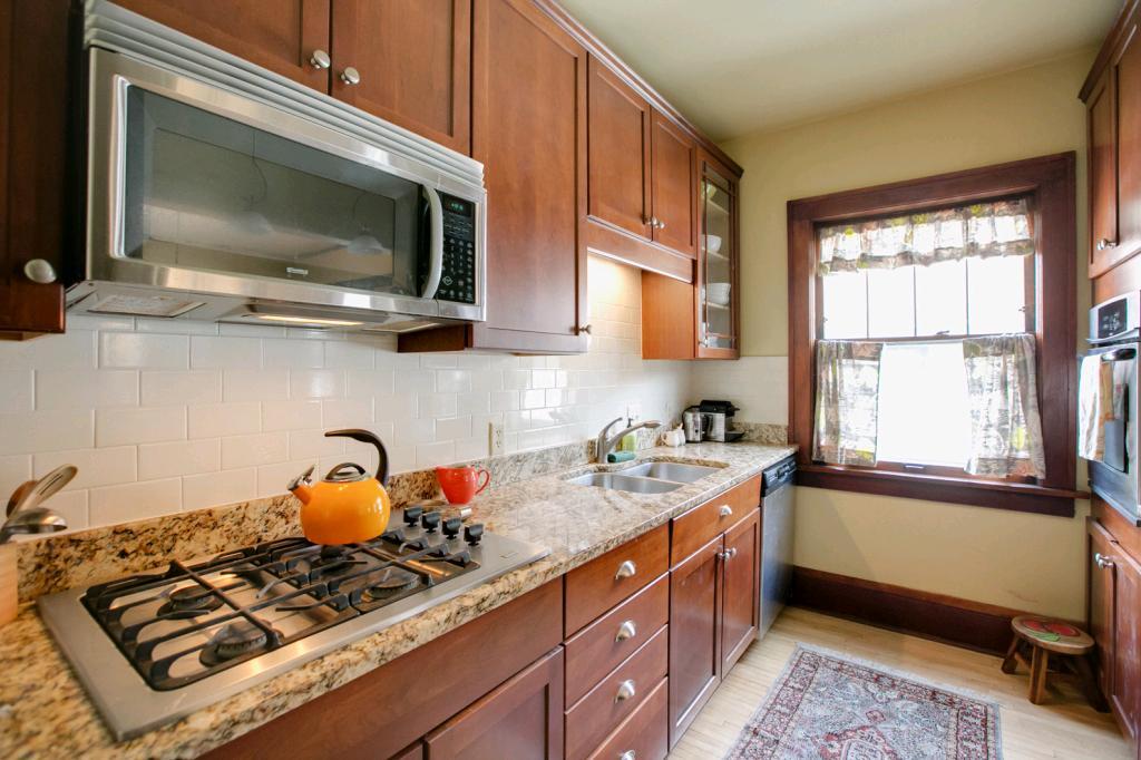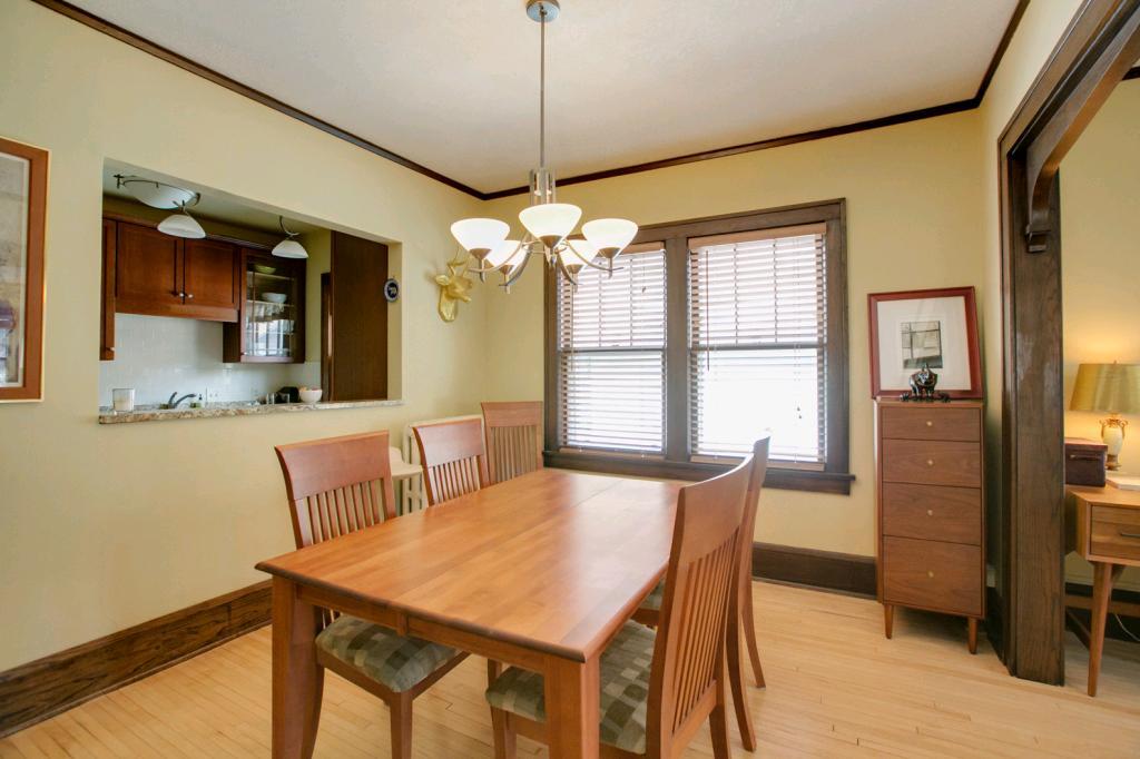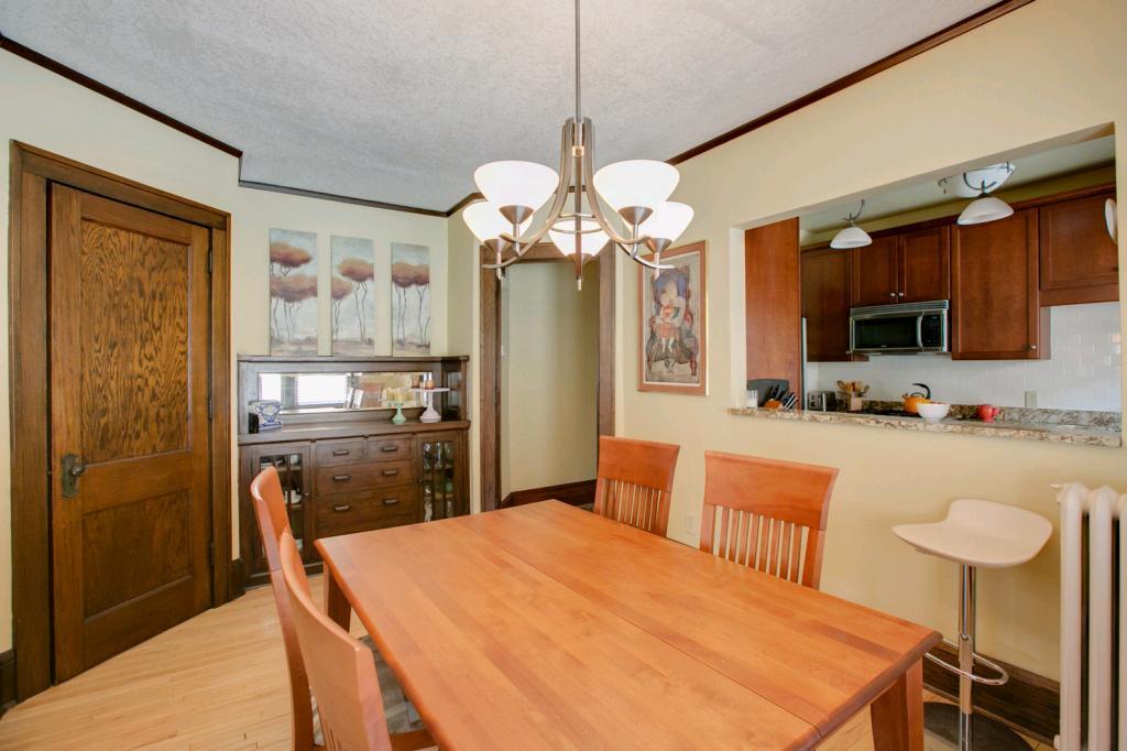 Classic, chic, current! Pristine top floor corner 2 BR condo! Sun-filled & spacious! Beautiful natural wdwk & hdwd floors. Newly renovated kitchen w/cherry cabinets, granite counters & breakfast bar which opens to formal dining area! Newer appl! Cool new lighting & custom wndw treatments. Subway tiled bath w/honeycomb tiled flooring. Built in buffet in DR & large LR banked w/windows! Pet friendly bldg., rentals allowed, 1 car gar & BBQ/patio area! 26×11 private storage! Lakes & uptown so close!