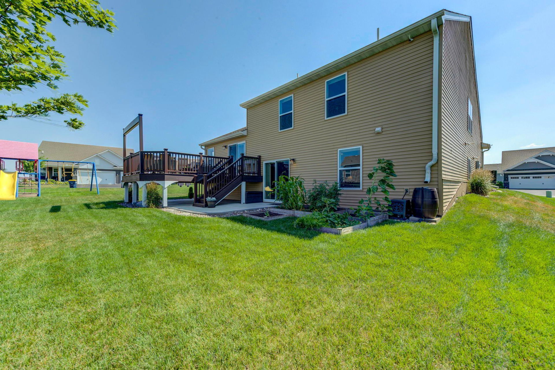 When you round the corner your “oohs and ahhs” will start while the landscaping makes your eyes dance! Truly remarkable home that stands out because of the quality of upgrades/addition and the extreme care that the homeowners have embraced here! Super sunny disposition, vaulted/open main floor…awesome for gatherings! Large foyer, main floor office, and attached 3 car garage which enters to convenient mud room with custom bench and coat/boot storage. Large custom maintenance free deck off living room. 2 canopy system, post lighting on custom deck! Totally awesome kitchen! 3 bedrooms up with full bath plus a private owner’s full bath and walk-in closet! Lower level walkout family room to custom patio and really great yard. 4th bedroom, laundry, and full bath finishes off the lower level! Really a GEM! Exceptional schools and neighborhood! Come on by!