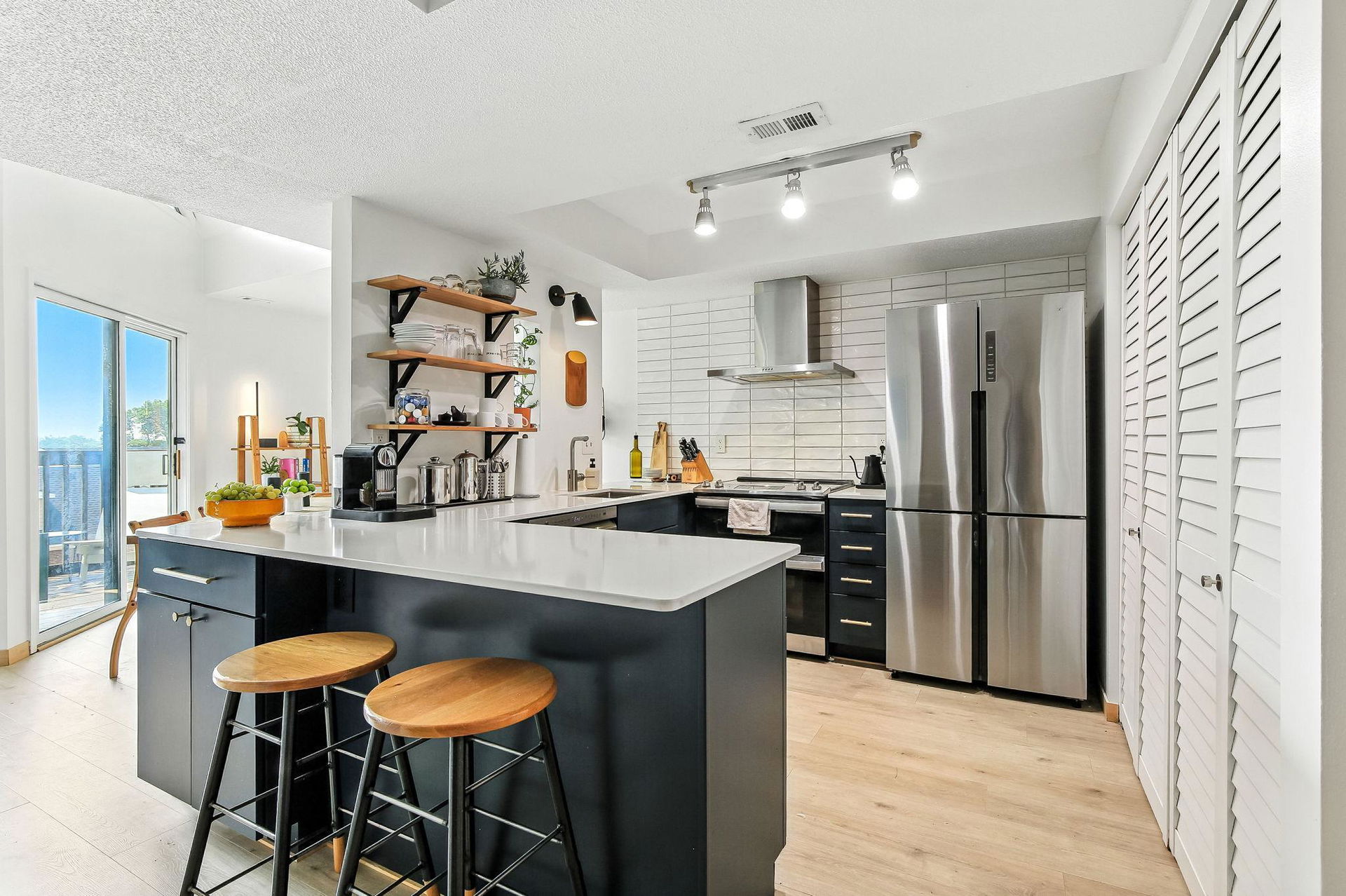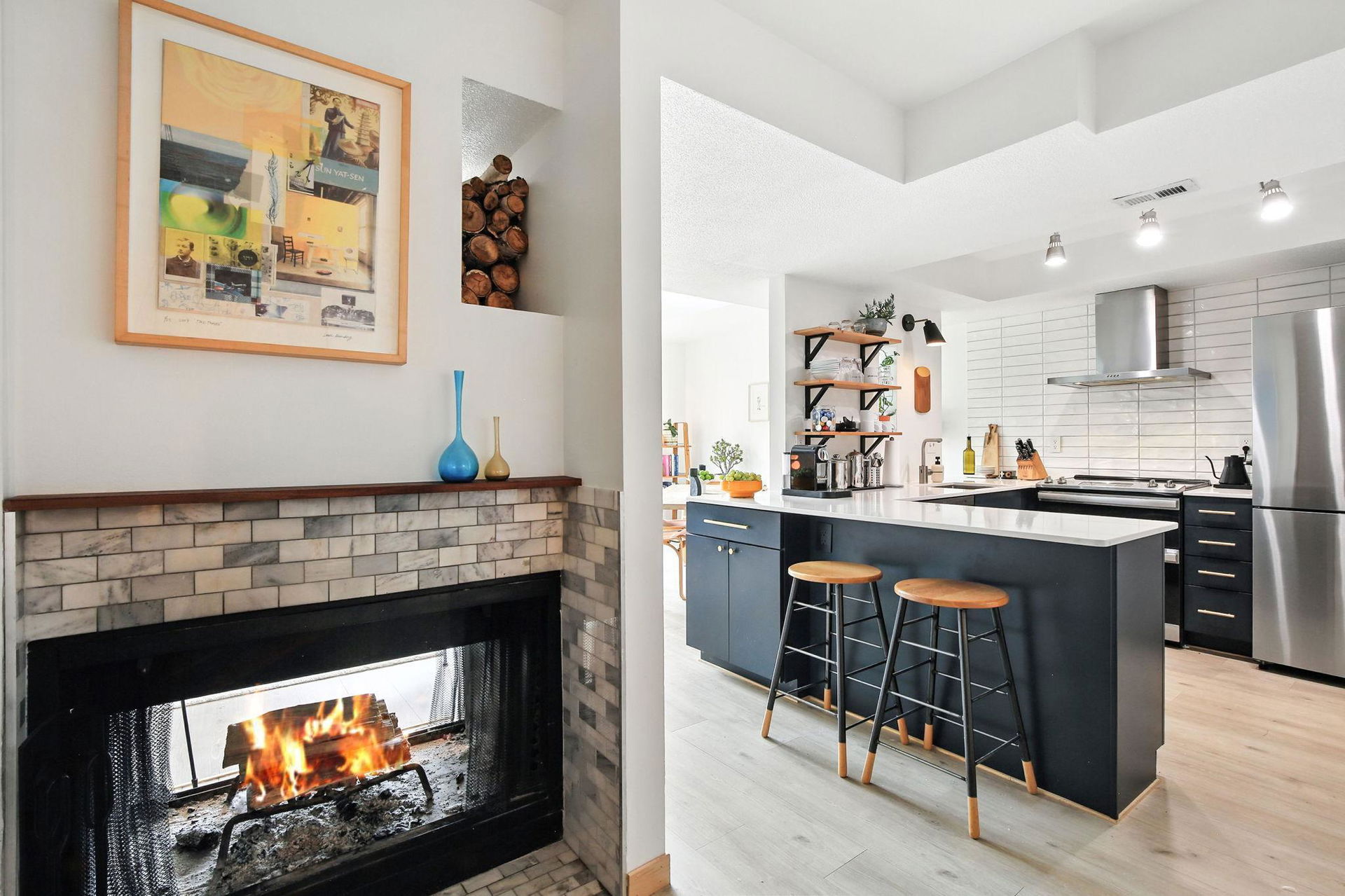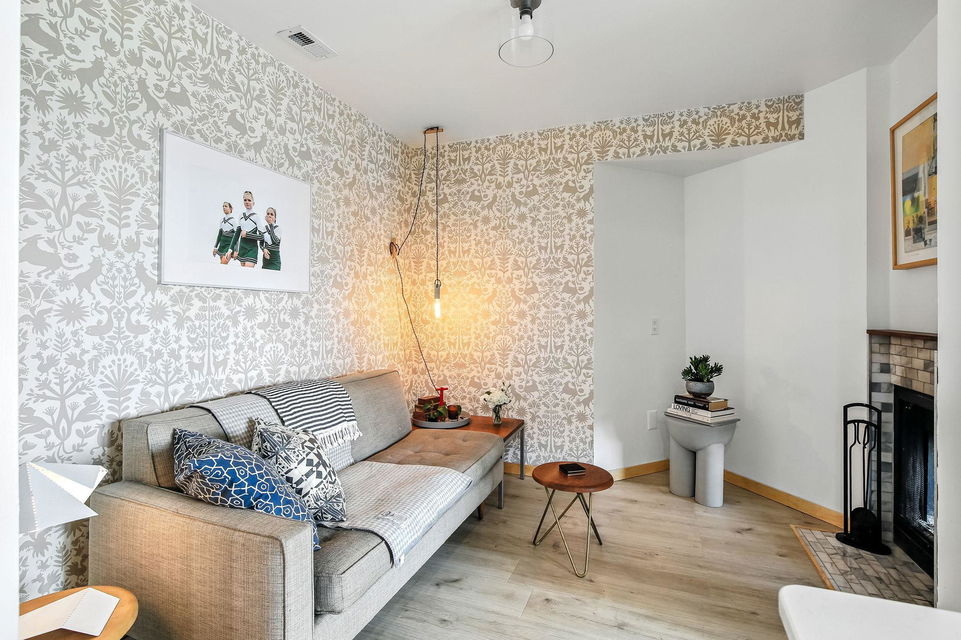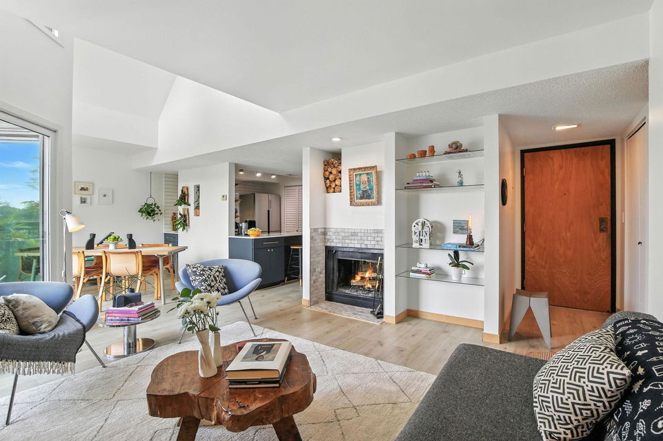 Completely renovated top floor vaulted corner unit in the heart of the downtown fringe! Accessible to theaters, restaurants, easy commuting, Loring Park, Lake of the Isles, trails, MCAD and Institute of Arts! Thoughtfully modern design with such quality choices for finishings. Amazing kitchen renovation has open concept with spacious workspaces, storage, stainless steel appliances, and peek-a-boo window to dining for convenient pass-throughs and conversations. Hardwood floors and freshly painted spacious dining and living room plus an additional flex space off kitchen with 2-sided wood burning fireplace. Updated 3/4 ceramic bath and large bedroom with ample closet space. The 3rd floor treetop views off your private balcony oasis is perfect…morning coffee or evening sunsets…grow your own herbs! In-unit laundry is super convenient! Center air, elevator, heated one car underground parking with additional storage, and fitness center. Plus a fabulous rooftop deck with panoramic downtown skyline views and spot to grill and hang out! You’ll enjoy your visit of this swanky, classy cool vibe condo!