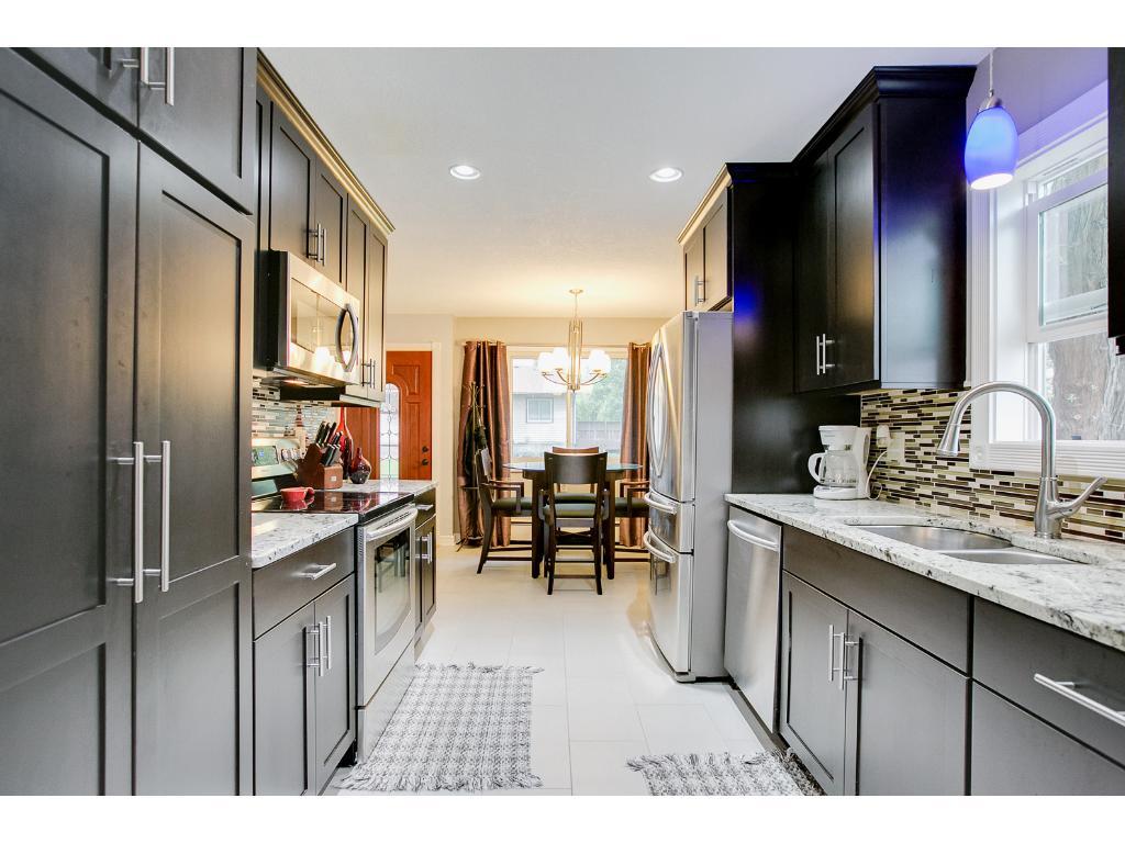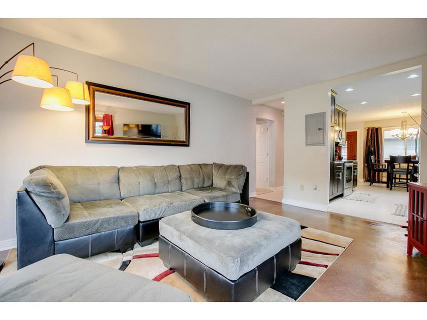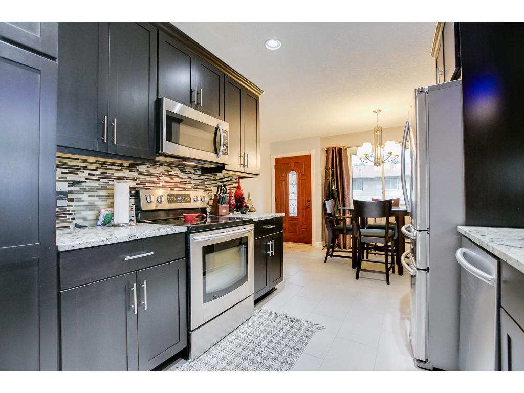 Feels like home! Sunny end unit one level townhome w/private patio, 6′ privacy fence, & beautiful landscaping! You’ll be amazed at the quality of the renovations! Custom new bath & kitchen loaded w/upgrades! Martha Stewart 42″ cabinets, granite counters, SS appl, porcelain flooring & all the bells & whistles! Custom bath completely remodeled-A “10” ALL around! Lrg LR w/access to pvt. yard, 2 BR’s & in-unit laundry! Plus a one car garage! Awesome location & green surrounding property!