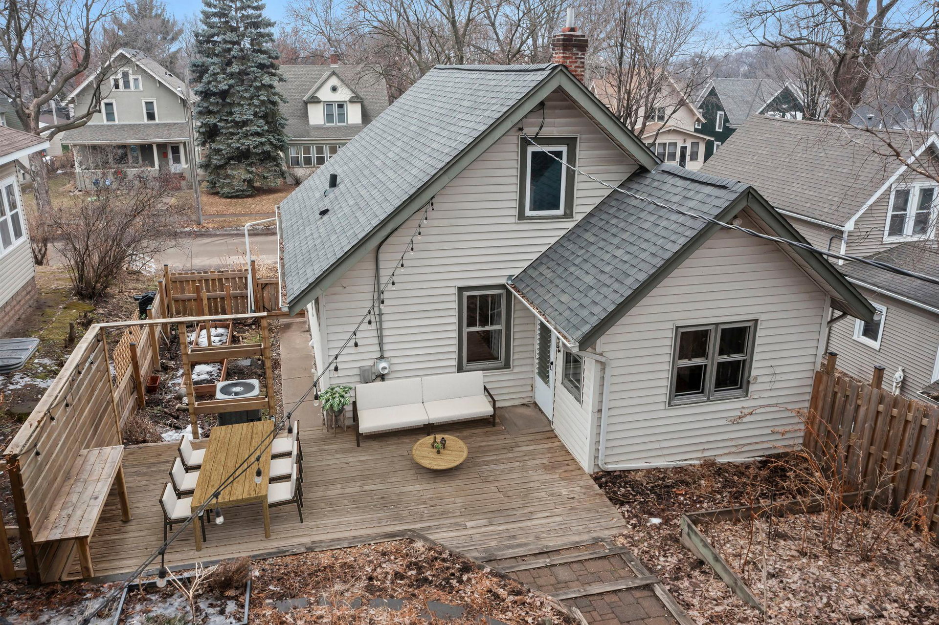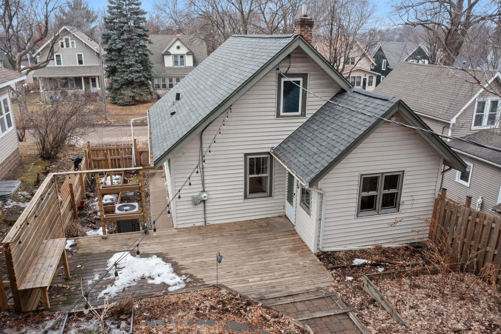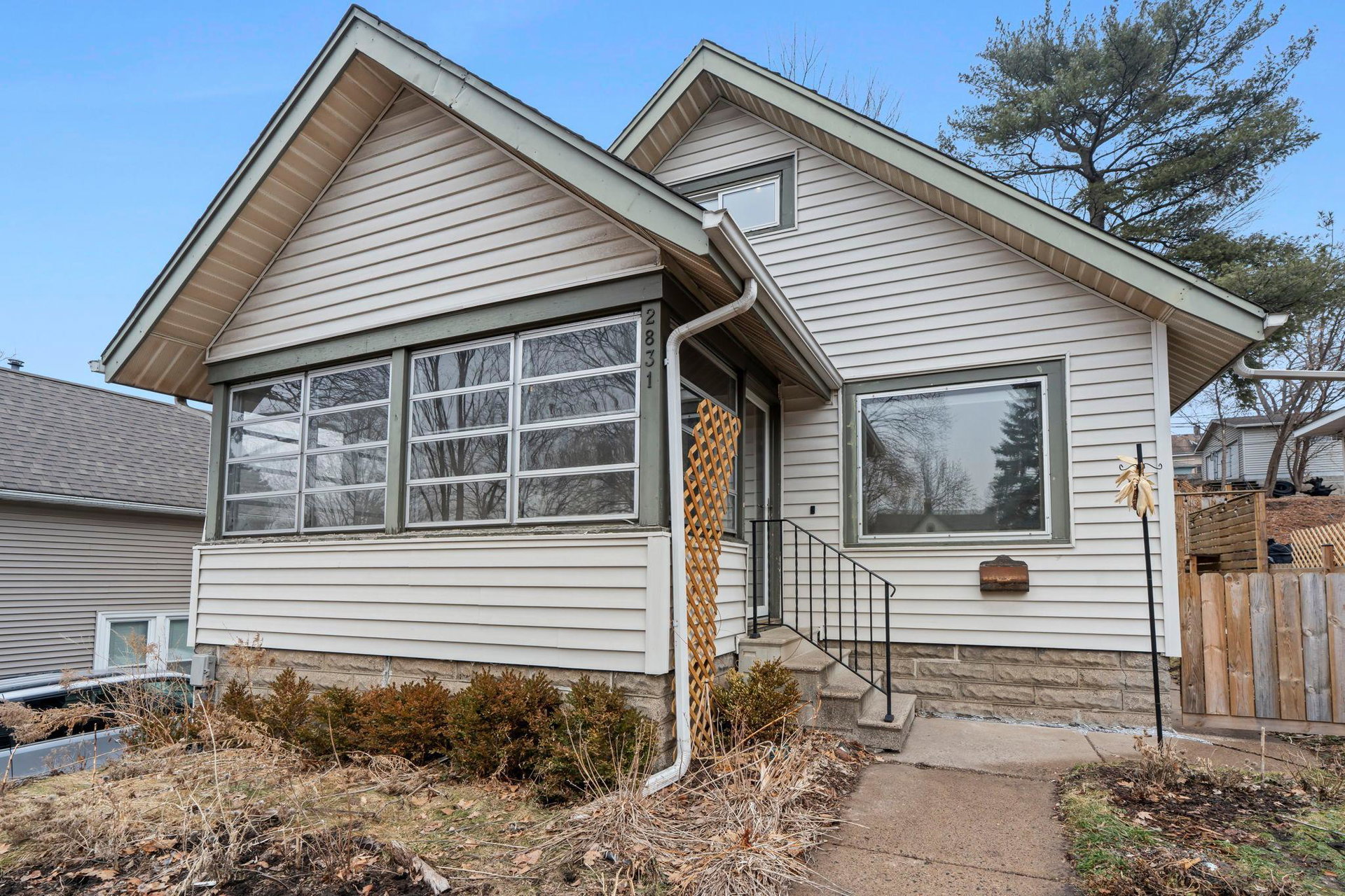 An inviting presence, her perch on the small rise…2831 on Taylor is a classic and charming 1926 bungalow offering modern updates! Inviting and practical front 3 season porch…a spot to read a good book, sip a hot cup of coffee, watch the neighborhood chatter, or give a jolly hello to visitors! Main floor offers an open concept filled with nature sunlight…spacious living/dining with great hardwood floors, loads of windows, board and batten wainscotting and built-in shelves for knickknacks and books. Really cool kitchen with eat-in spot or flex space, newer stainless-steel appliances, wood shelving, white cabinetry, and custom tiled backsplash. Access to backyard oasis and lower level from kitchen. Ample workspace can also combo with friends and family hanging out. Full bath with honeycomb tile flooring and subway tile tub on main. A Murphy bed was added to bedroom on main for convenience and use of space optimization. Large primary bedroom upstairs with great headroom and spaces for dressers, large bed, and lounging. Lower level soundproofed family room has a cool vibe…jam room, craft room, football games, good movies, and more! Large storage room, glass block windows, new stack washer/dryer and furnace humidifier. Central air is a plus! Mechanical room has abundant storage and workshop bench. 2 car detached garage with key pad. New gorgeous owner designed full wood fence…AMAZING! Towering trees gives an up North feel! Compost bin, rain barrel, tiered garden beds, extensive landscaping, raised beds, patio with newer grillers counter/bench! The birds, the bees, the owners LOVE their garden oasis and hope you do, too!