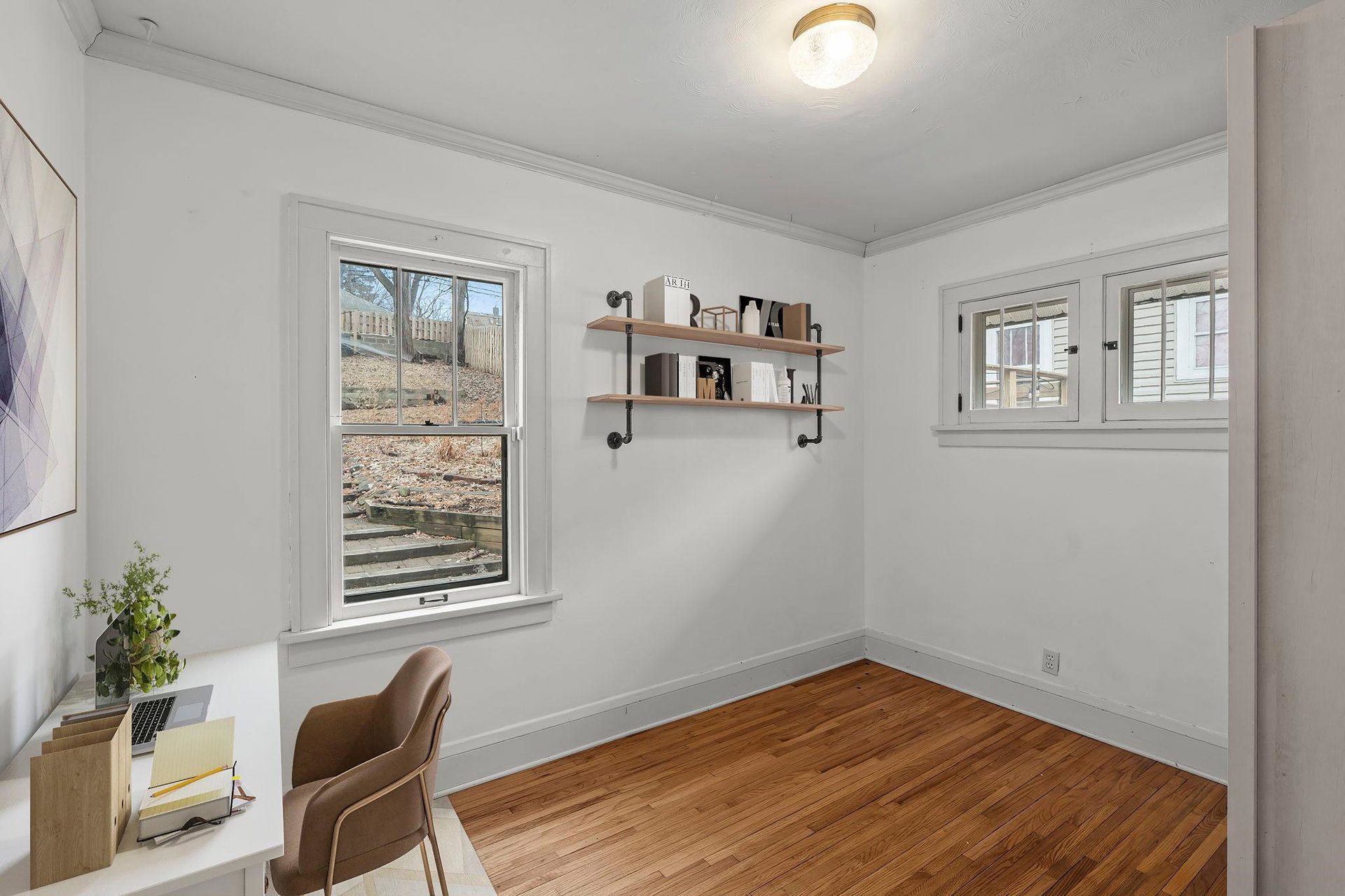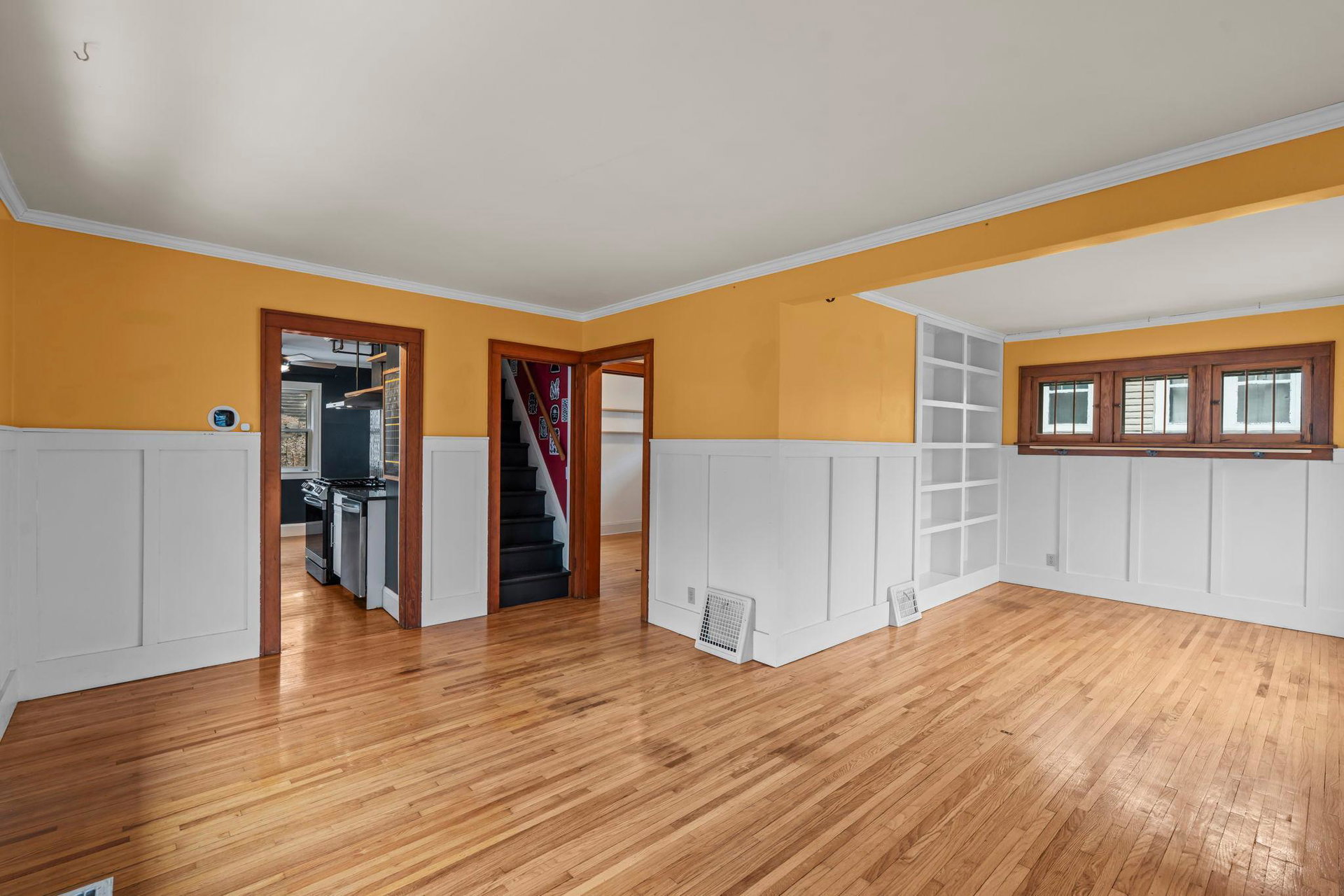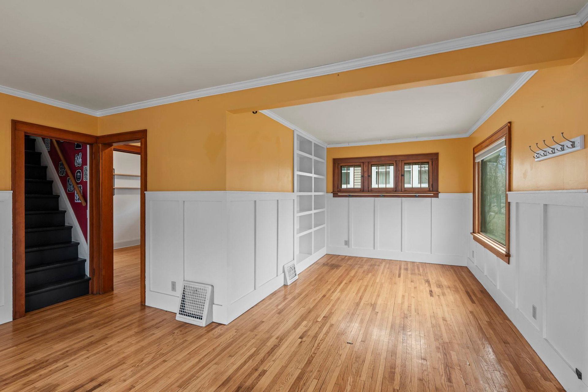 An inviting presence, her perch on the small rise…2831 on Taylor is a classic and charming 1926 bungalow offering modern updates! Inviting and practical front 3 season porch…a spot to read a good book, sip a hot cup of coffee, watch the neighborhood chatter, or give a jolly hello to visitors! Main floor offers an open concept filled with nature sunlight…spacious living/dining with great hardwood floors, loads of windows, board and batten wainscotting and built-in shelves for knickknacks and books. Really cool kitchen with eat-in spot or flex space, newer stainless-steel appliances, wood shelving, white cabinetry, and custom tiled backsplash. Access to backyard oasis and lower level from kitchen. Ample workspace can also combo with friends and family hanging out. Full bath with honeycomb tile flooring and subway tile tub on main. A Murphy bed was added to bedroom on main for convenience and use of space optimization. Large primary bedroom upstairs with great headroom and spaces for dressers, large bed, and lounging. Lower level soundproofed family room has a cool vibe…jam room, craft room, football games, good movies, and more! Large storage room, glass block windows, new stack washer/dryer and furnace humidifier. Central air is a plus! Mechanical room has abundant storage and workshop bench. 2 car detached garage with key pad. New gorgeous owner designed full wood fence…AMAZING! Towering trees gives an up North feel! Compost bin, rain barrel, tiered garden beds, extensive landscaping, raised beds, patio with newer grillers counter/bench! The birds, the bees, the owners LOVE their garden oasis and hope you do, too!