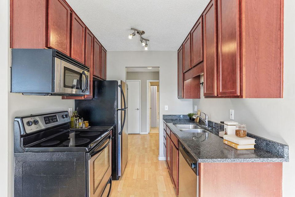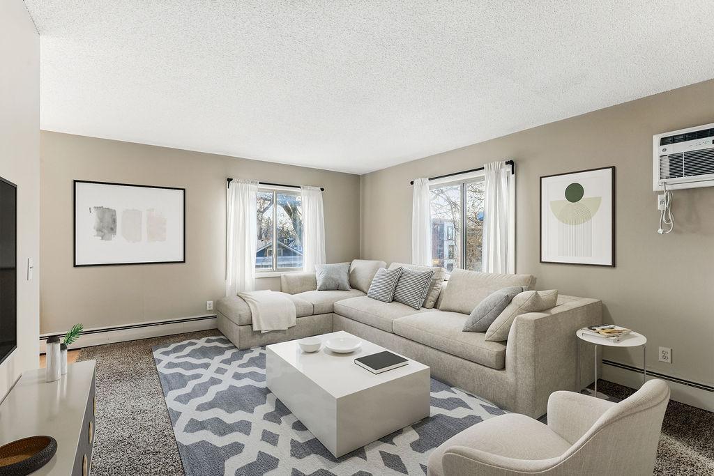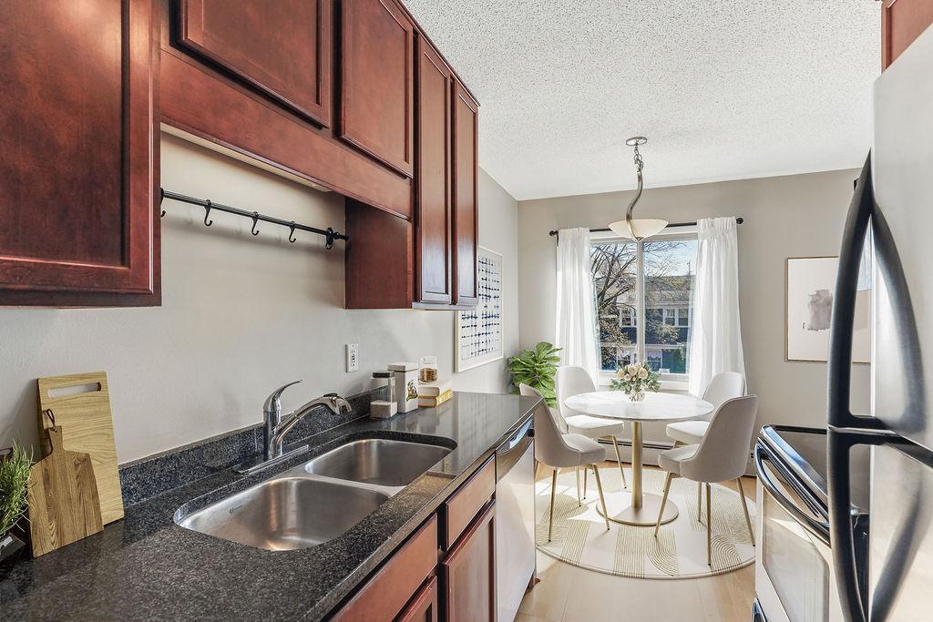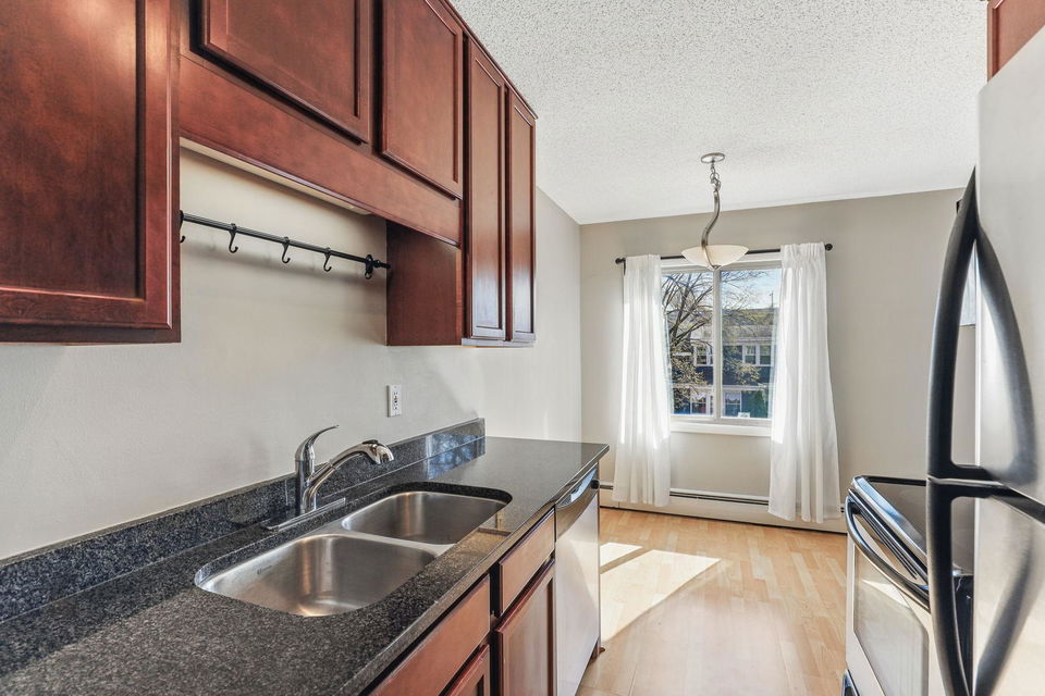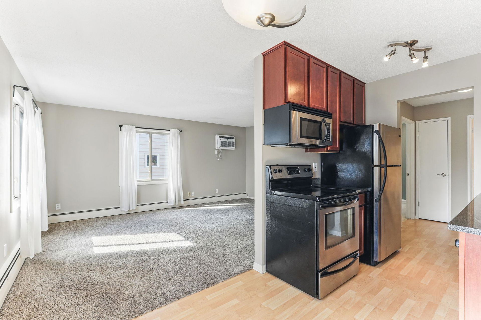 Treetop views with loads of natural light in the turn-key corner condo! Great uptown locale close to everything at Lyn-Lake! Fresh appeal! Awesome kitchen with stainless steel appliances, granite counters, and beautiful cabinetry. Large living room with wall AC, informal dining, good sized bedroom, and full ceramic bath! Several closets! Common, free laundry in basement plus a 3×3 storage locker and room for bicycles! Pet friendly and rentals allowed! One assigned parking space is behind the building! Sunny, south facing unit awaits!