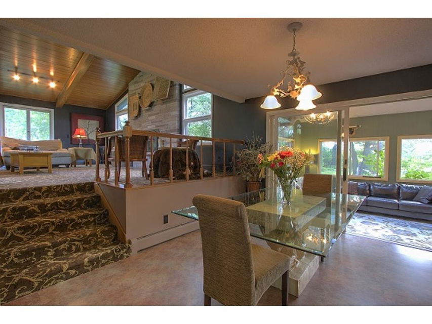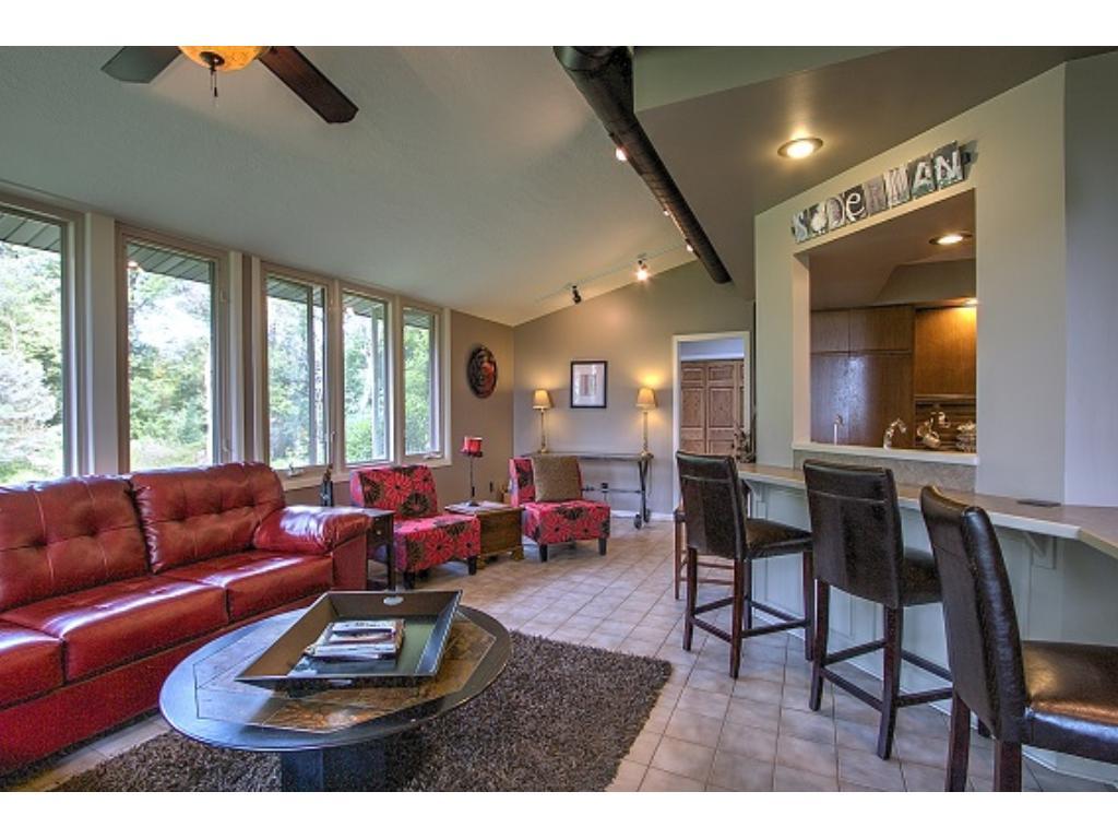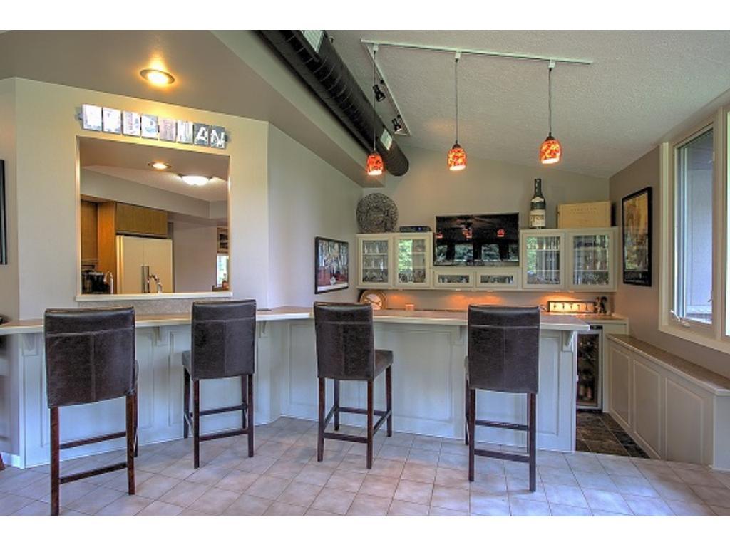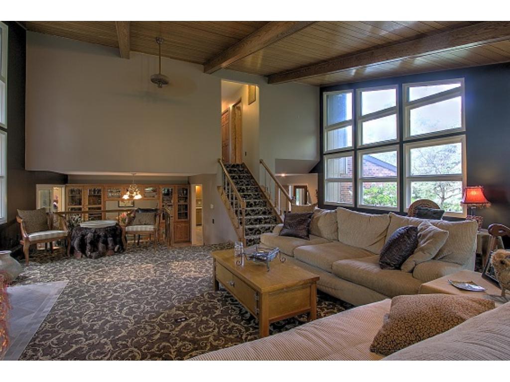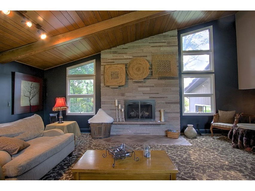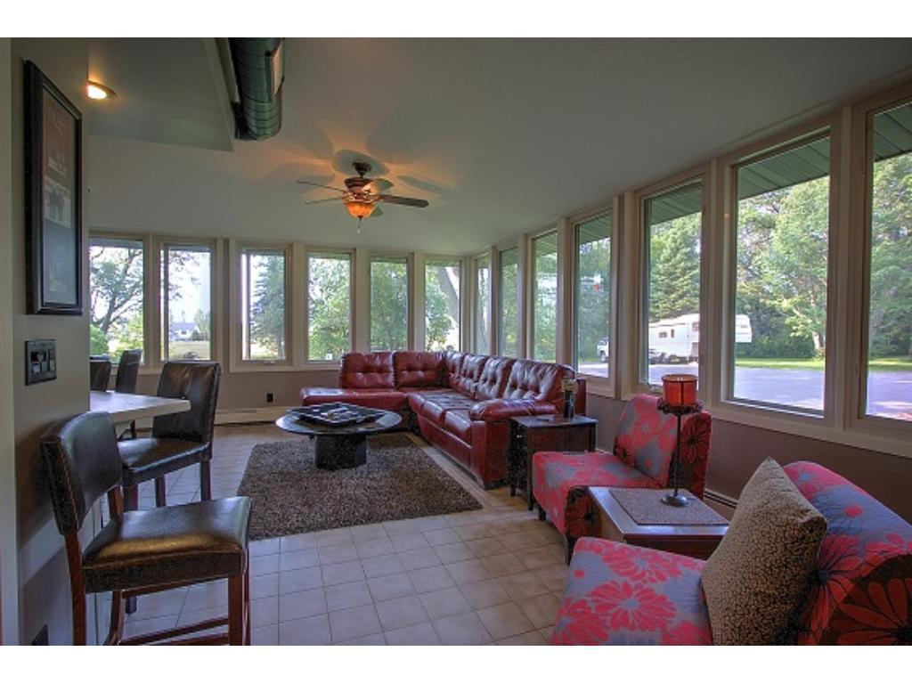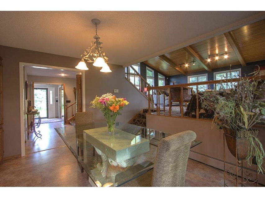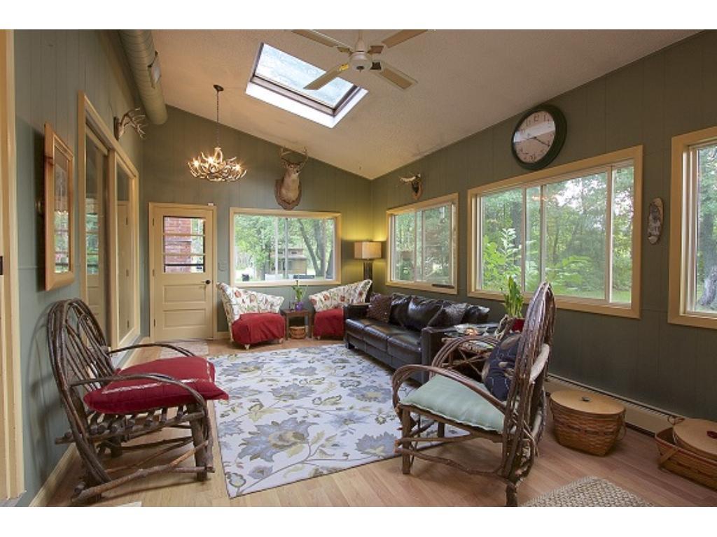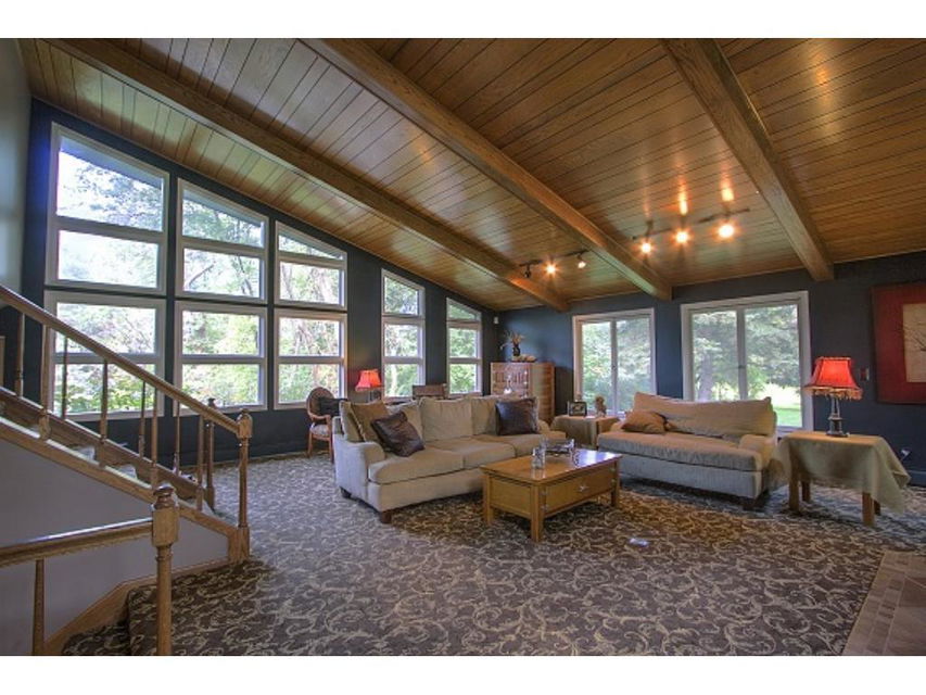 Truly distinctive Custom Built Home with dramatic features: 12 foot ceiling, stone gas fireplace in living room. Formal dining room with built-ins, 4 season porch, sun room with vaulted ceiling, wet bar, ceramic floor, sky lights. 3 bedrooms on 1 level. Outside patio, 2 pole buildings 30×60 with electric, 30×30 with heated shop. Very private!