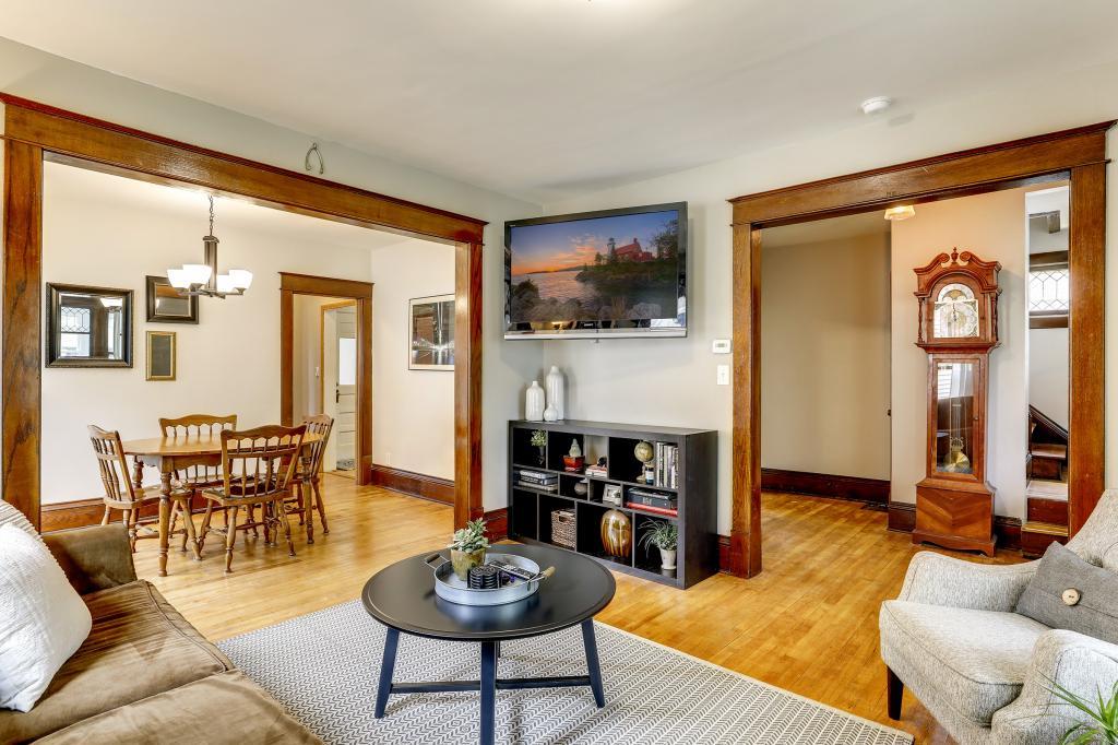 Fully remodeled charmer in South Minneapolis! This bright home offers a spacious front porch, upper level deck, and hardwood floors throughout. The updated kitchen includes stainless steel appliances, white cabinetry, a farmhouse sink, and beautiful white subway tile backsplash. This home also features 5 bedrooms and 2 bathrooms providing plenty of space. This highly desirable location is near Powderhorn Lake, parks, many restaurants, shops, and grocery stores.