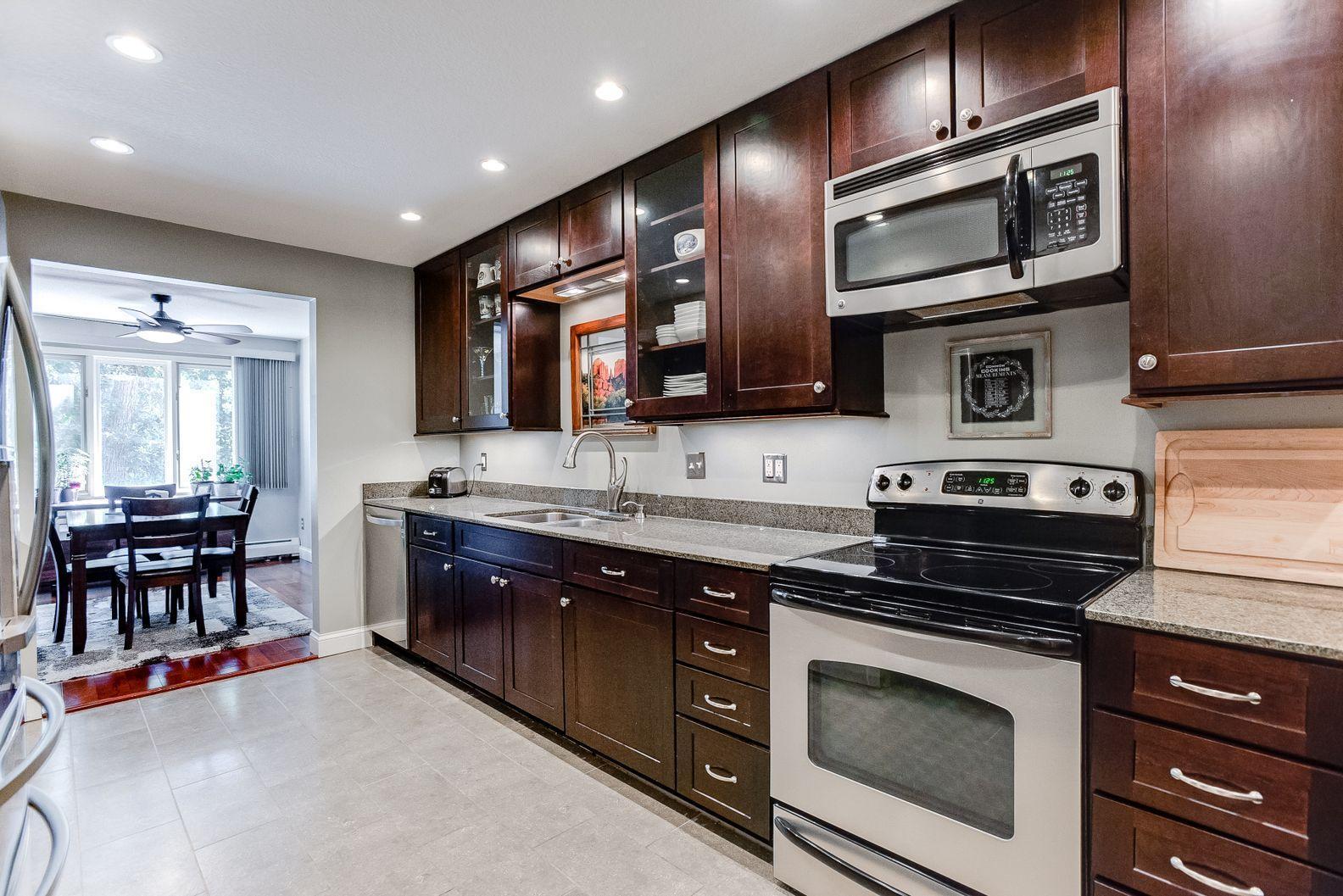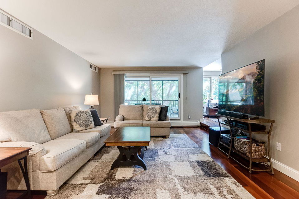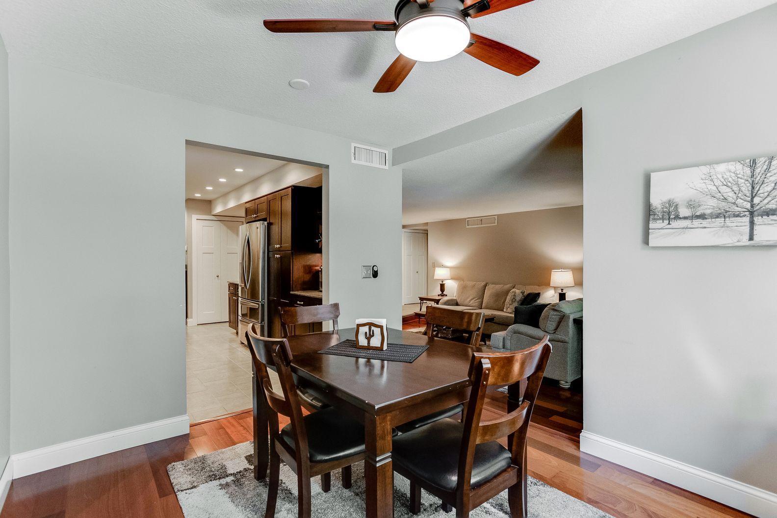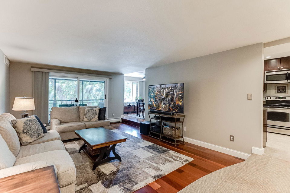 A remarkable property awaits! Loaded with quality upgrades and thoughtfully cared for Seven oaks 2BR/2BA condo with private screened in deck overlooking mature trees! Beautiful through all 4 seasons! Stunning custom kitchen offers dark stained maple cabinets, granite counters, soft close drawers and cabinets, under cabinet lighting, stainless steel appliances, pantry with pull-outs, wine rack, breakfast area, and cool tile flooring! Formal dining and large sunken living room. Great closet and storage spaces. Large bedrooms. Both bathrooms remodeled and are quite awesome! Owner’s suite with walk-in closet and private 3/4 bath with classic marble/tiled walls/floors. All updated white paneled doors and trim. Closets by Design custom closets. Really lovely!