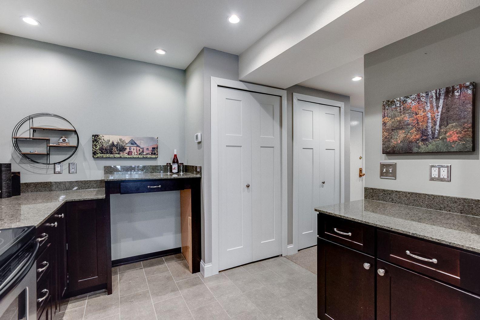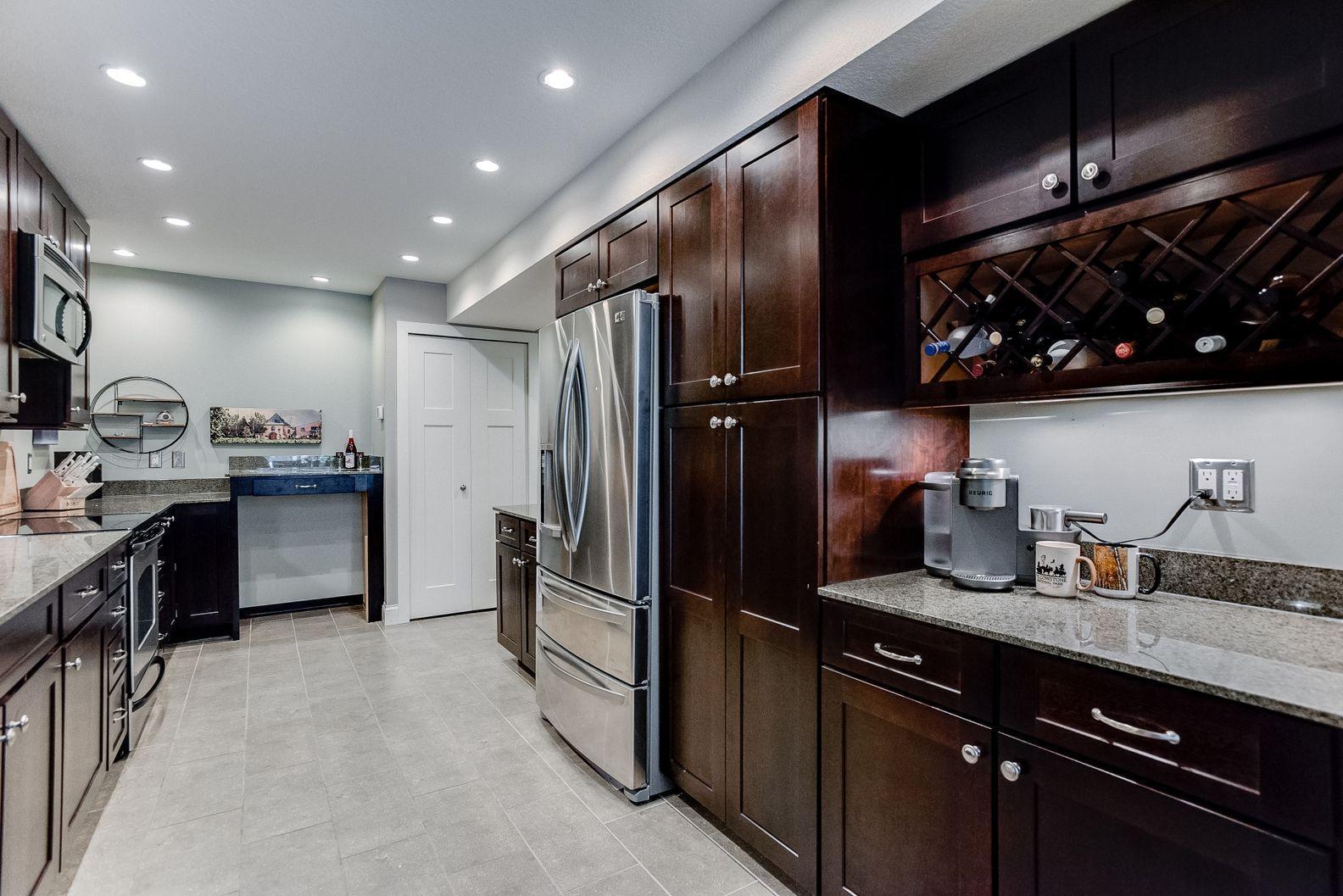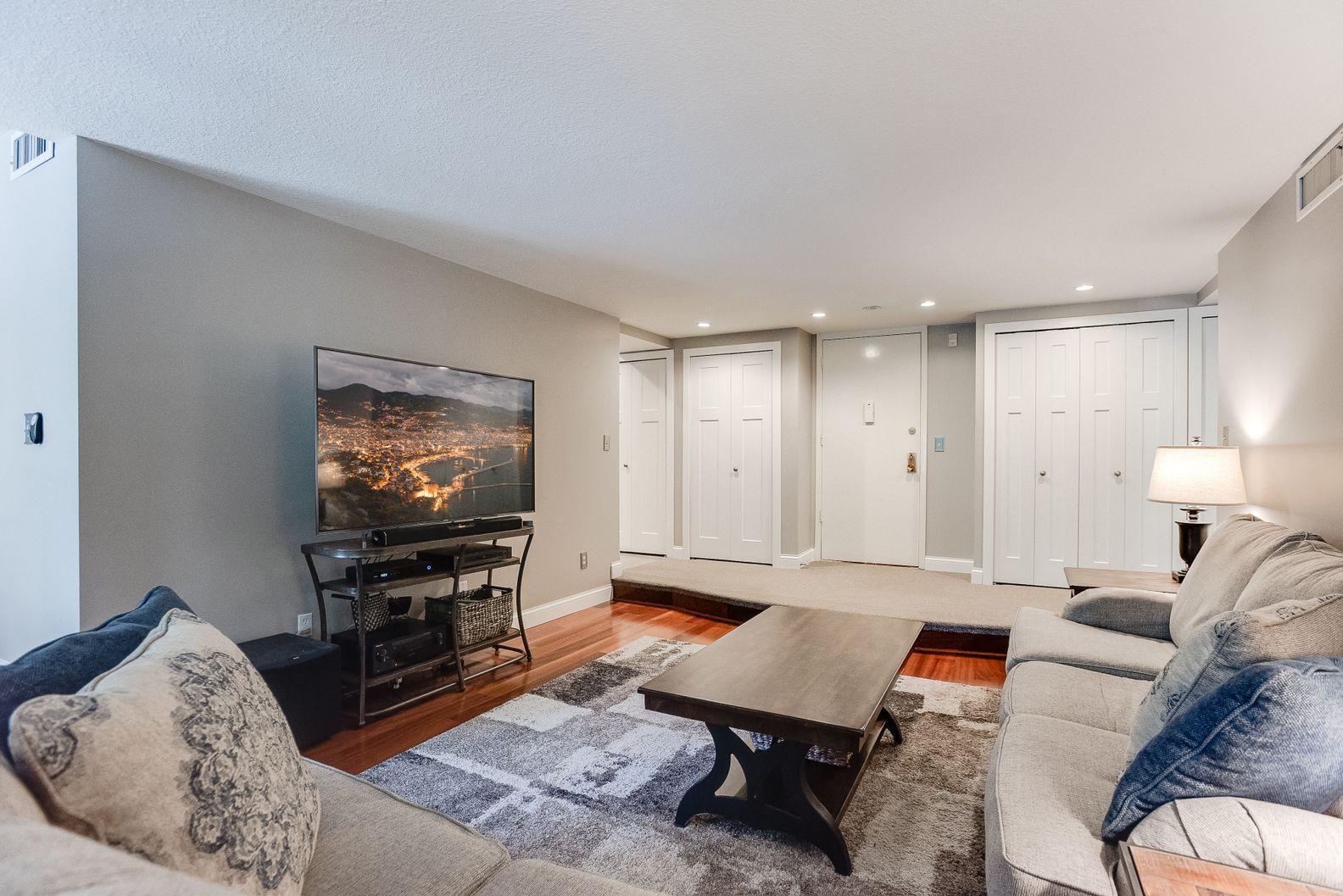 A remarkable property awaits! Loaded with quality upgrades and thoughtfully cared for Seven oaks 2BR/2BA condo with private screened in deck overlooking mature trees! Beautiful through all 4 seasons! Stunning custom kitchen offers dark stained maple cabinets, granite counters, soft close drawers and cabinets, under cabinet lighting, stainless steel appliances, pantry with pull-outs, wine rack, breakfast area, and cool tile flooring! Formal dining and large sunken living room. Great closet and storage spaces. Large bedrooms. Both bathrooms remodeled and are quite awesome! Owner’s suite with walk-in closet and private 3/4 bath with classic marble/tiled walls/floors. All updated white paneled doors and trim. Closets by Design custom closets. Really lovely!