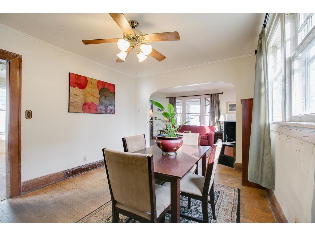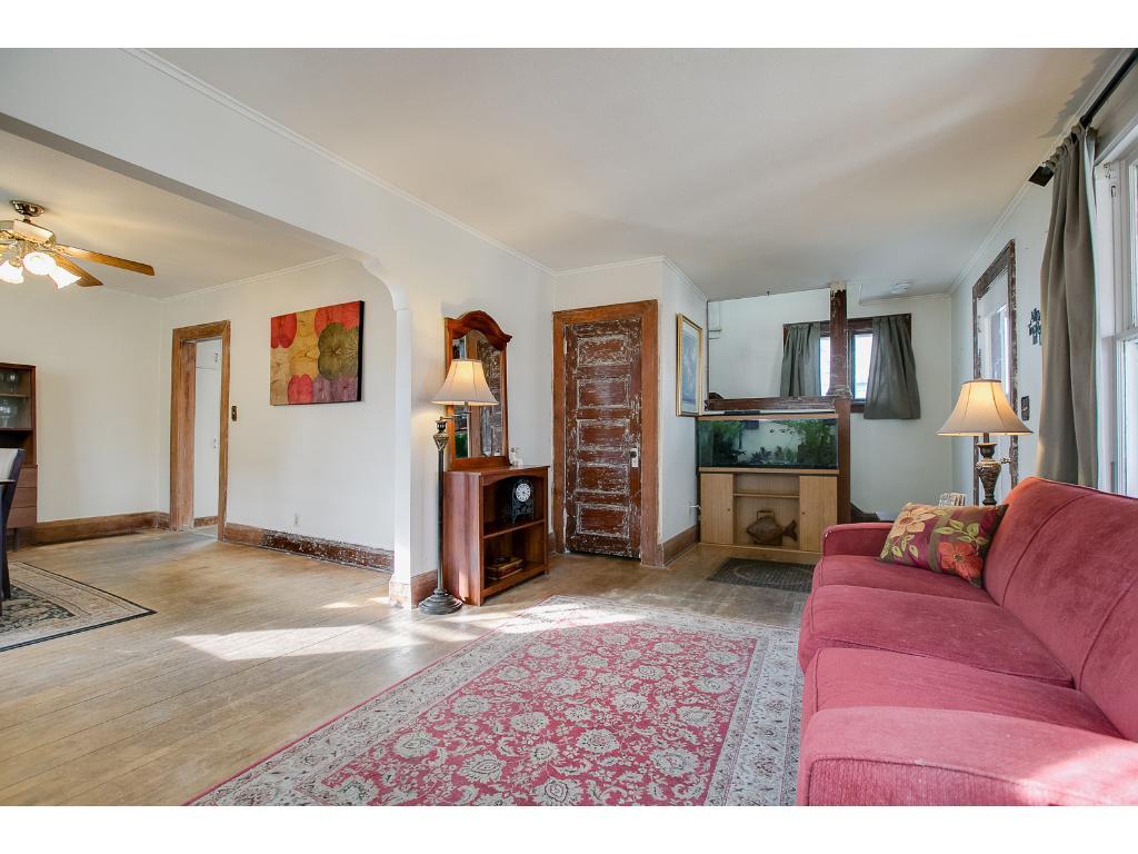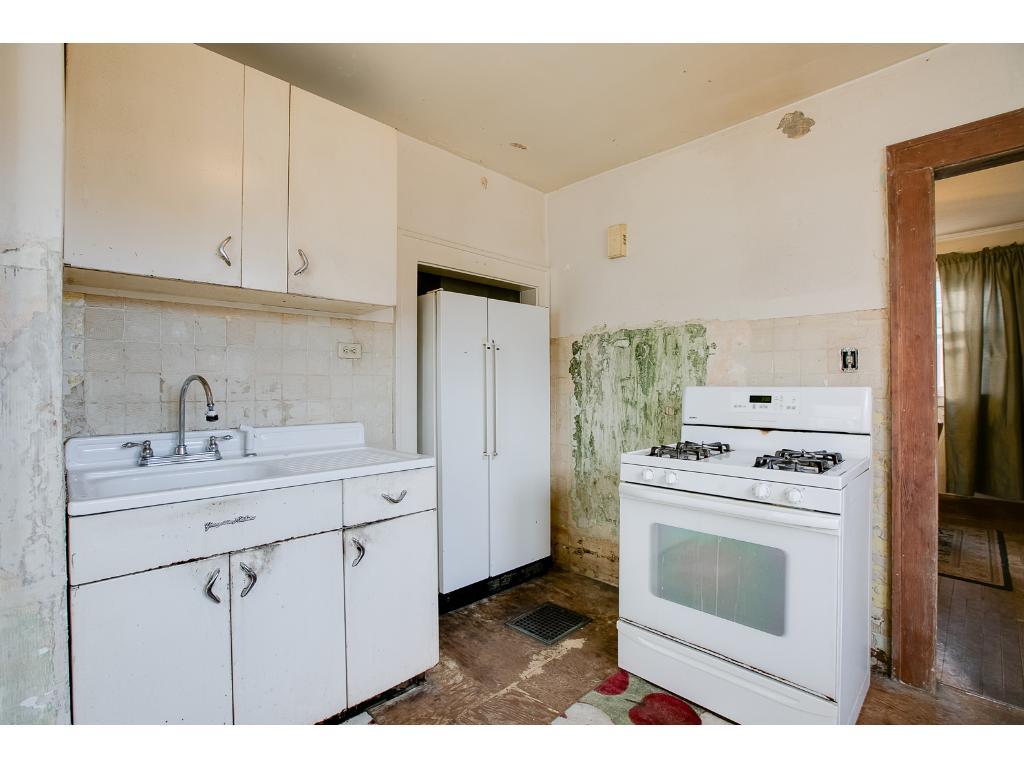 A RARE FIND! Bring your remodeling ideas! Full 2 story with 3+ bedrooms up and a full bath! Charming & classic main floor with natural woodwork & hardwoods. Front porch for warm weather lounging. Large fenced yard & 2-car detached garage. Awesome location! No FHA or DVA & Buyer to assume TISH R&R’s!