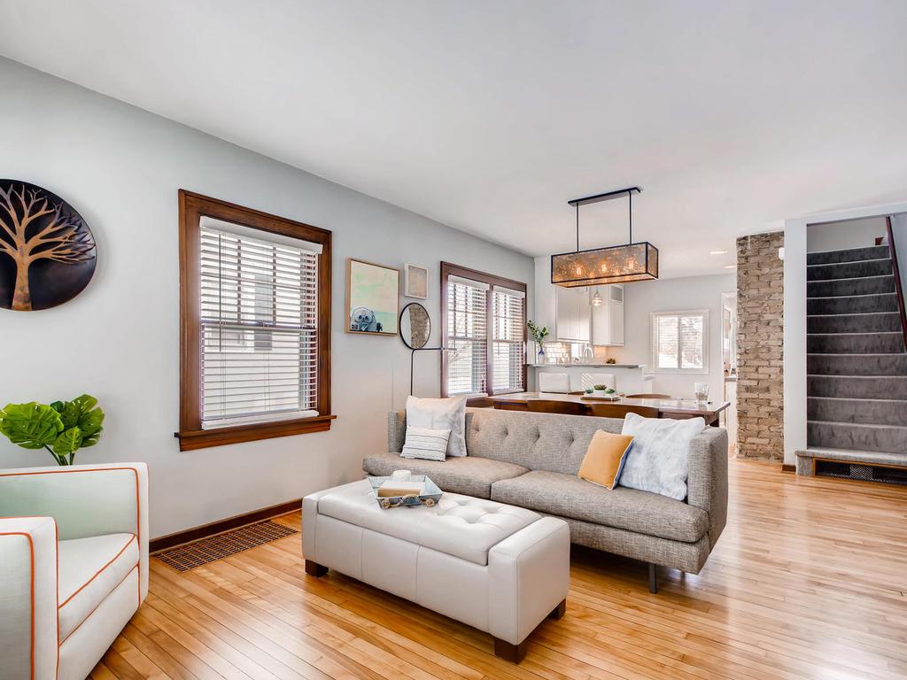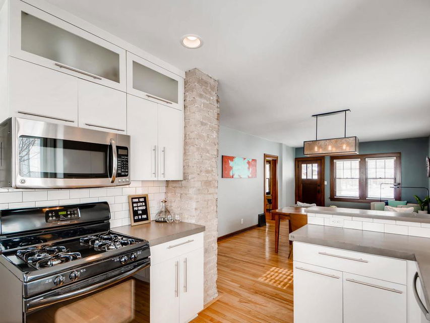 exposed brick. Main floor open between kitchen, DR and LR, main office, bedroom and full bath.