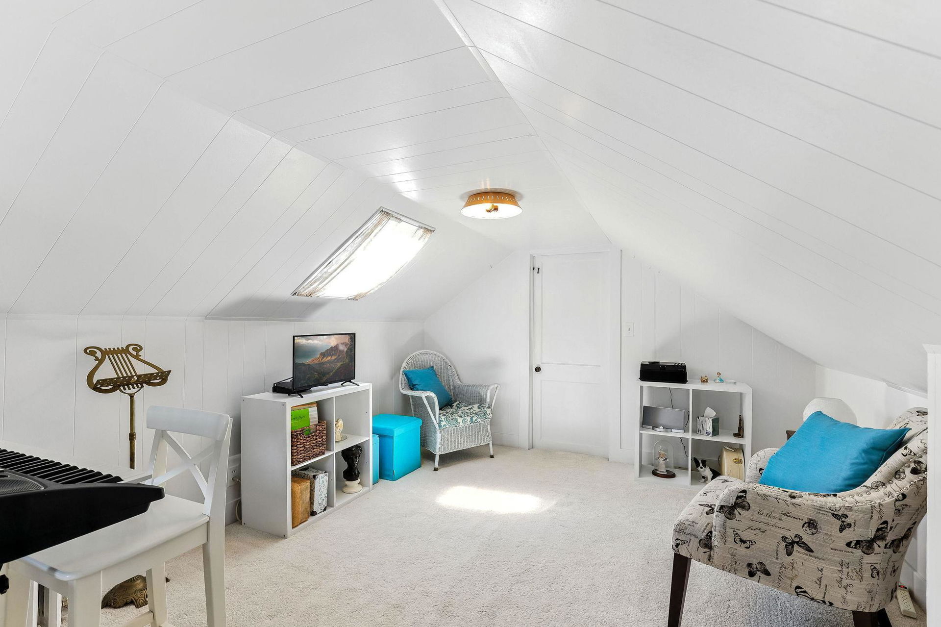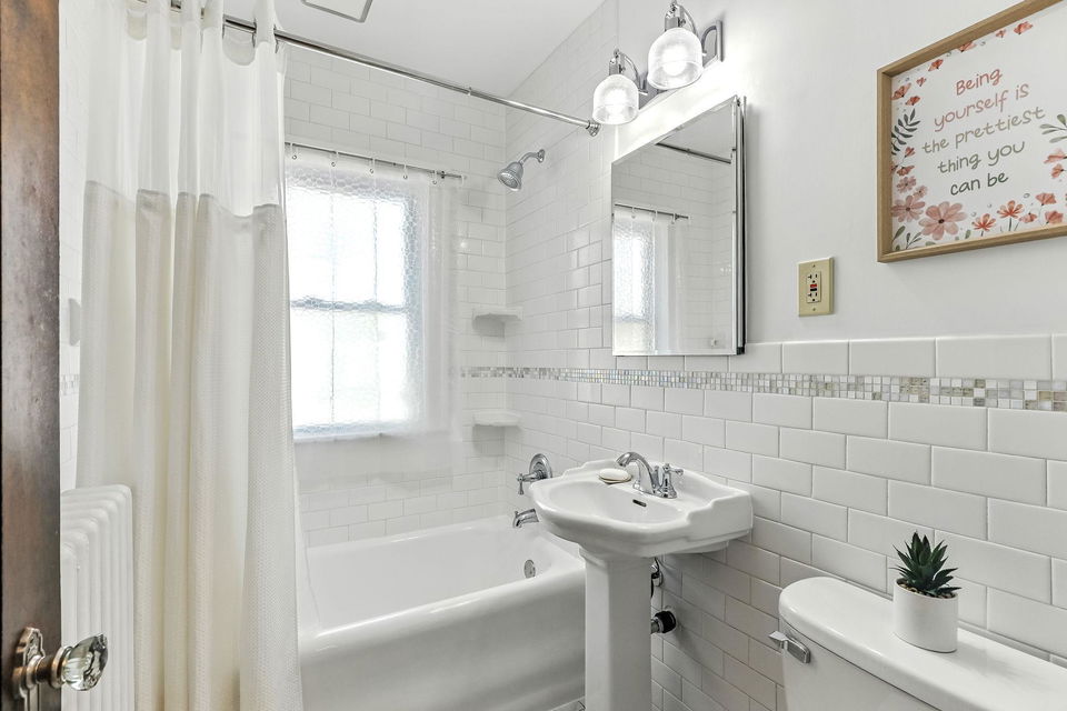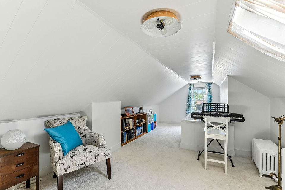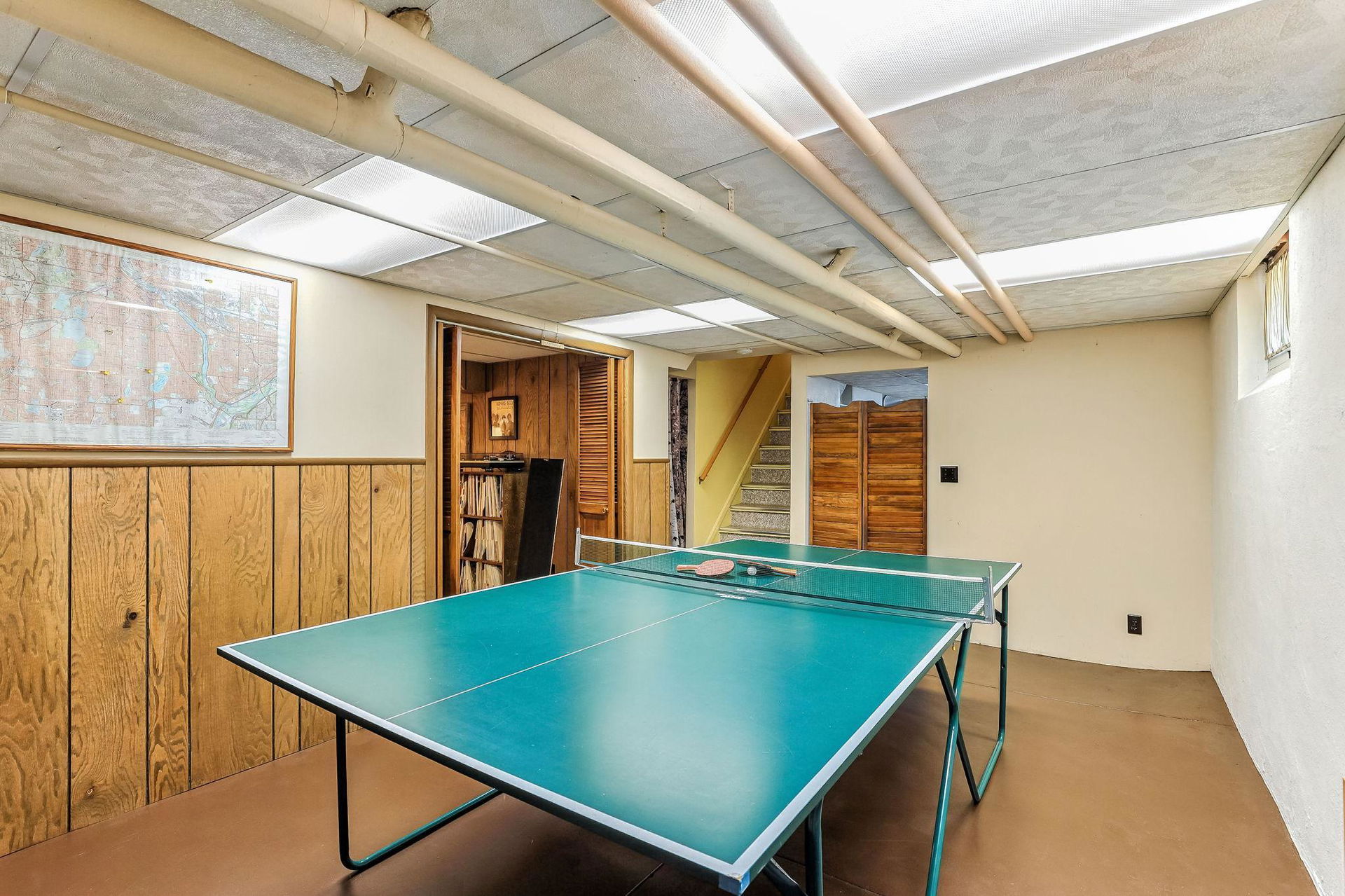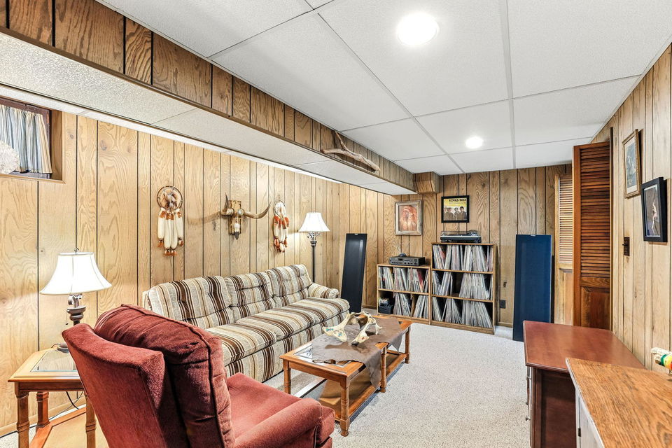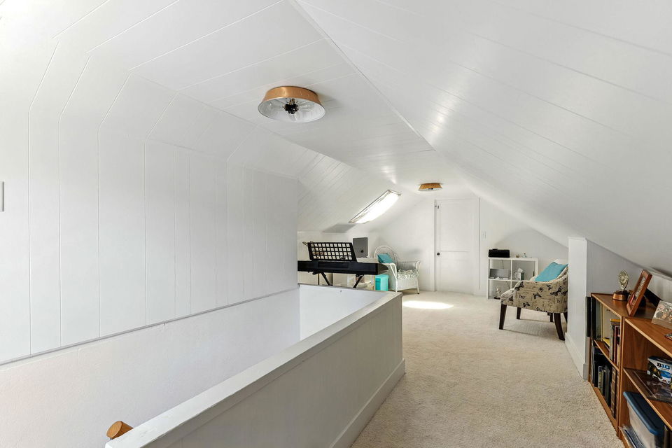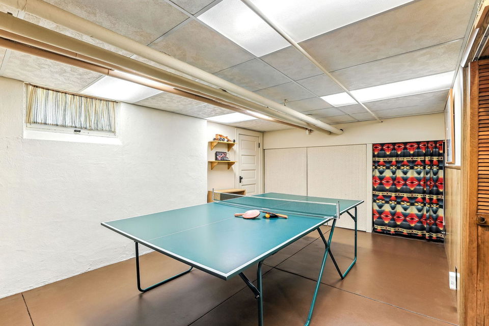 Downstairs, the basement offers a fun recreational space, currently home to a ping-pong table, laundry and other storage spaces. The fenced yard, storm windows that are sound proofed and stucco siding add to the home’s durability, while the upstairs offers a 3rd bedroom or flexibility for an office, play area, or additional storage.
