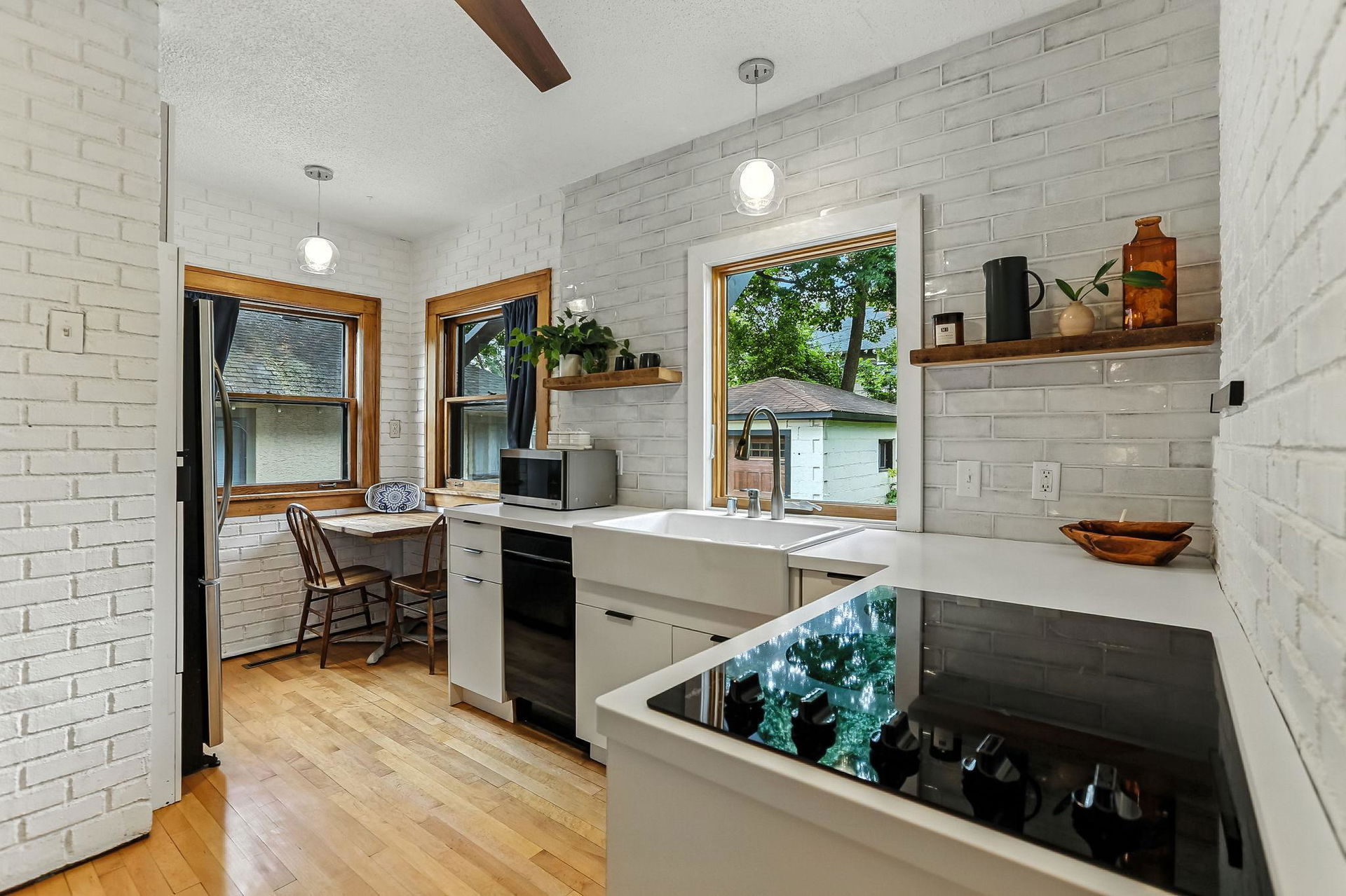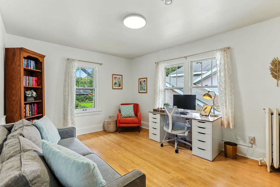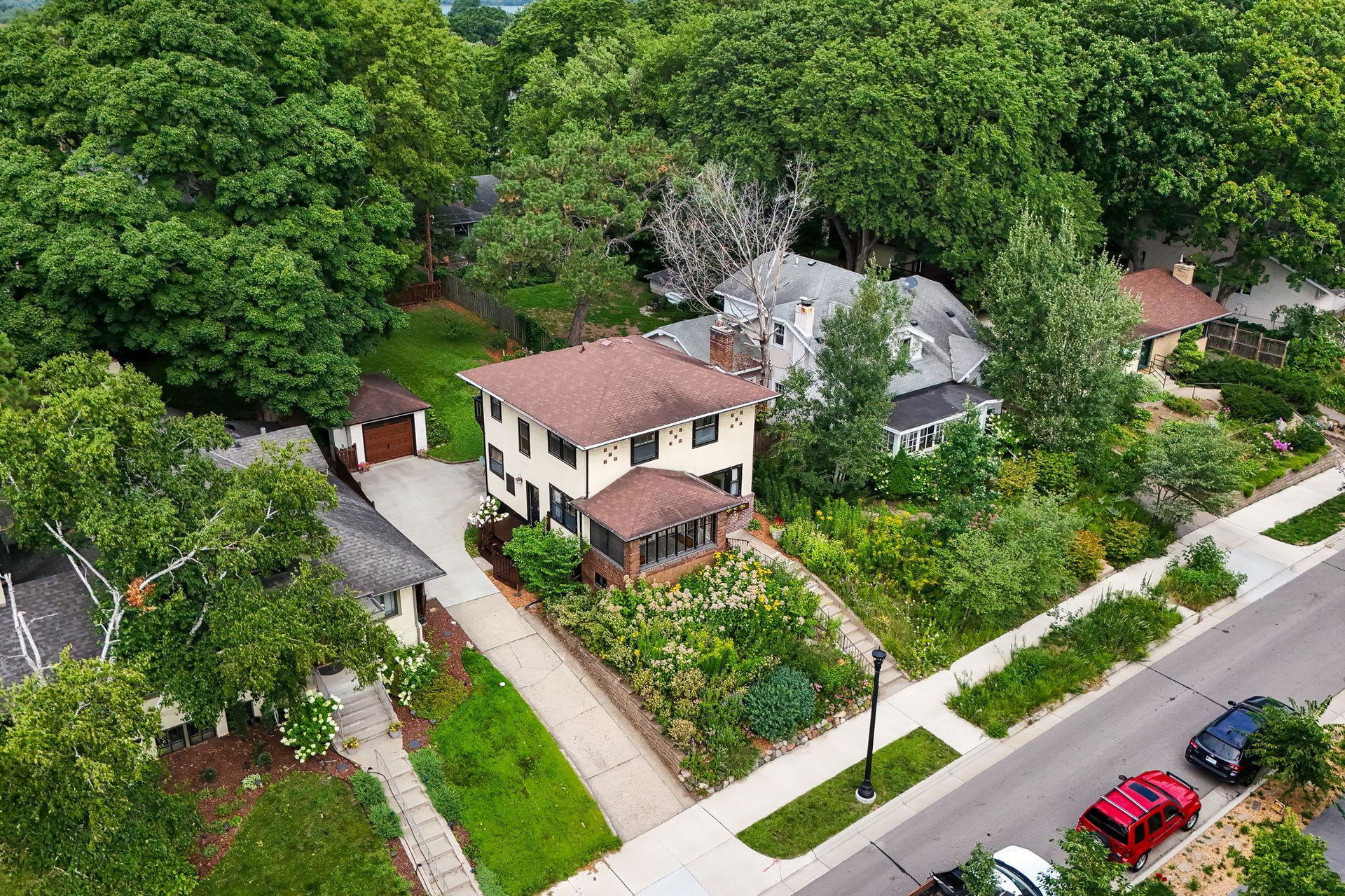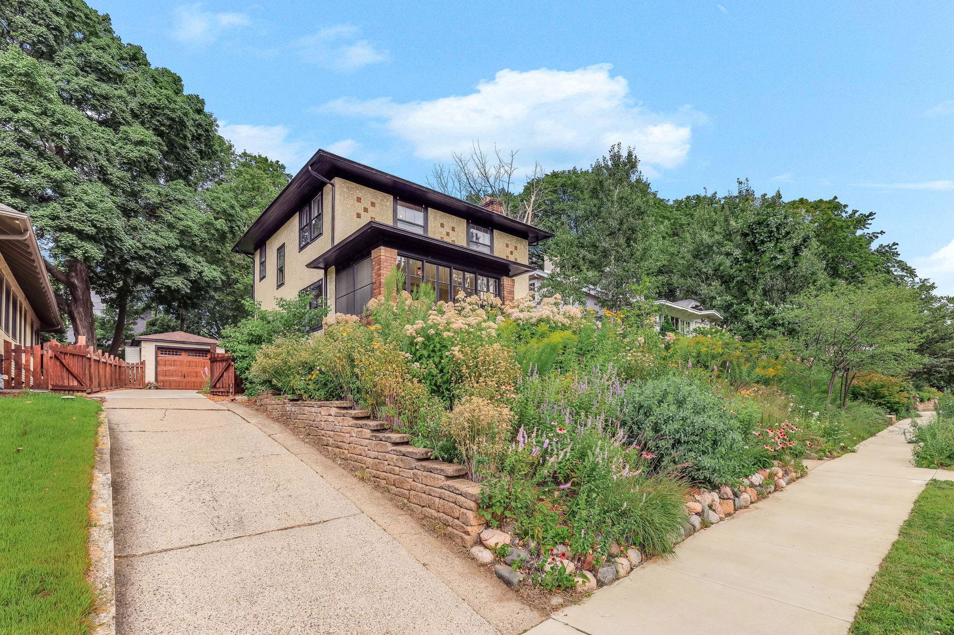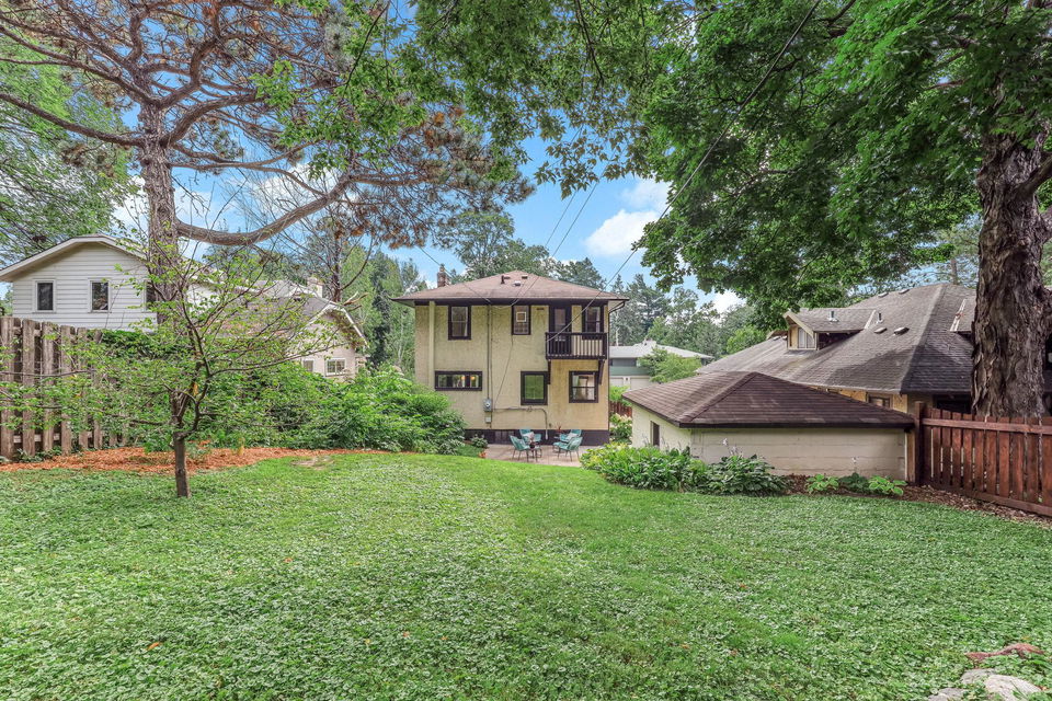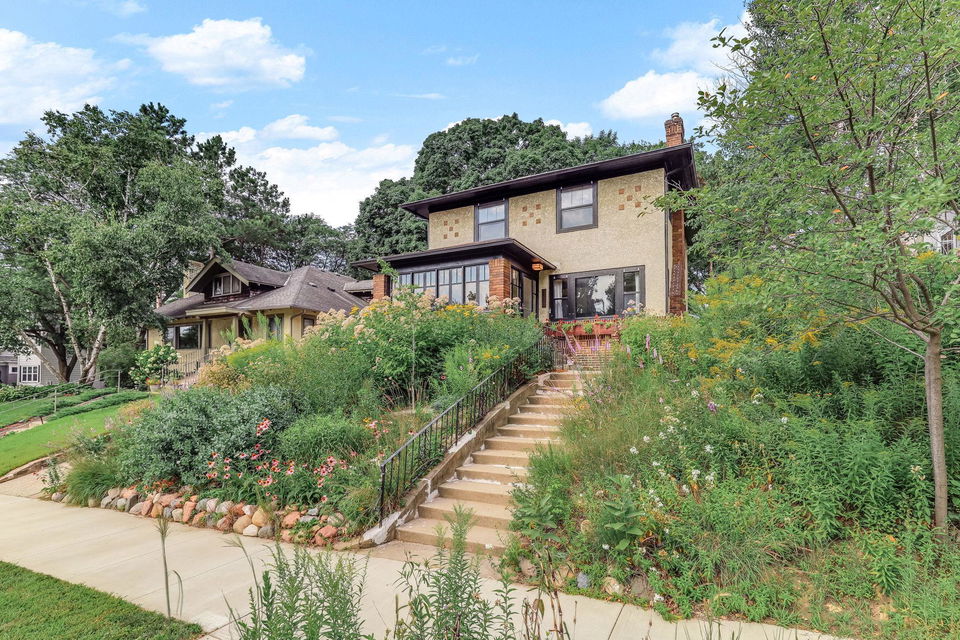 Wind your way around the southeast side of Lake Harriet or along Minnehaha Creek to this charming and stately 1922 four-square 2 story! Really cool blend of classic architecture and modern upgrades! Stunning and pristine woodwork and hardwood floors! The sunny and inviting front 3 season porch is a perfect perch to relax, read, craft, or check out the gardens! The front elevation is bursting with native grasses and wildflowers that never need watering….honeybees and monarchs are often visitors! Spacious living room and formal dining with great flow to the modern kitchen banked with windows overlooking the lush yard! Breakfast nook, plenty of prep and hang out space and storage! Access to side entry and deck! Gorgeous buffet flanked within dining area cabinetry and awesome original windows overlooking rear private patio and green space. 3 bedrooms up, walk-in closet, linen closet, hardwood flooring, and full updated tiled bath. Upper rear balcony….classic! Large unfinished basement awaits your vision. Drain tile and sump, newer mechanicals, and central air too! 1/4 bath and loads of storage, laundry area as well! 1 car detached garage, fenced private backyard, large patio and plenty of perennials and towering trees, too! Lynnhurst is a great neighborhood and so close to everything: restaurants, chain of lakes, local parks, trails, and shopping! Come on by!