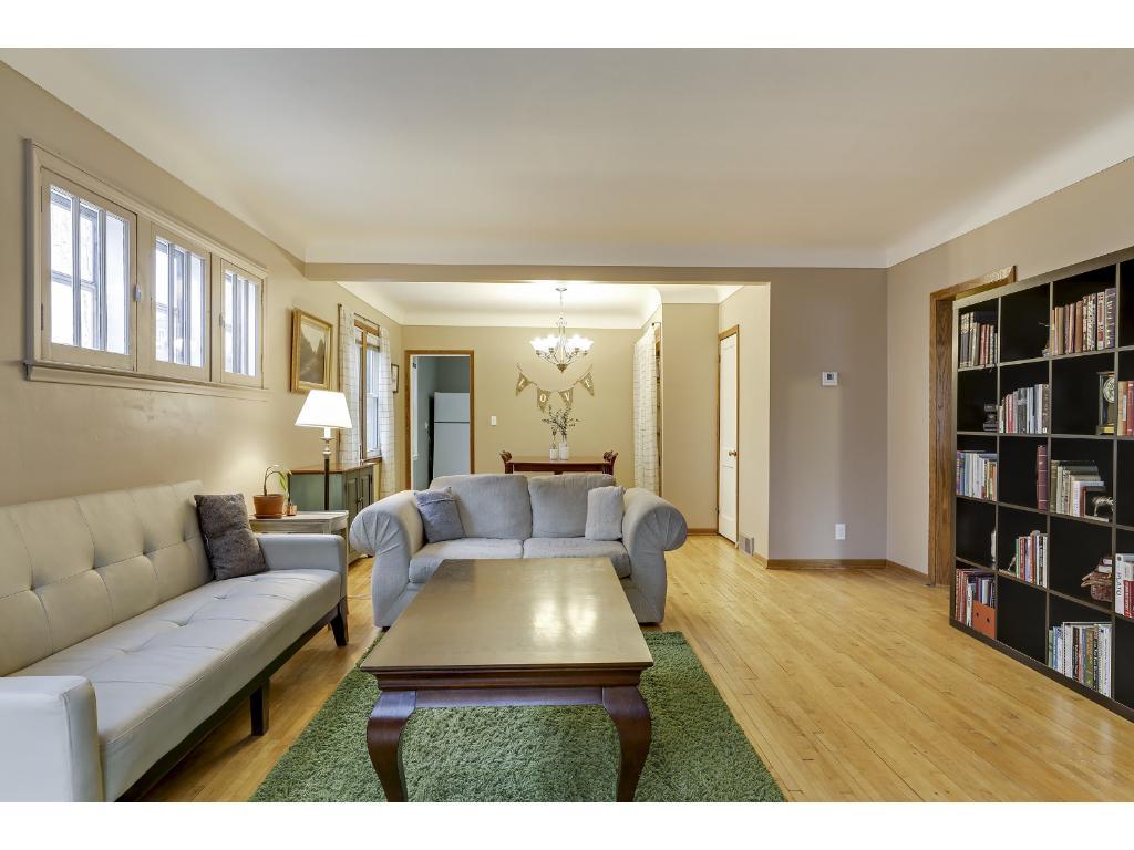 Great up/down Duplex just blocks from Lake Harriet and many stores! 2 bedroom main level & 2 bedroom up. Large open living rooms in both units. Hardwood floors throughout & ceramic tile in bathrooms. Separate entry, utilities & laundry for upper and lower units. Ample Storage. Lower level is plumbed for 3 bath, and could be used as a shop, storage or finished as a family room. Charming front patio. Large 2.5 garage with private drive and spacious backyard. Near 50th & France, lakes & parks.