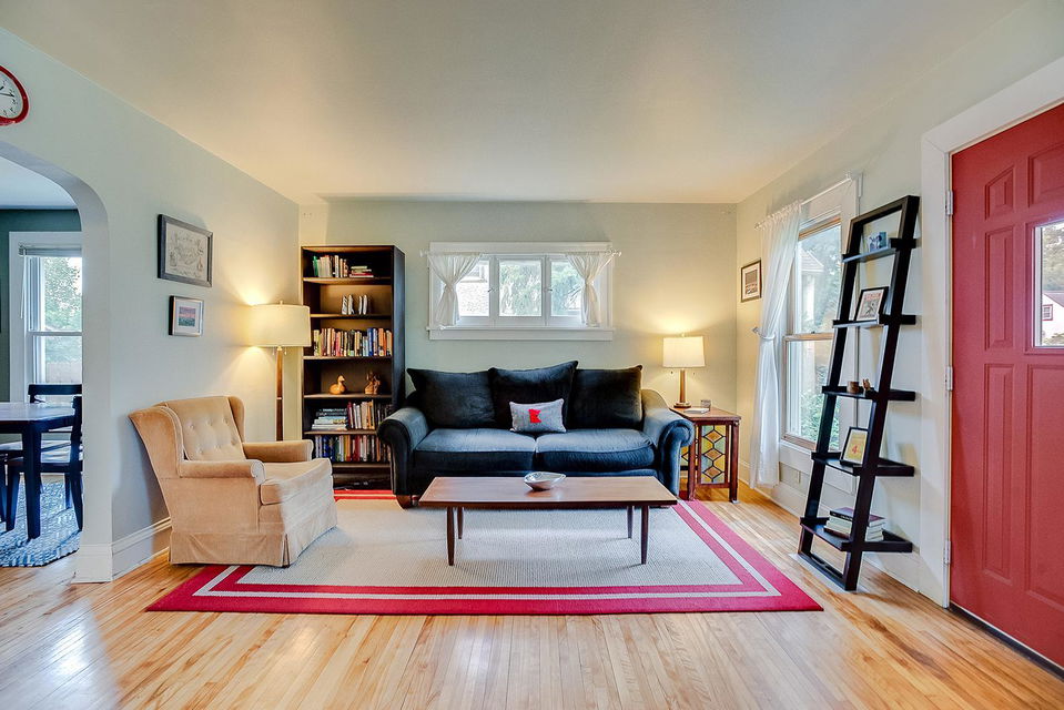 Super charming Turn-Key 3 bed, /2+ bath two story with detached 2 car garage! Large living room with new main floor 1/2 bath, formal dining, and gorgeous hardwood floors! Renovated spacious kitchen offers stainless steel appliances, granite, pantry, and newer cabinetry and flooring. Wired for a disposal. Main floor bedroom too! Two good sized bedrooms and newer full ceramic bath upstairs, walk-in closet, and hardwood floors! Plenty of storage and separate laundry plus working 1/4 bath in unfinished basement! New furnace and A/C! Large deck! Gardens are making the bees and butterflies happy! Near Minnehaha Falls, LRT and LK Nokomis! Truly a gem!