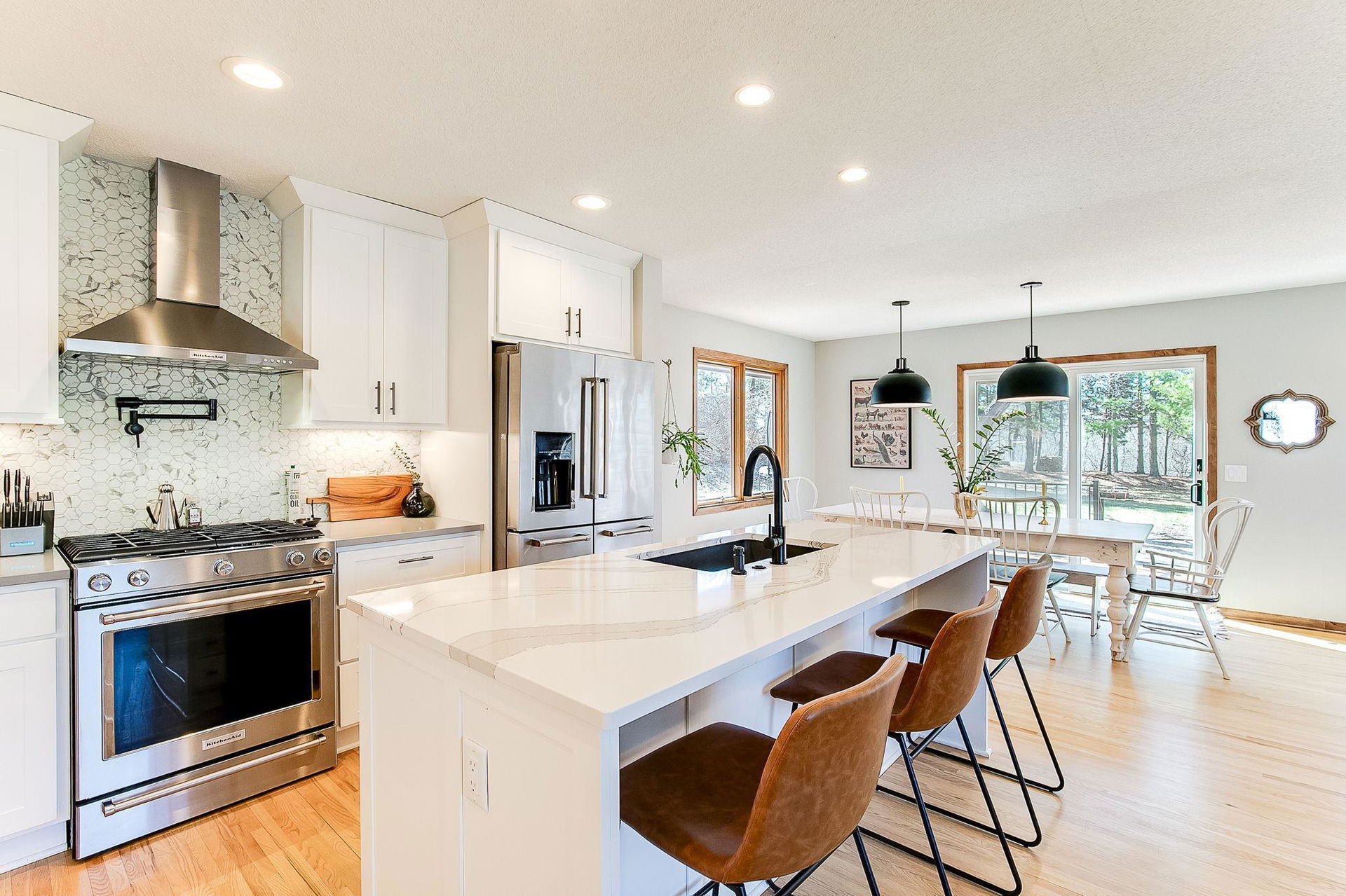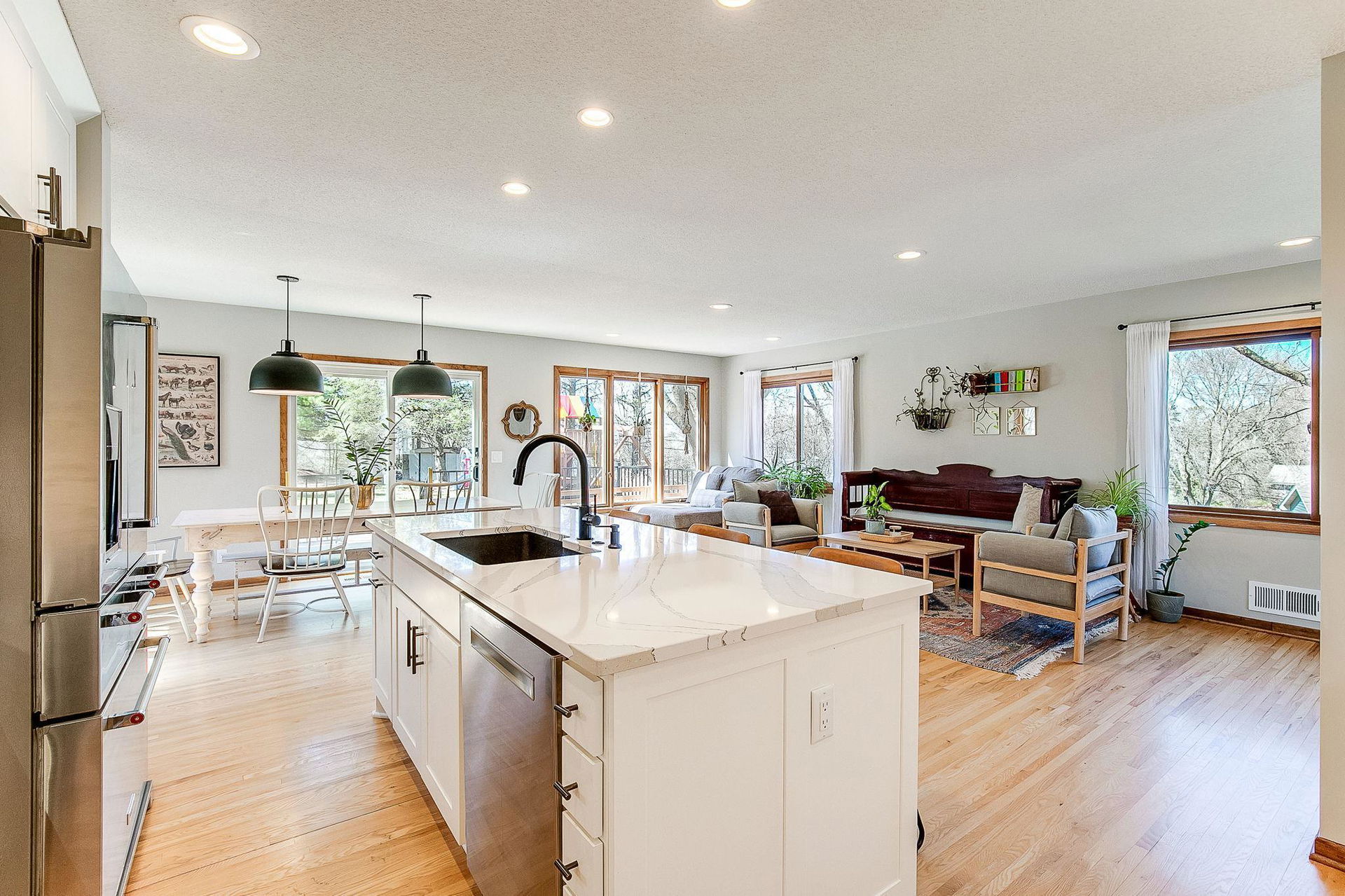 Wind your way down this picturesque road that leads you to a home you’re really going to love. If our sellers could transport this gem and take it with them, they sure would! This turnkey 4-bedroom, 2-bath will really surprise you! Expansive sun-filled open floor plan with large living room and fireplace, great room with dining and family room open to the most amazing gourmet kitchen. Huge center island, quality-built cabinets – and plenty of them! – pullouts, soft-close, pantry, pot filler, and stainless-steel appliances. Awesome hangout/conversation/entertaining space. Convenient access from the kitchen/family room to large deck, patio, and wooded private flat backyard. It’s so beautiful! Towering pines and tree top views of the neighborhood! 3 bedrooms and full bathroom on main. The lower level offers a family room with fireplace, fourth bedroom, and three quarters bath, plus access to attached 2 car garage. So much to tell! Awesome schools and location, too!