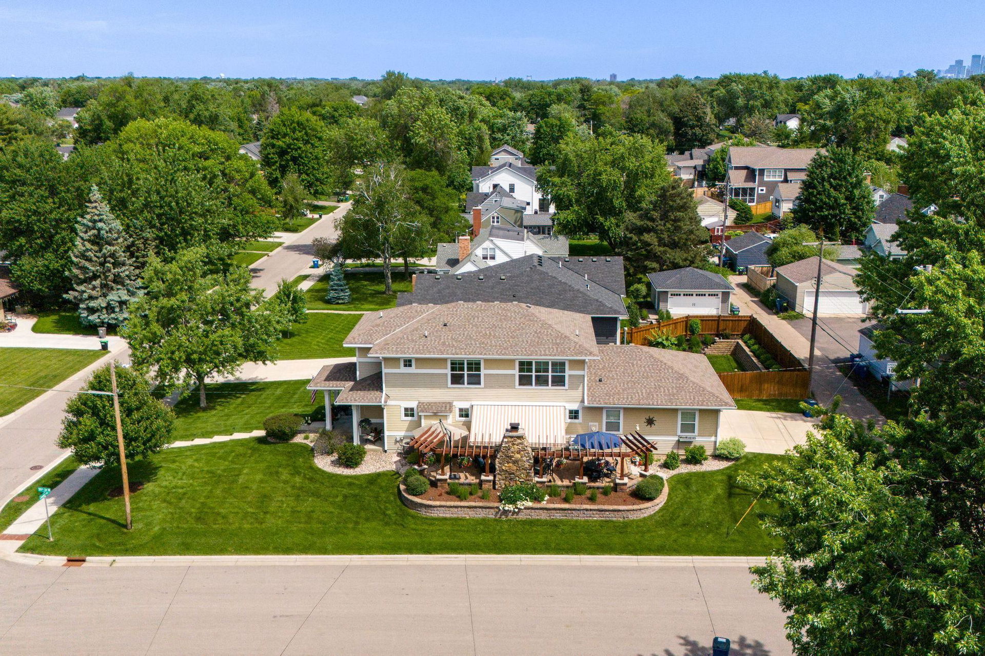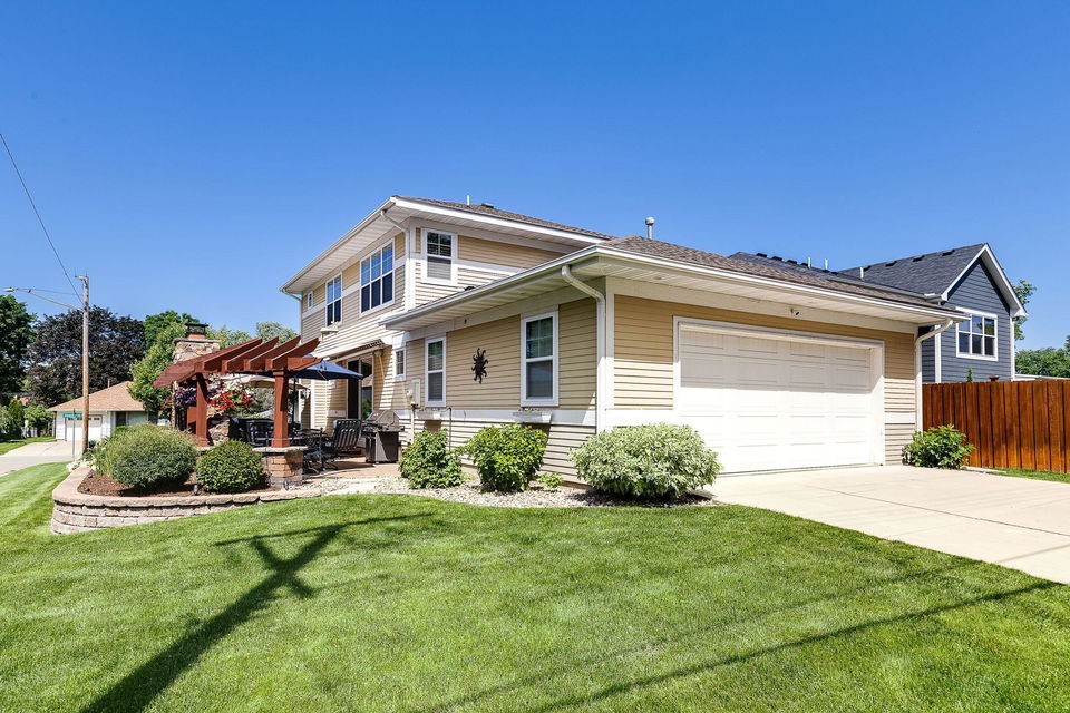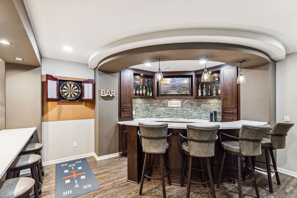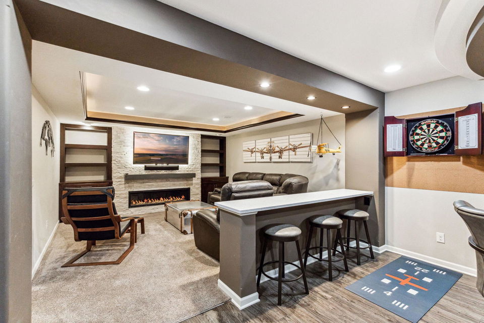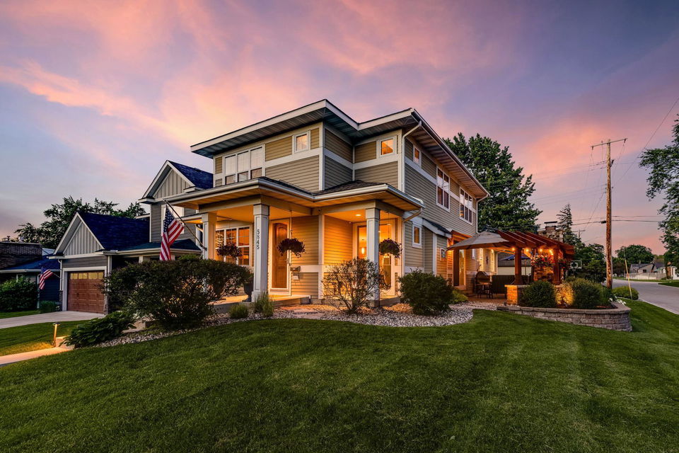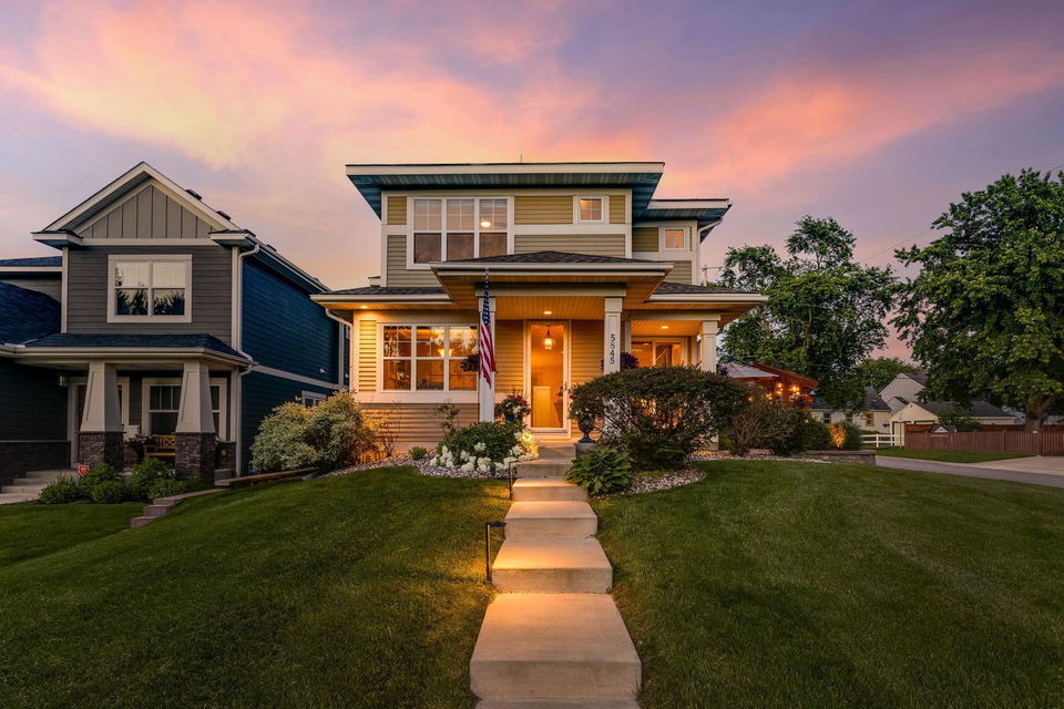 Architecturally inspired 2012 two story with a commanding and inviting presence! The outdoor entertaining space has a seamless flow to the indoors. Per zoning regulations, a fence can be installed around a designated section of the back/side yard, making it perfect for a secure private area. Custom full sized outdoor stone wood burning fireplace, paver patio, sound system, and lighting surrounded by beautifully landscaped gardens. Also included, to provide shade on sunny days, is an Eastern Lateral Sunbrella! Thoughtfully designed with the finest finishes and varying lifestyles in mind. Open concept living on main offers an inviting entry which draws you in…beautiful hardwoods, 9’ ceilings, private office space, and banked with windows! Naturally sunlit great room with custom gas fireplace with newly handcrafted mantle and 75” Samsung Frame TV above! Generous dining area open to living room and gourmet kitchen! Gorgeous Knotty Alder cabinets, Cambria Quartz island and countertops with subway tiled backsplash. All part of the 2023 renovations. Convenient mudroom and ½ bath just off the 2 car heated and insulated attached garage. Upper level offers a spacious owners suite with separate soaking tub, shower, and large custom walk-in closets. Two additional bedrooms and full bath upper level. $120k recent addition to lower level offers 1,000+ square feet of awesome space: 4th bedroom and ¾ bath, custom rounded bar with wine fridge, dishwasher, wet bar sink, Cambria Quartz and custom cabinetry. Super sweet gathering area with fireplace, tray ceiling, mounted TV, and uplighting! Amazing Edina location! Your next chapter awaits here!