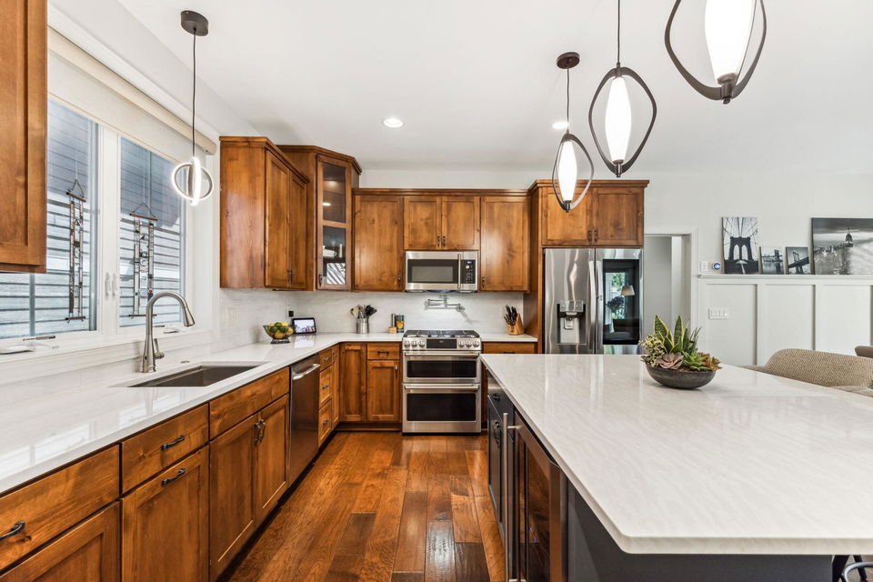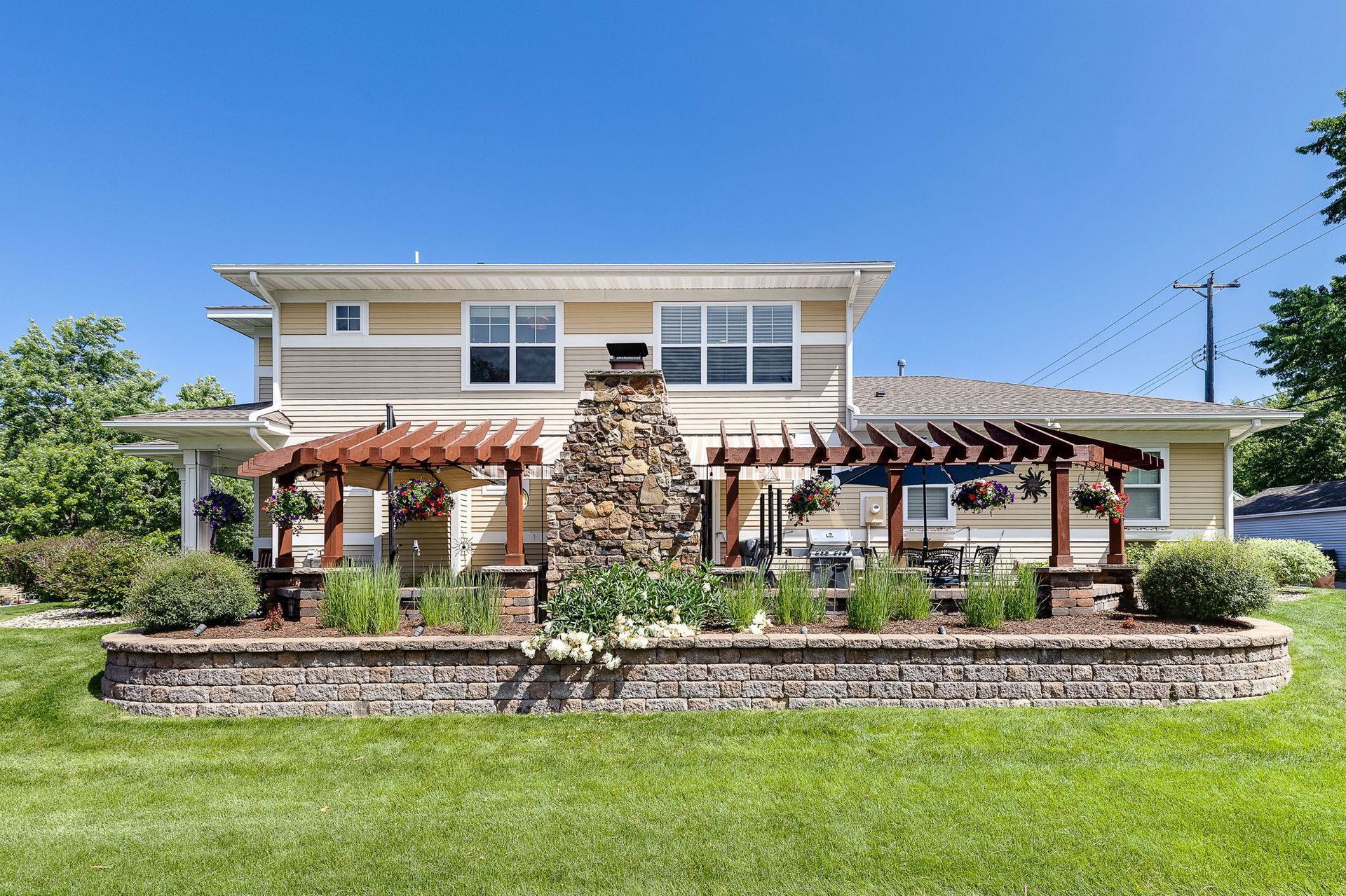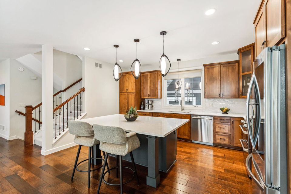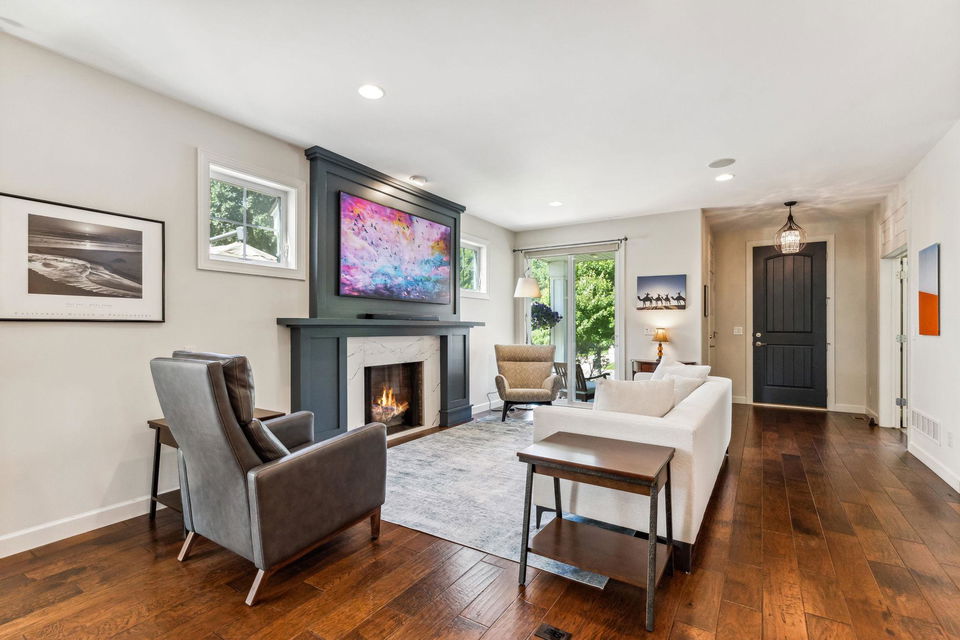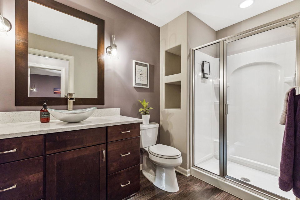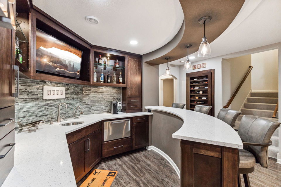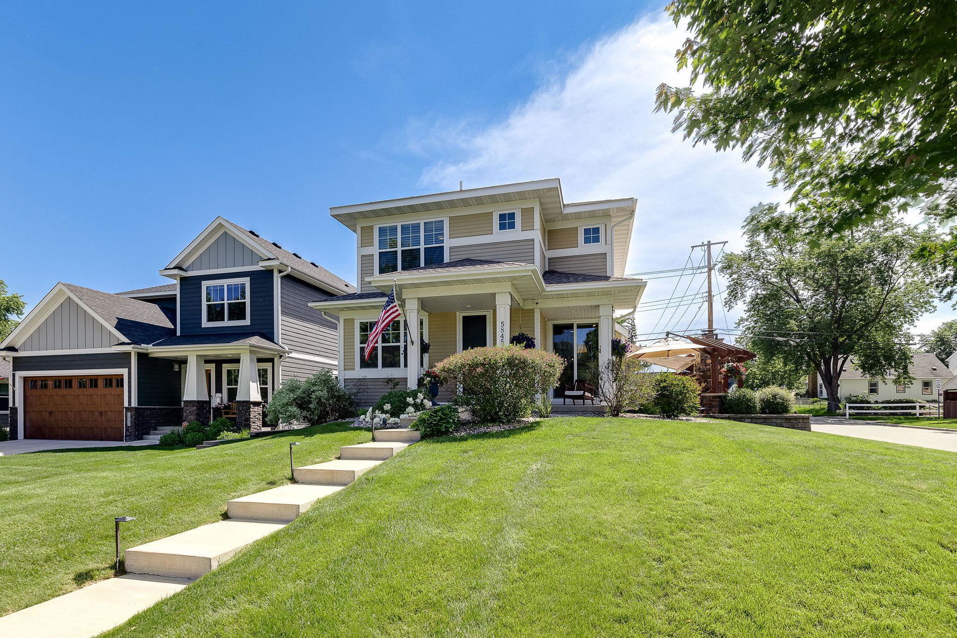 Architecturally inspired 2012 two story with a commanding and inviting presence! The outdoor entertaining space has a seamless flow to the indoors. Per zoning regulations, a fence can be installed around a designated section of the back/side yard, making it perfect for a secure private area. Custom full sized outdoor stone wood burning fireplace, paver patio, sound system, and lighting surrounded by beautifully landscaped gardens. Also included, to provide shade on sunny days, is an Eastern Lateral Sunbrella! Thoughtfully designed with the finest finishes and varying lifestyles in mind. Open concept living on main offers an inviting entry which draws you in…beautiful hardwoods, 9’ ceilings, private office space, and banked with windows! Naturally sunlit great room with custom gas fireplace with newly handcrafted mantle and 75” Samsung Frame TV above! Generous dining area open to living room and gourmet kitchen! Gorgeous Knotty Alder cabinets, Cambria Quartz island and countertops with subway tiled backsplash. All part of the 2023 renovations. Convenient mudroom and ½ bath just off the 2 car heated and insulated attached garage. Upper level offers a spacious owners suite with separate soaking tub, shower, and large custom walk-in closets. Two additional bedrooms and full bath upper level. $120k recent addition to lower level offers 1,000+ square feet of awesome space: 4th bedroom and ¾ bath, custom rounded bar with wine fridge, dishwasher, wet bar sink, Cambria Quartz and custom cabinetry. Super sweet gathering area with fireplace, tray ceiling, mounted TV, and uplighting! Amazing Edina location! Your next chapter awaits here!