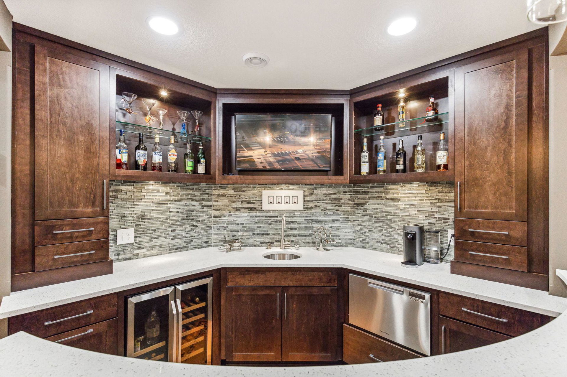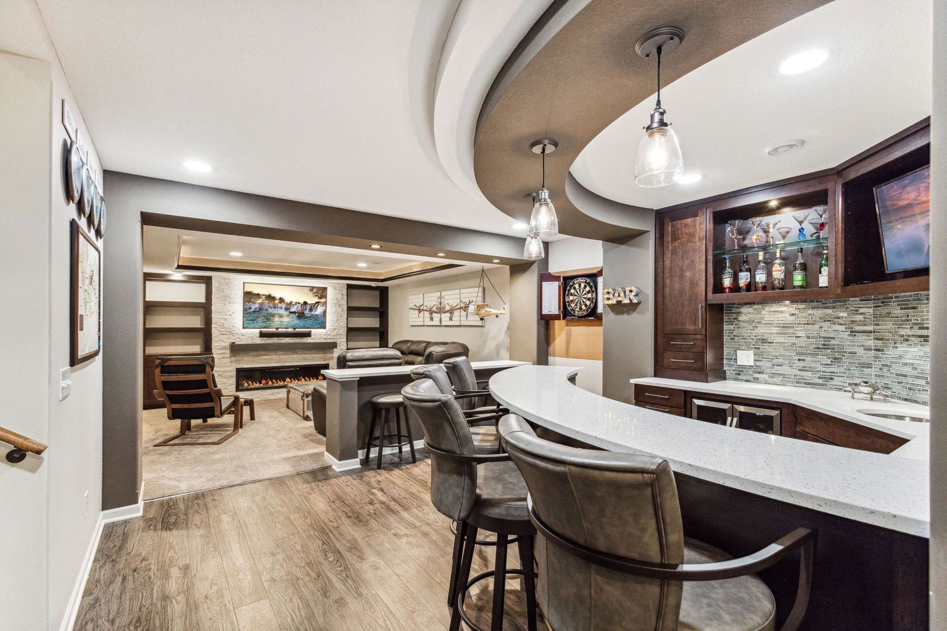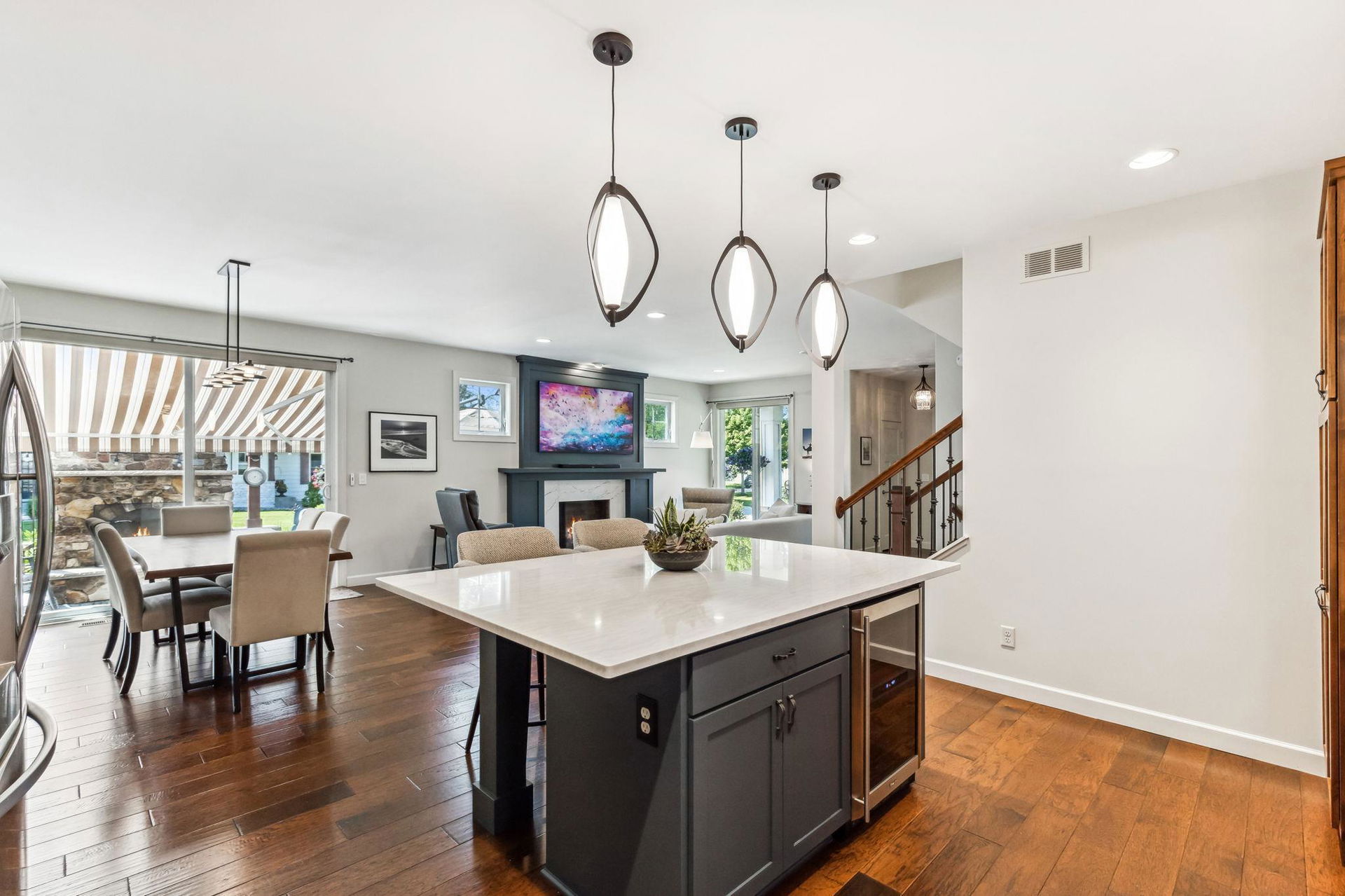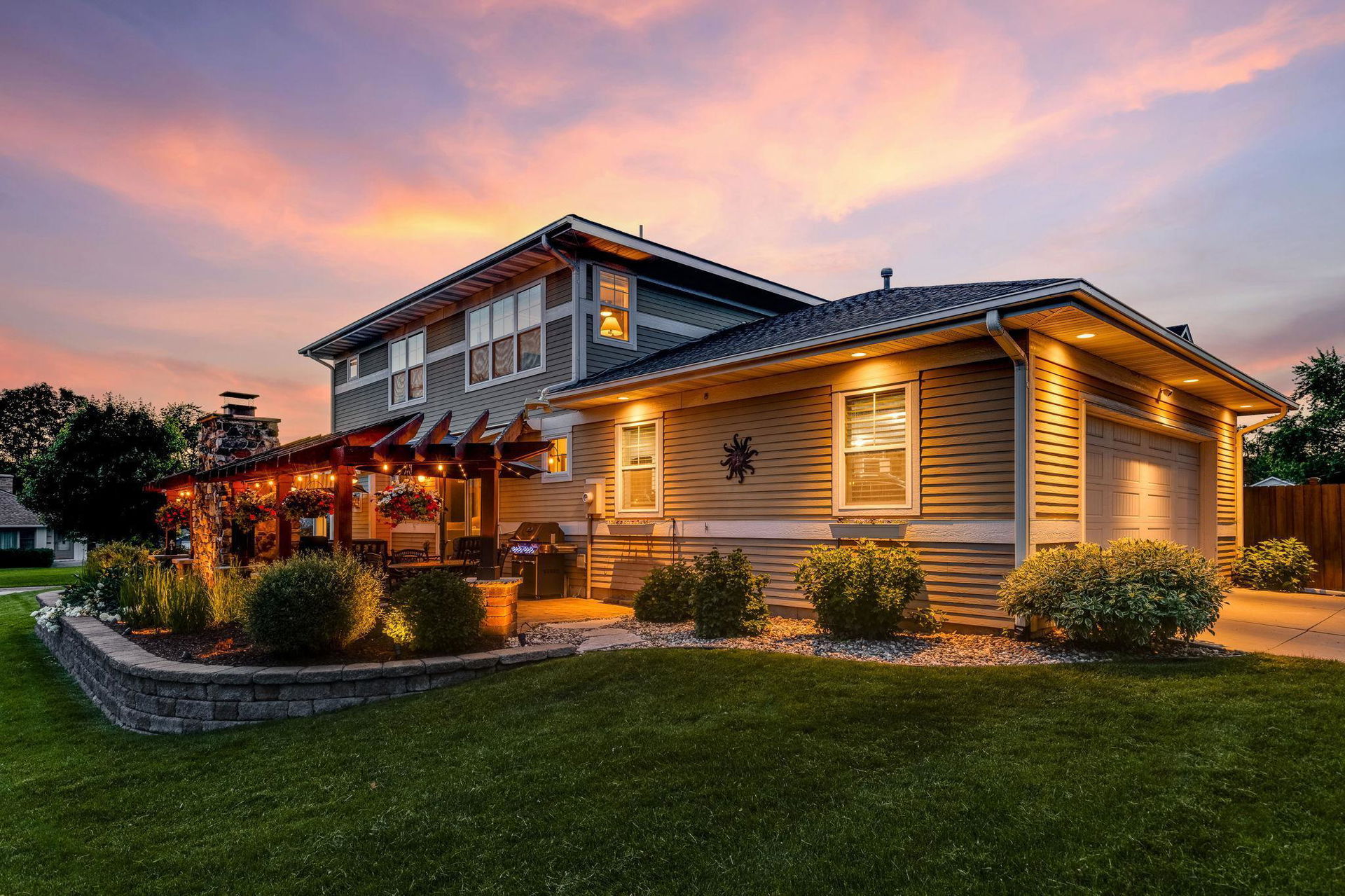 Architecturally inspired 2012 two story with a commanding and inviting presence! The outdoor entertaining space has a seamless flow to the indoors. Per zoning regulations, a fence can be installed around a designated section of the back/side yard, making it perfect for a secure private area. Custom full sized outdoor stone wood burning fireplace, paver patio, sound system, and lighting surrounded by beautifully landscaped gardens. Also included, to provide shade on sunny days, is an Eastern Lateral Sunbrella! Thoughtfully designed with the finest finishes and varying lifestyles in mind. Open concept living on main offers an inviting entry which draws you in…beautiful hardwoods, 9’ ceilings, private office space, and banked with windows! Naturally sunlit great room with custom gas fireplace with newly handcrafted mantle and 75” Samsung Frame TV above! Generous dining area open to living room and gourmet kitchen! Gorgeous Knotty Alder cabinets, Cambria Quartz island and countertops with subway tiled backsplash. All part of the 2023 renovations. Convenient mudroom and ½ bath just off the 2 car heated and insulated attached garage. Upper level offers a spacious owners suite with separate soaking tub, shower, and large custom walk-in closets. Two additional bedrooms and full bath upper level. $120k recent addition to lower level offers 1,000+ square feet of awesome space: 4th bedroom and ¾ bath, custom rounded bar with wine fridge, dishwasher, wet bar sink, Cambria Quartz and custom cabinetry. Super sweet gathering area with fireplace, tray ceiling, mounted TV, and uplighting! Amazing Edina location! Your next chapter awaits here!