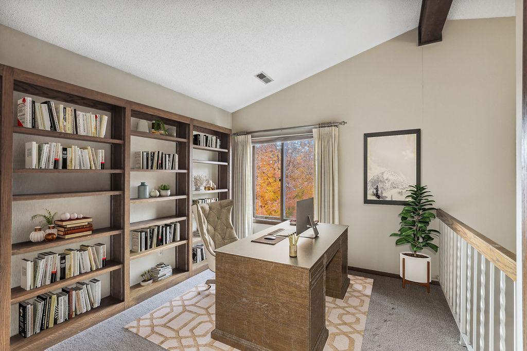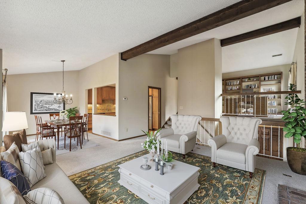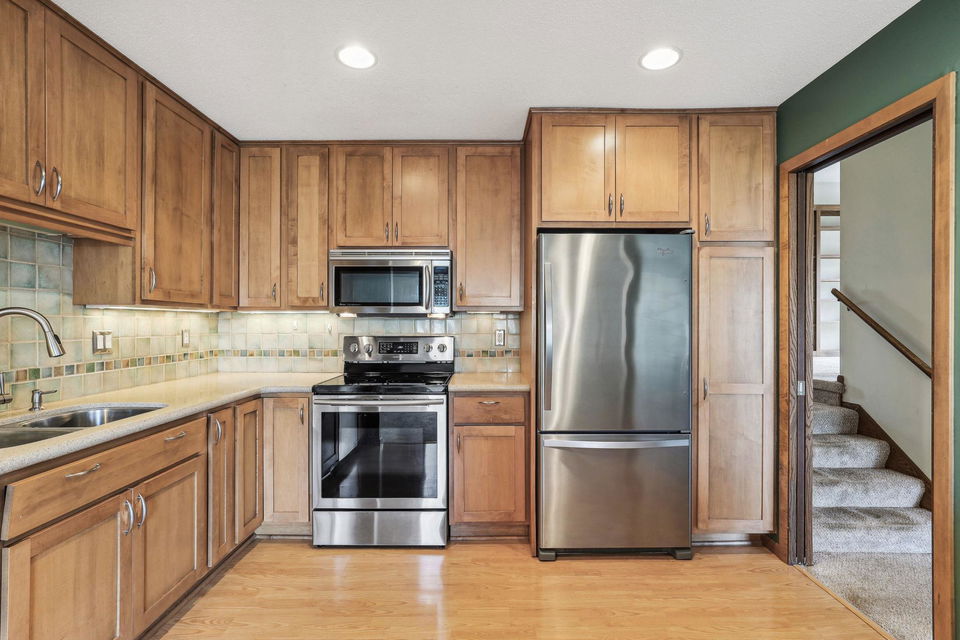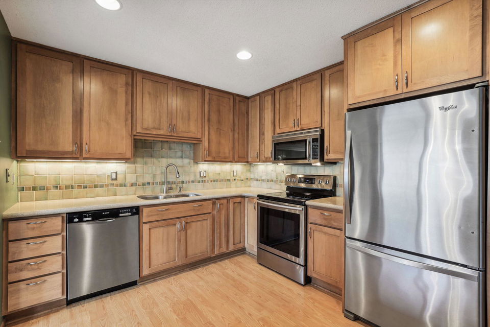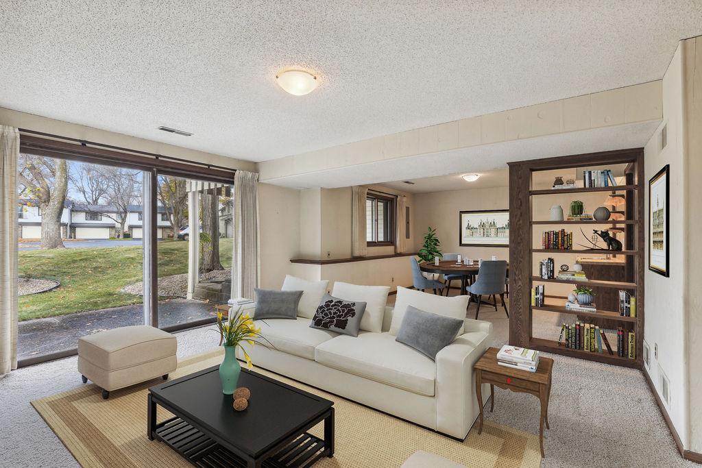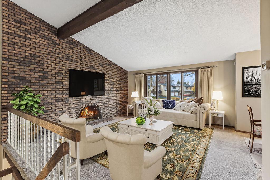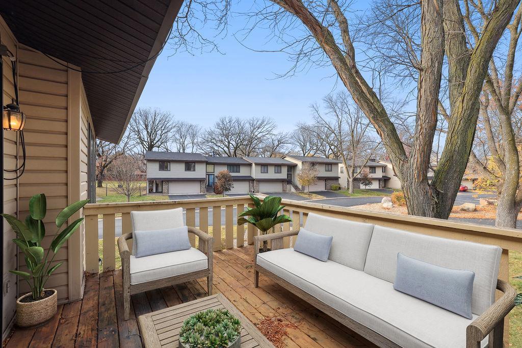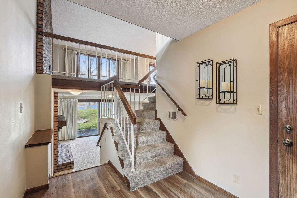 Experience the charm of Bloomington living in this stunning end unit! This home boasts a spacious entry foyer with new wood plank flooring, 2 bedrooms, 3 bathrooms, and a 2-car garage with extra storage. The main level features a beautiful brick wall with a gas fireplace, while the lower level offers a second gas fireplace, perfect for those chilly Minnesota days. A unique loft overlooks the main level living room, providing endless shelves for an office or library. The lower level includes a family room, a game room area with a wet bar, and a walk-out to the back patio. Enjoy numerous updates throughout, including 2 remodeled bathrooms, 6-panel oak doors, a new entryway door, a new garage door, a water heater (2022), a washer (2022), a roof (2016), new carpet in the living room, dining room, stairs, and hallway, new wood/vinyl plank flooring in the kitchen, a power-washed and re-stained deck (2023), and newer appliances. This wonderful community offers fantastic amenities such as a clubhouse, pool, and tennis/pickleball courts. Conveniently located near Hyland Greens Golf Course, Normandale Lake, and the trails of Hyland Park Reserve, as well as shopping, restaurants, schools, and highways.