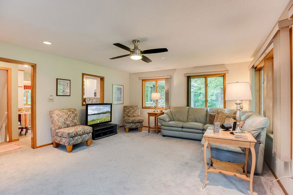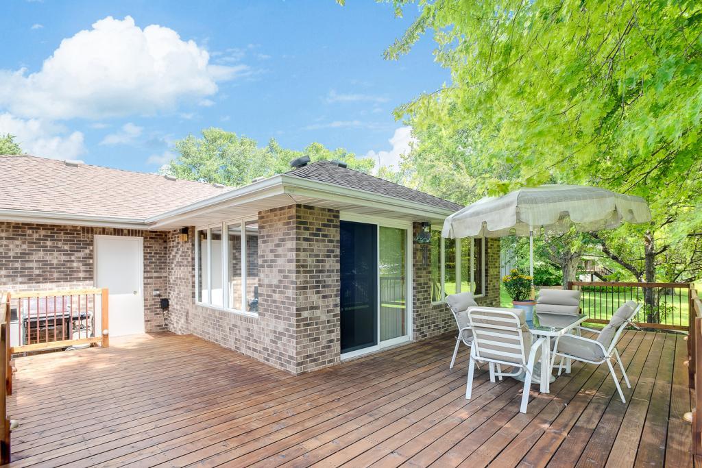 Move right into this thoughtfully cared for all brick one story set on a beautiful large lot on quiet residential winding street! Super location & convenient to Hampshire Park, shopping & schools. Gorgeous hardwood floors, spacious main floor family room w/access to awesome deck! 3 BR’s on main & updated ceramic bath w/jet tub! Roomy and functional kitchen off family room & 2 car attached garage enters conveniently at kitchen. 2 lower level family rooms, owners or guest suite with private 3/4 bath and walk-in closet! Large laundry with abundant storage. Many updates throughout plus a virtually maintenance free exterior! You’ll love it!