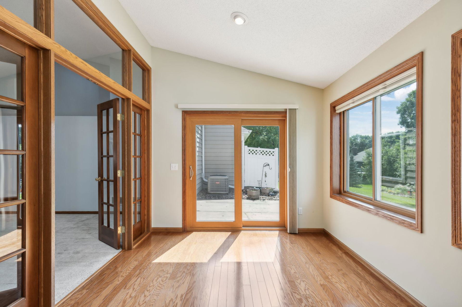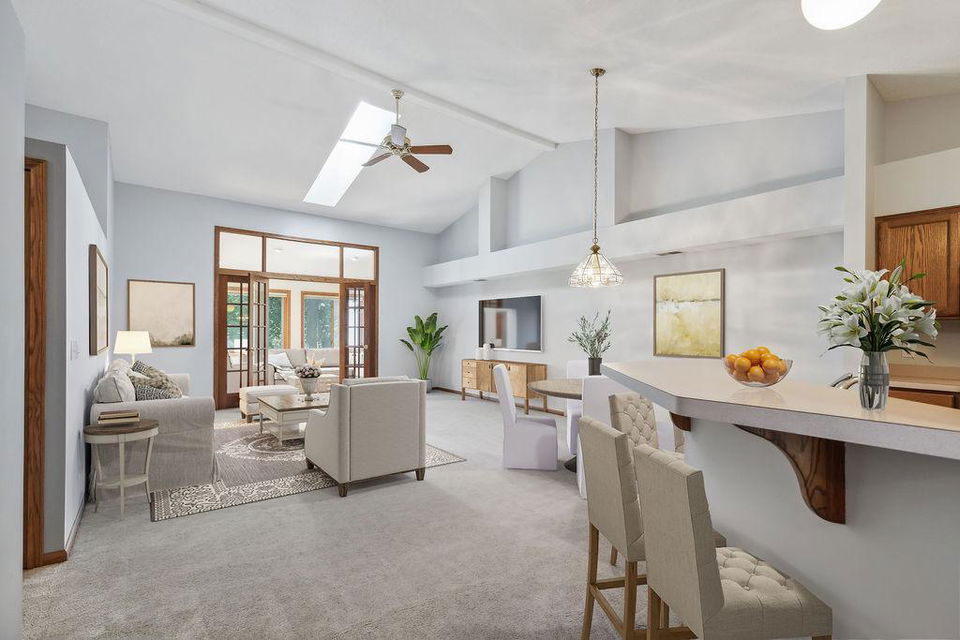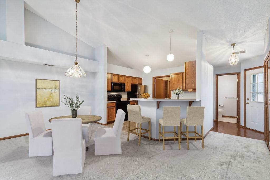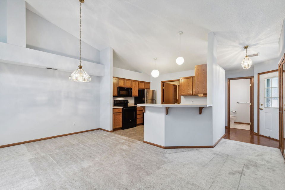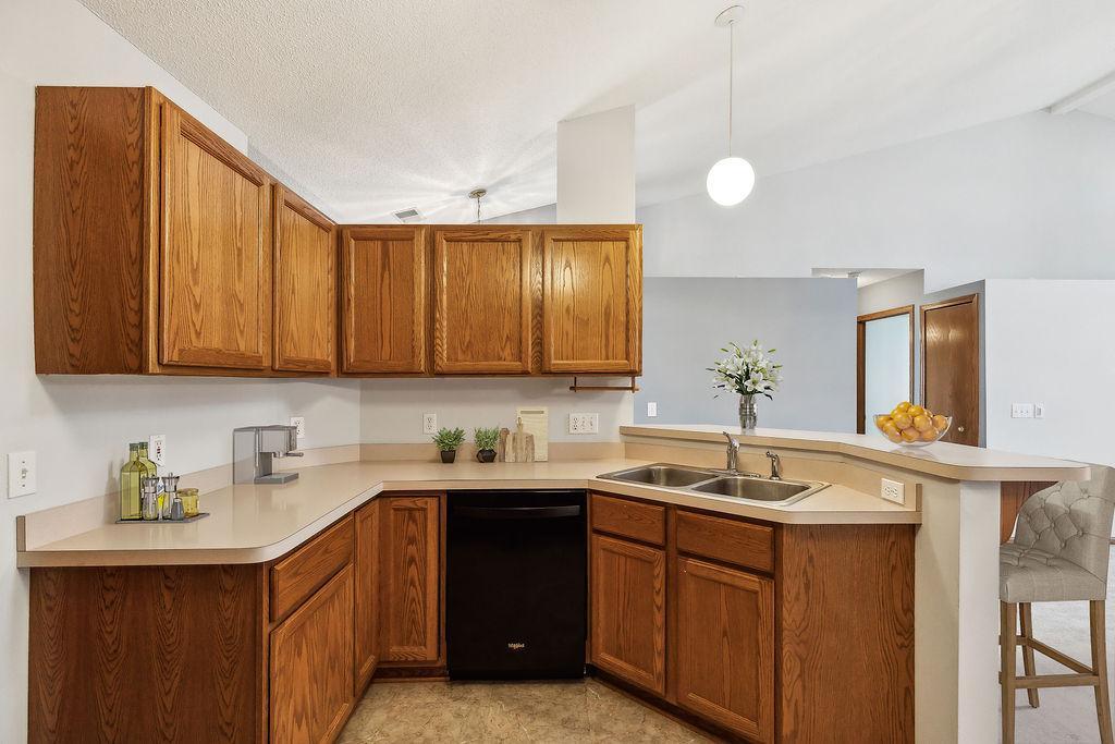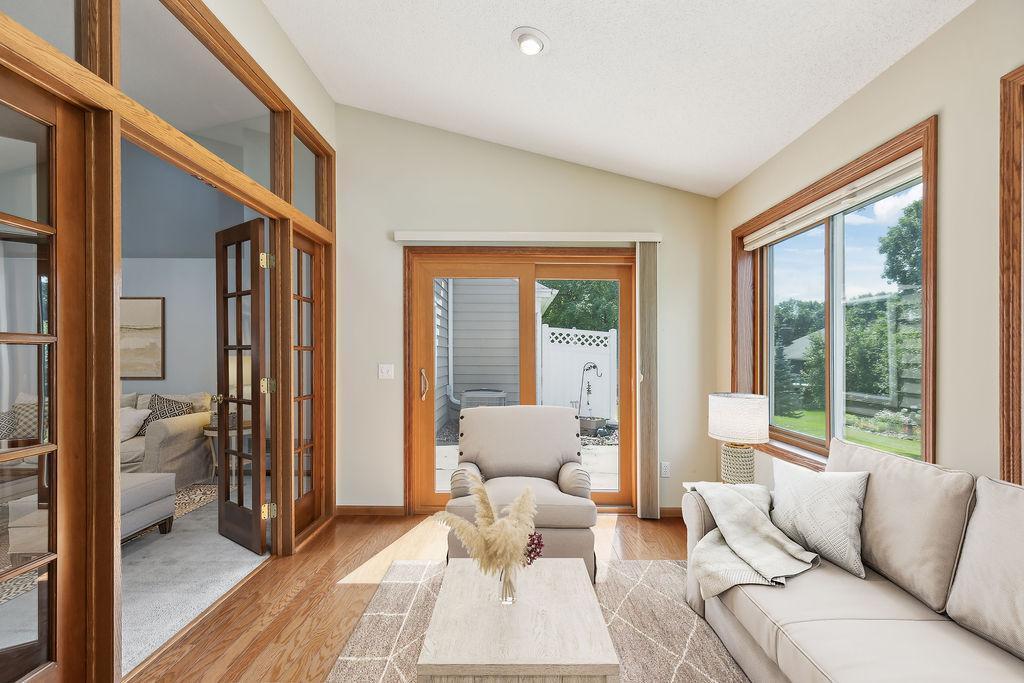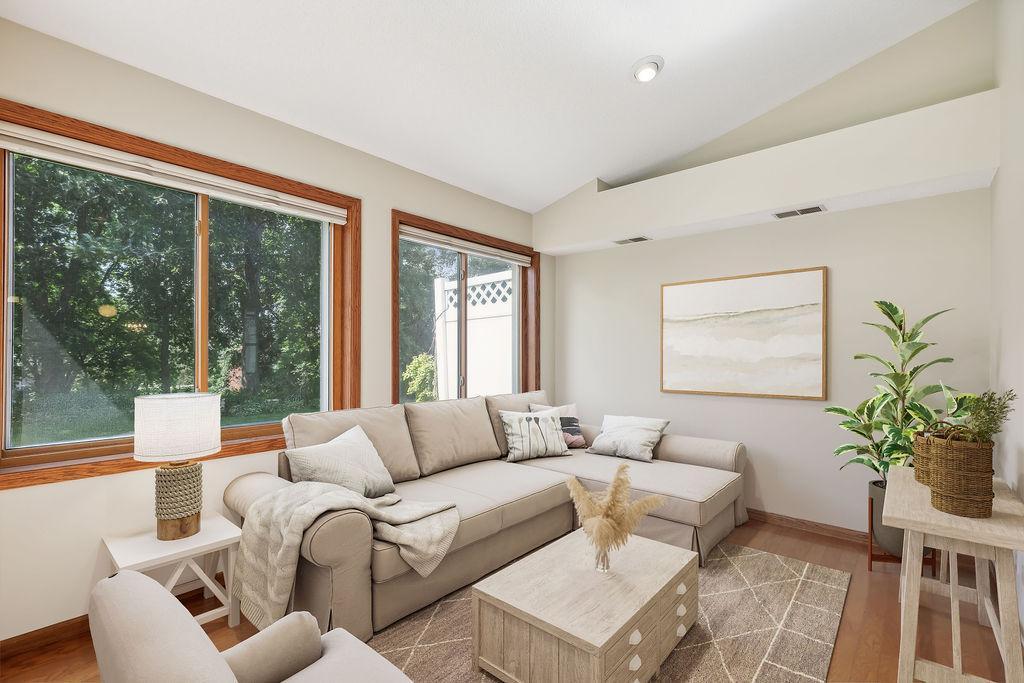 One level living at its finest! Open concept, vaulted ceilings, amazing large kitchen, move right in!! A quiet spot awaits with green space and private patio and planters for your own herbs! Sun-filled 4 season sunroom off back with hardwood floors! Main floor laundry and ½ bath…super convenient! 2 bedrooms and full bath on main! Separate dining, large living room, natural woodwork, and inviting entry for MN hellos and goodbyes! Kitchen has loads of storage and counterspace…great space! Super Woodbury locale and close to shops, restaurants, and parks/schools!
