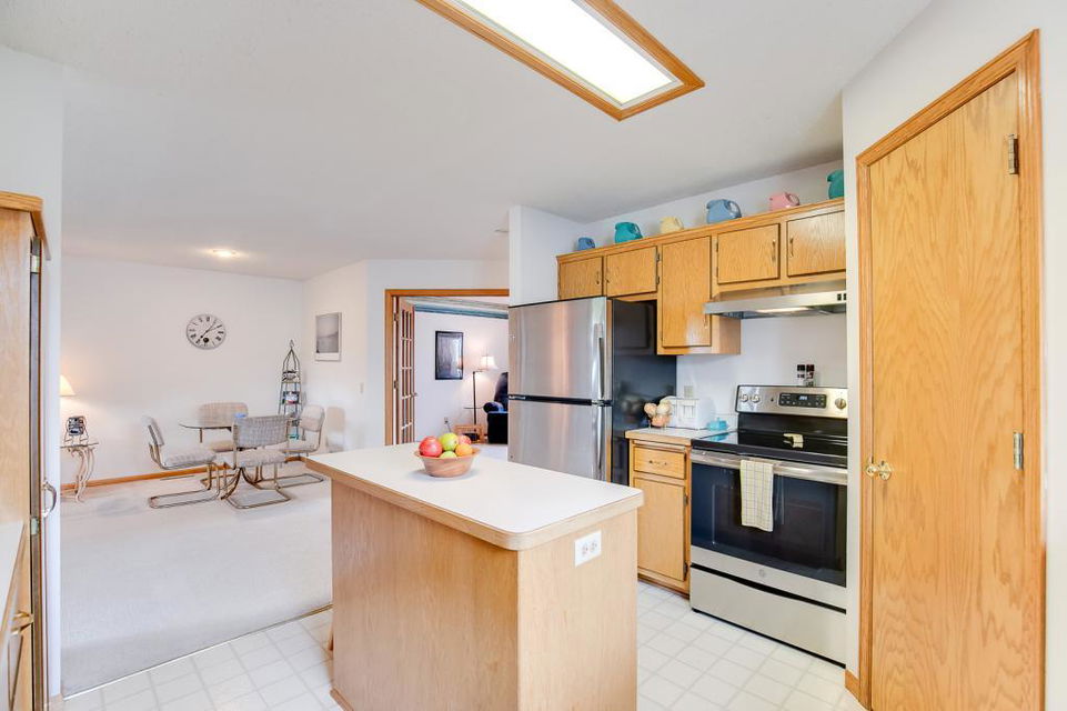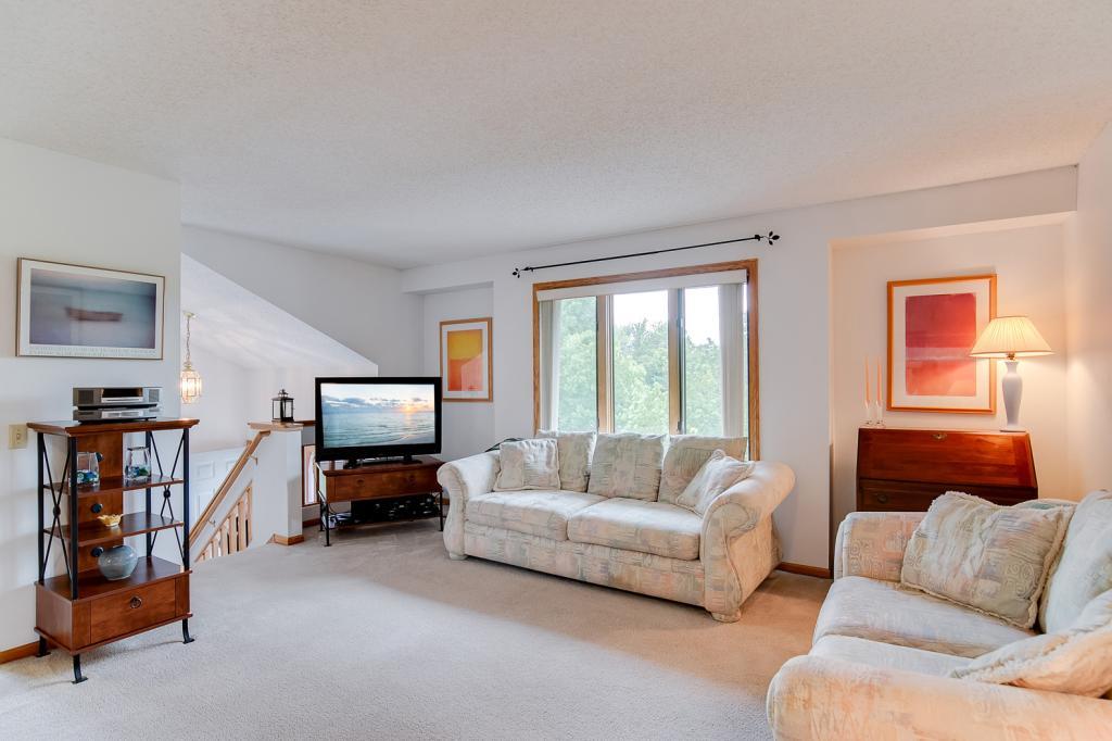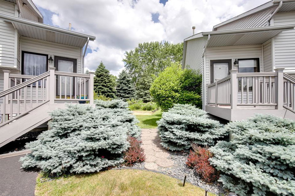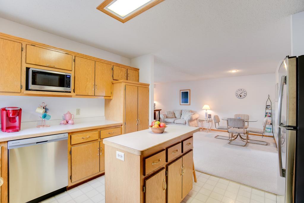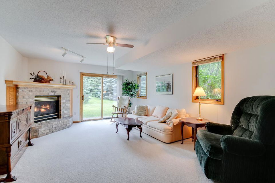 Wonderful end unit offers views of greenspaces, mature trees, and gardens from every room! Natural sunlight welcomes you throughout. Open floor plan, vaulted foyer, and large living/dining off kitchen. Fabulous kitchen with new stainless steel appliances, center island, walk-in pantry and cabinet pantry, abundant counterspace, oak cabinetry, and garden views! French doors to 3rd bedroom or could be a den/office. Large owner’s suite with 2 walk-in closets, private atrium door to deck overlooking towering pines, and a walk-through full bath. Spacious lower level offers a ¾ bath, bedroom, and walk-out family room with brick fireplace! 1 car attached garage and ample private parking! Low dues, individually owned, and you own the land! Super location!
