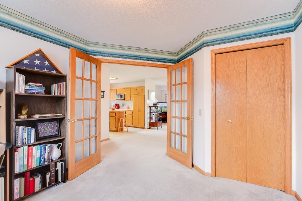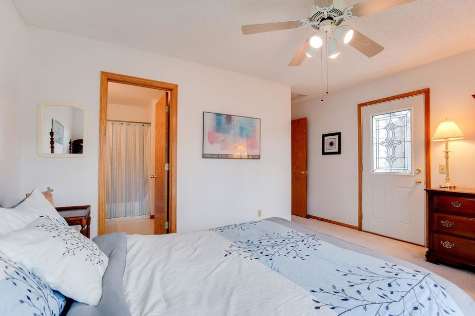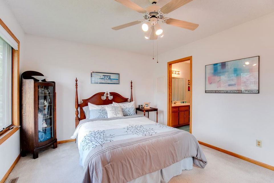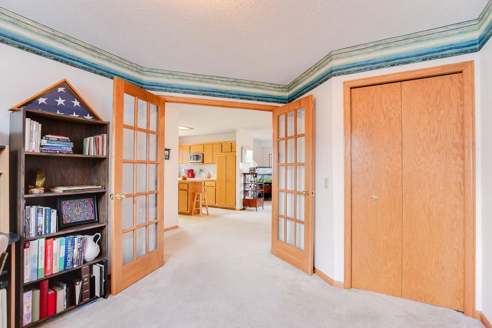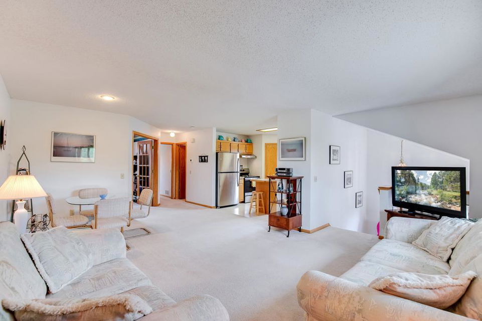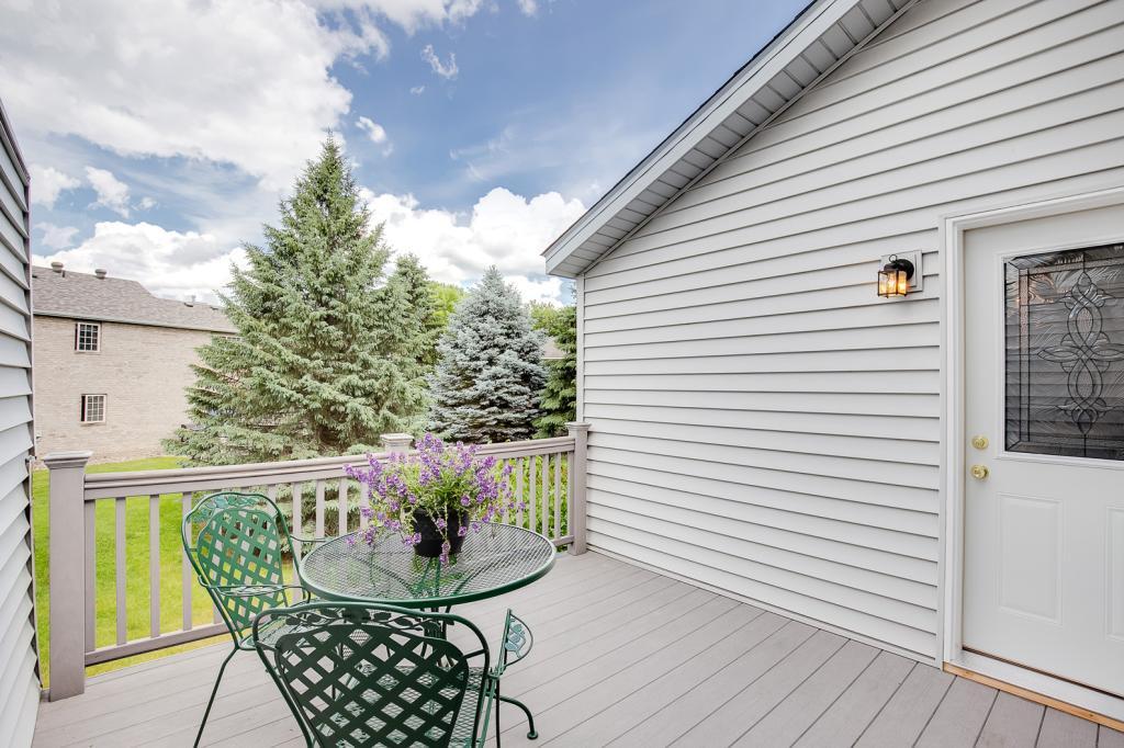 Wonderful end unit offers views of greenspaces, mature trees, and gardens from every room! Natural sunlight welcomes you throughout. Open floor plan, vaulted foyer, and large living/dining off kitchen. Fabulous kitchen with new stainless steel appliances, center island, walk-in pantry and cabinet pantry, abundant counterspace, oak cabinetry, and garden views! French doors to 3rd bedroom or could be a den/office. Large owner’s suite with 2 walk-in closets, private atrium door to deck overlooking towering pines, and a walk-through full bath. Spacious lower level offers a ¾ bath, bedroom, and walk-out family room with brick fireplace! 1 car attached garage and ample private parking! Low dues, individually owned, and you own the land! Super location!