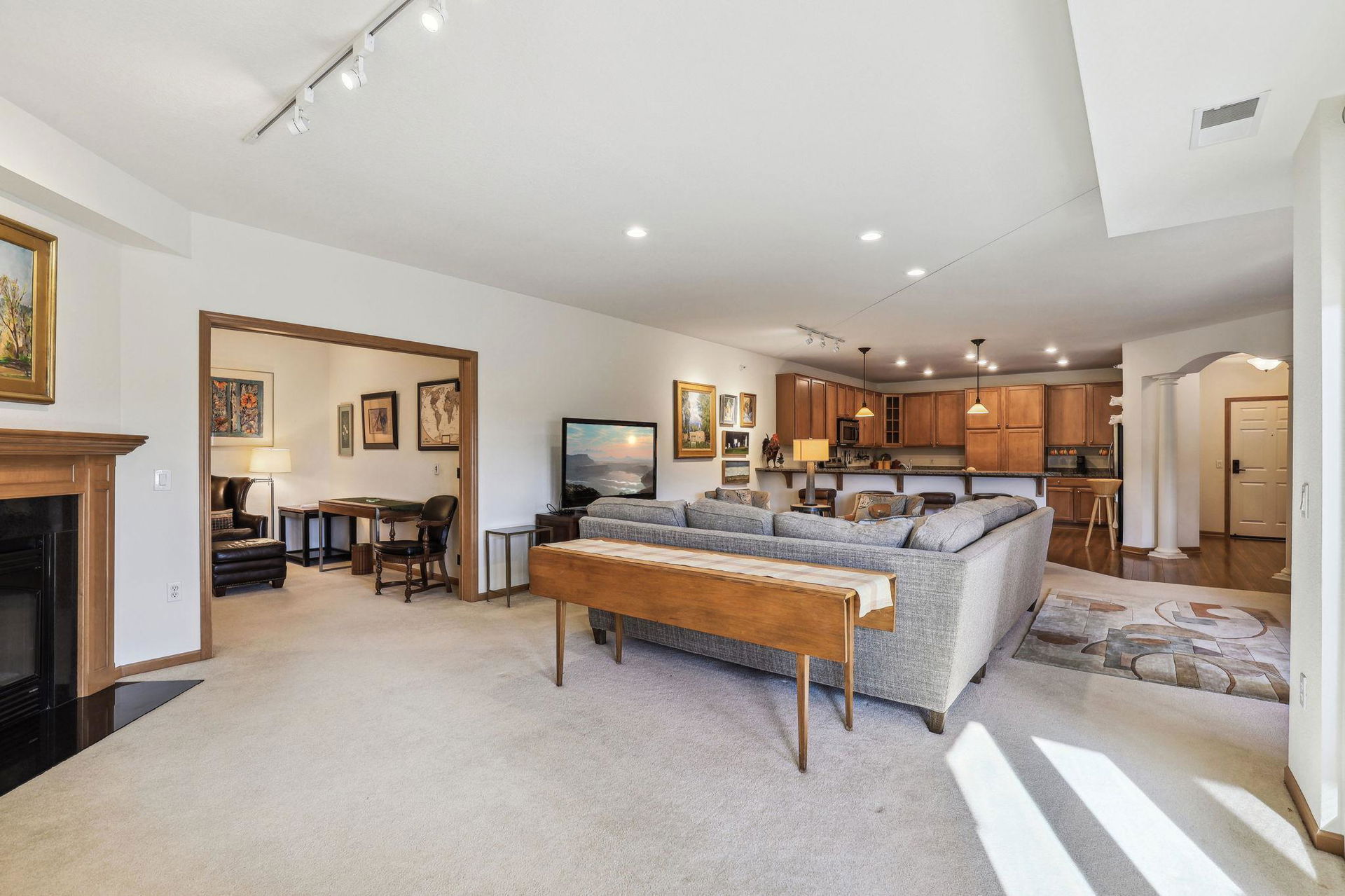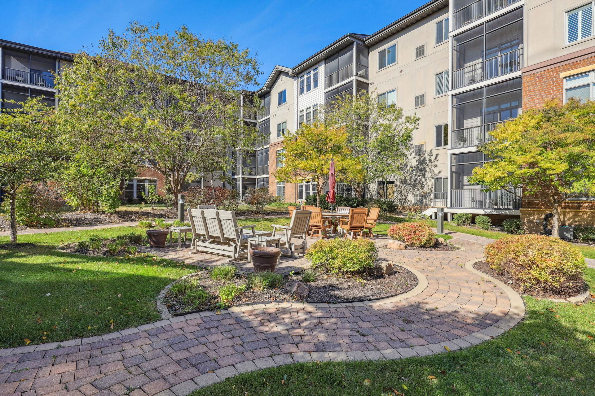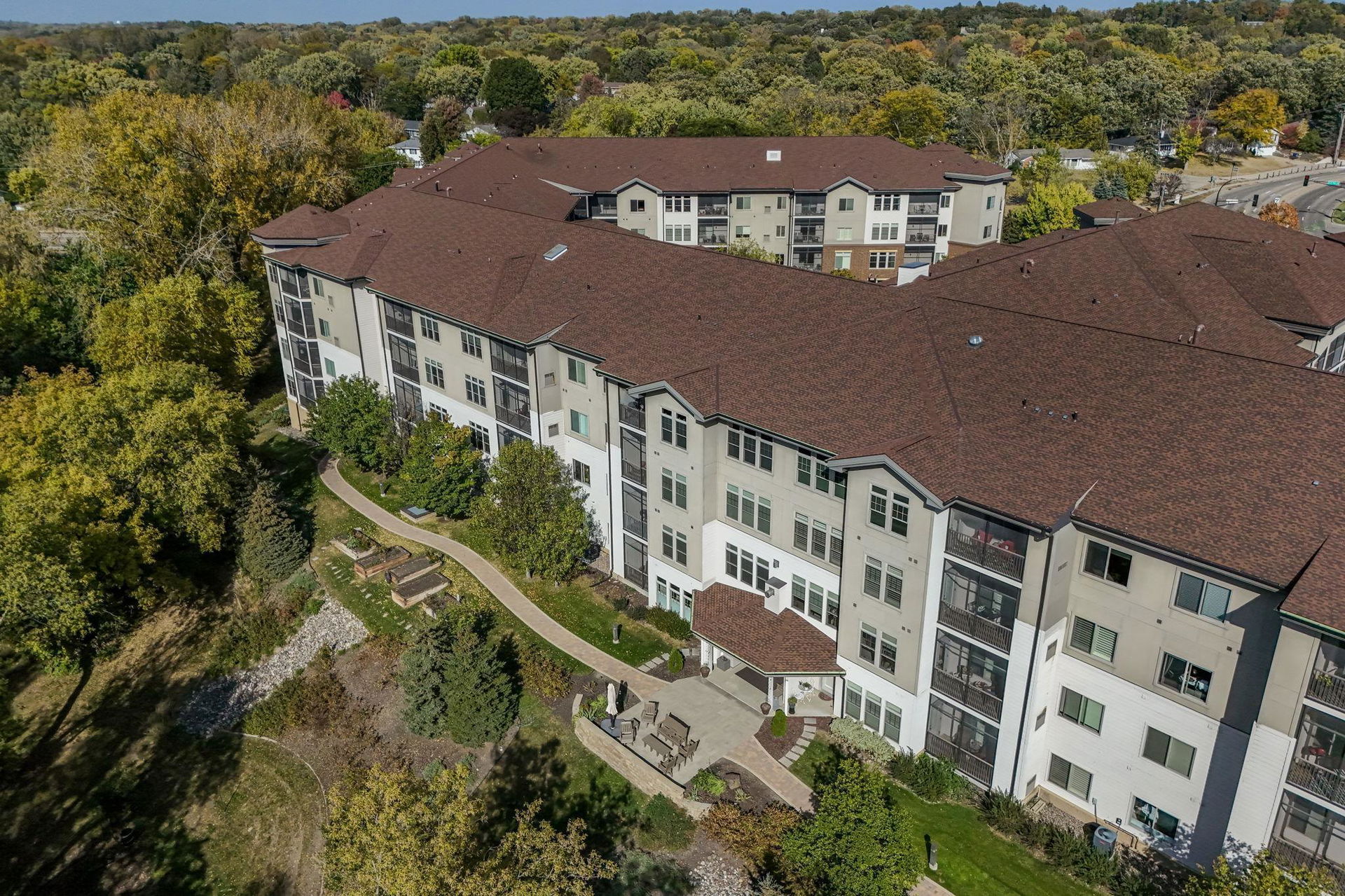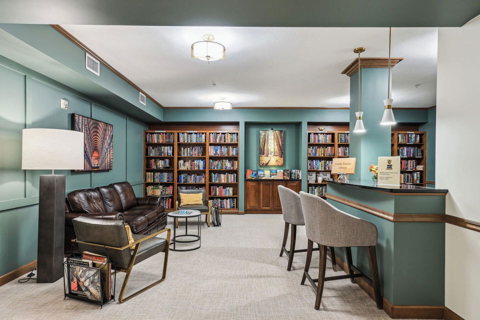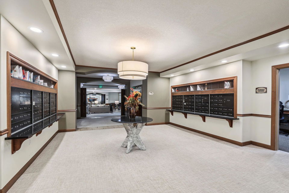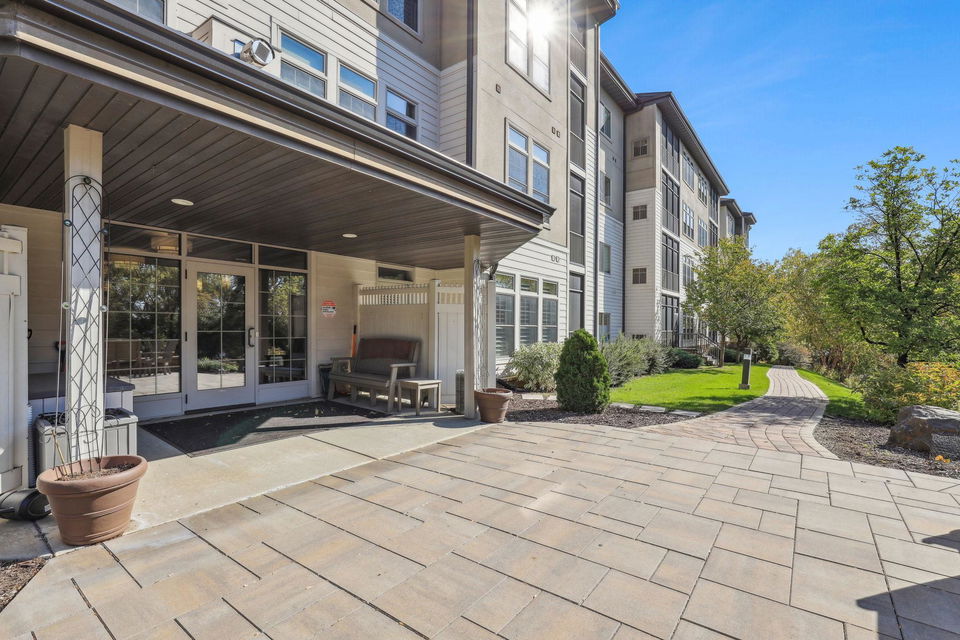 Creekside in Edina! Sought after 55+ community with first class resort style living! 4th floor, treetop, and courtyard views all year! Relax in your spacious screen-in porch! Inviting open floor plan offers easy flow, spaces with versatile uses, good conversations and entertaining. Gourmet kitchen with stainless steel appliances, pantry, granite counters, loads of cabinets, and expansive workspace, breakfast bar, and custom portable center island. Formal dining, yet casual, too. Cozy gas fireplace with marble and custom wood surround in living room. Office could be a flex place. French doors to office are storage in storage #D19. Full main floor bath and 2nd bedroom with courtyard views. Access to screened-in porch off dining and owner’s suite. Luxury owner’s ensuite offers large walk-in closet and laundry room, separate private water closet/shower combo and spacious double sink/cabinets for toiletries. Beautiful hardwoods, neutral tones, and plenty of space for art and collections. Amenities include theatre, pub, club room, guest suites, library, workshop, pool, sauna, fitness center, locker rooms, arts and crafts area, golf simulator, car wash, 360 person seating lounge and conference room with kitchen and coffee bar! Outside BBQ, trails, and 9 Mile Creek side setting!
