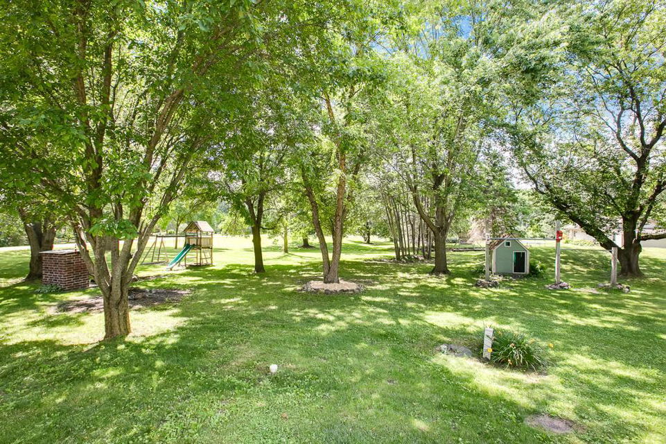 Picturesque setting awaits… .97 acre paradise w/gorgeous treed & landscaped yard, smokehouse, playset, shed, & huge deck! Spacious 3BR/2BA in move-in condition offers an open kitchen/DR to 4 seasons porch, large LR w/new carpets! 3BR & Walk-thru Master bath up. Main floor mud room + 3/4 cer/stone bath connects to 3 car att. garage. Large & cozy FMRM w/brick accented wood burning stove! Truly a sweet home & setting!!