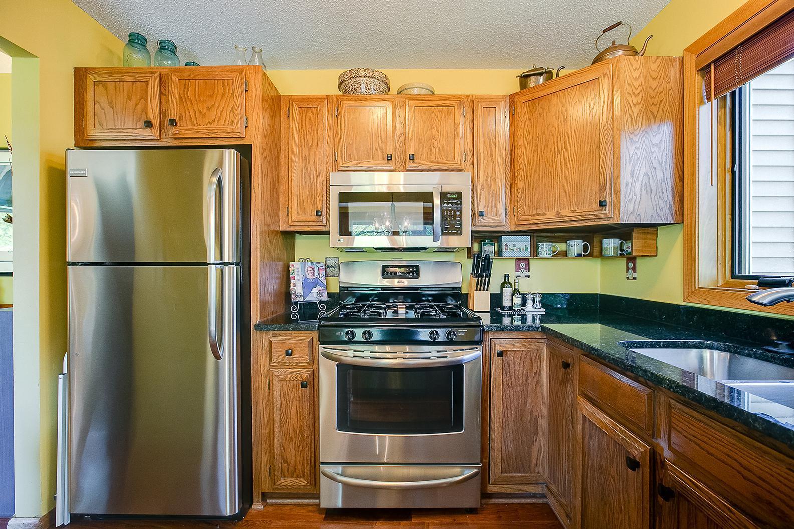 Awesome E.P. neighborhood awaits! Owners have thoughtfully cared for and updated their home with quality over the last 19 years! You’ll love it! Beautiful lot with mature trees, fully fenced yard with gardens, great deck, & patio for outdoor gatherings! Open floorplan offers Rosewood + Maple flooring on main, super kitchen with granite counters + breakfast bar, and walk-thru owners full ceramic bath! Lower level has large family room with brick gas fireplace, bedroom, 3/4 bath & laundry!