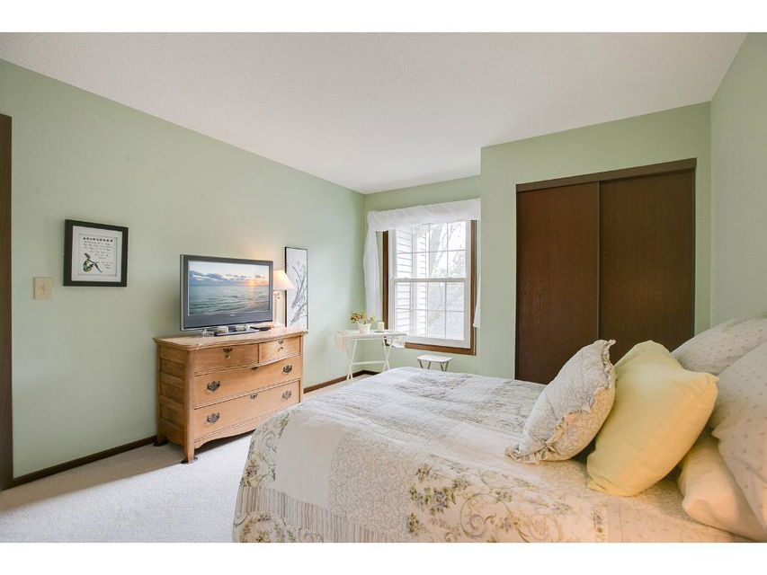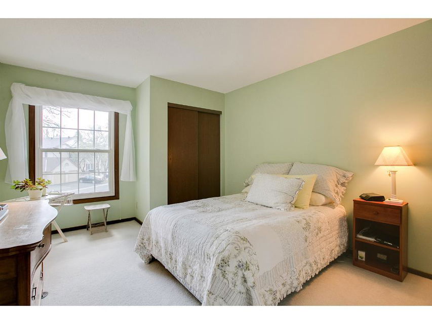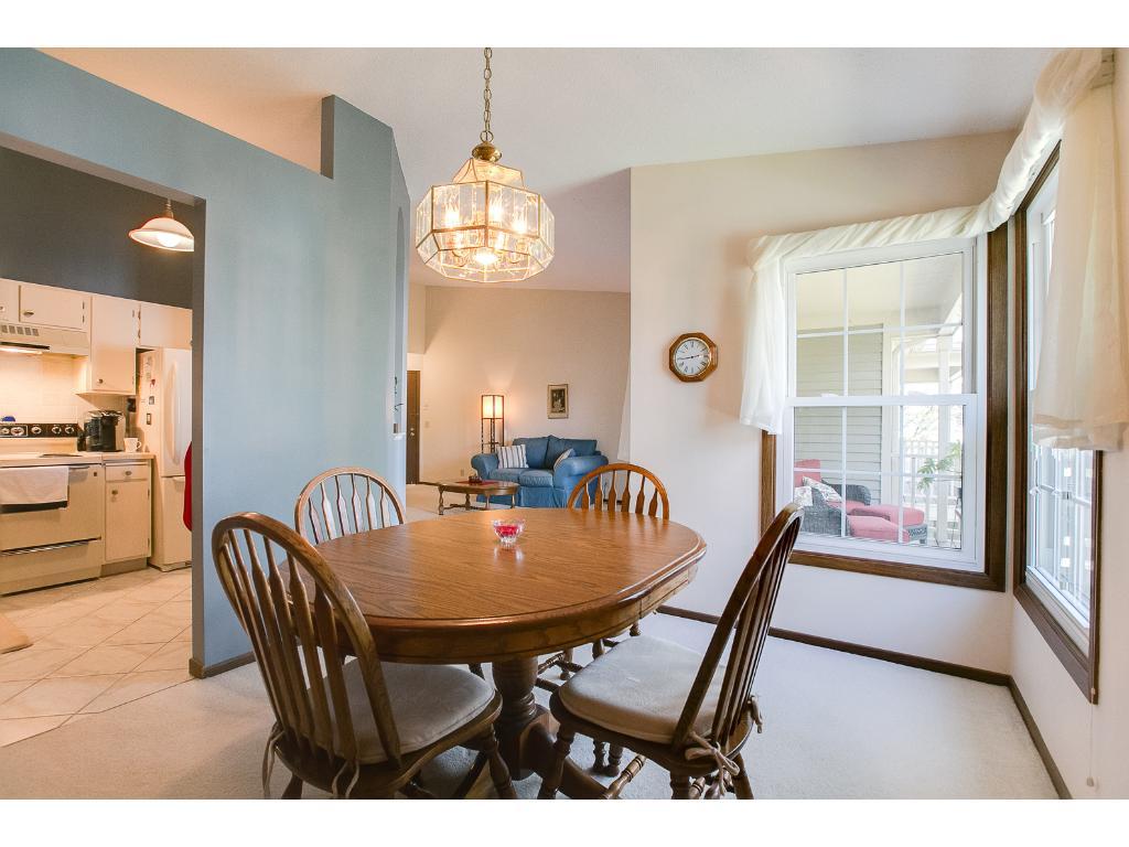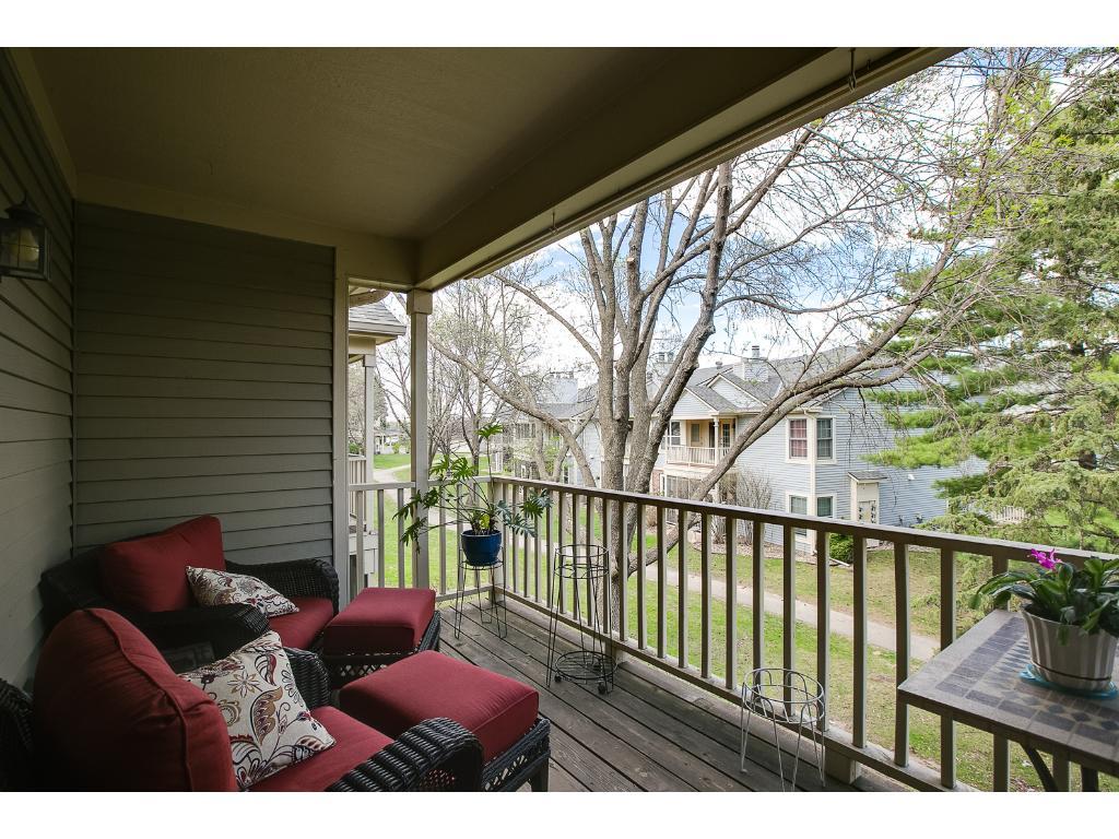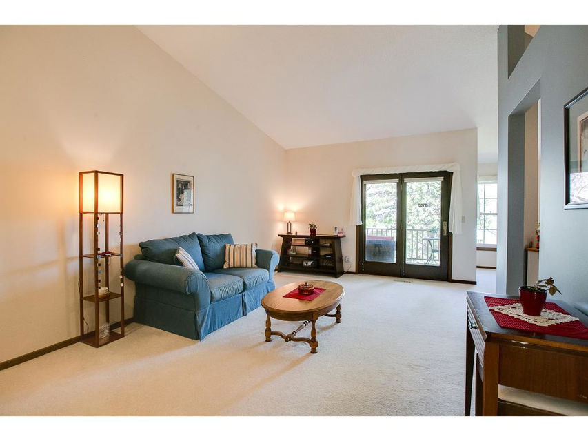 Treetop views of green space off your private deck! Turn-key Devonwood 2BR/2BA upper level condo in super W. Bloomington locale! Open floor plan, vaulted ceilings, formal dining, spacious kitchen, in-unit laundry & 1 car detached garage. Private master bath with double sinks, plenty of storage in unit! Close to shopping and parks!