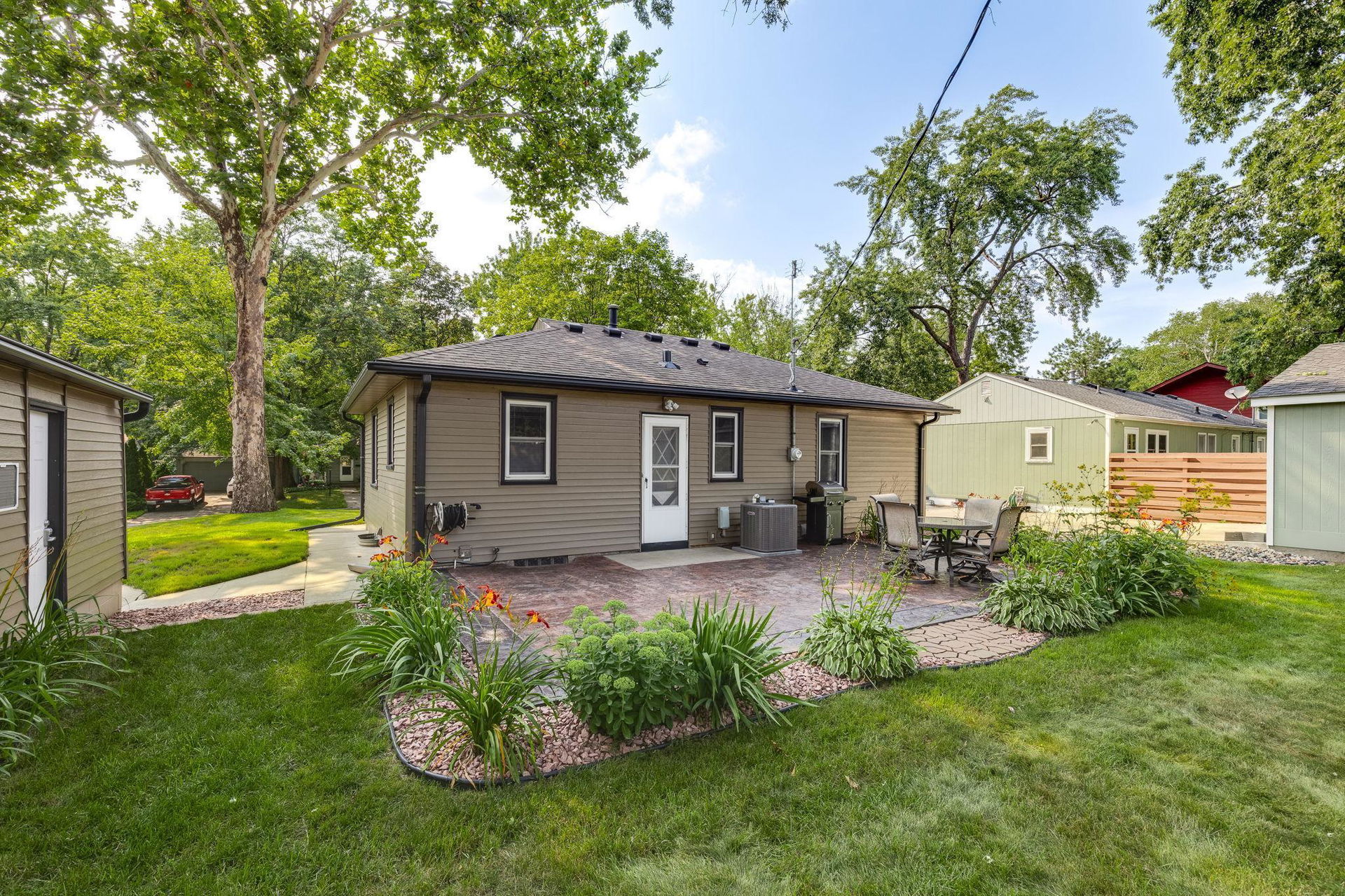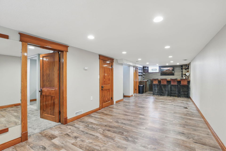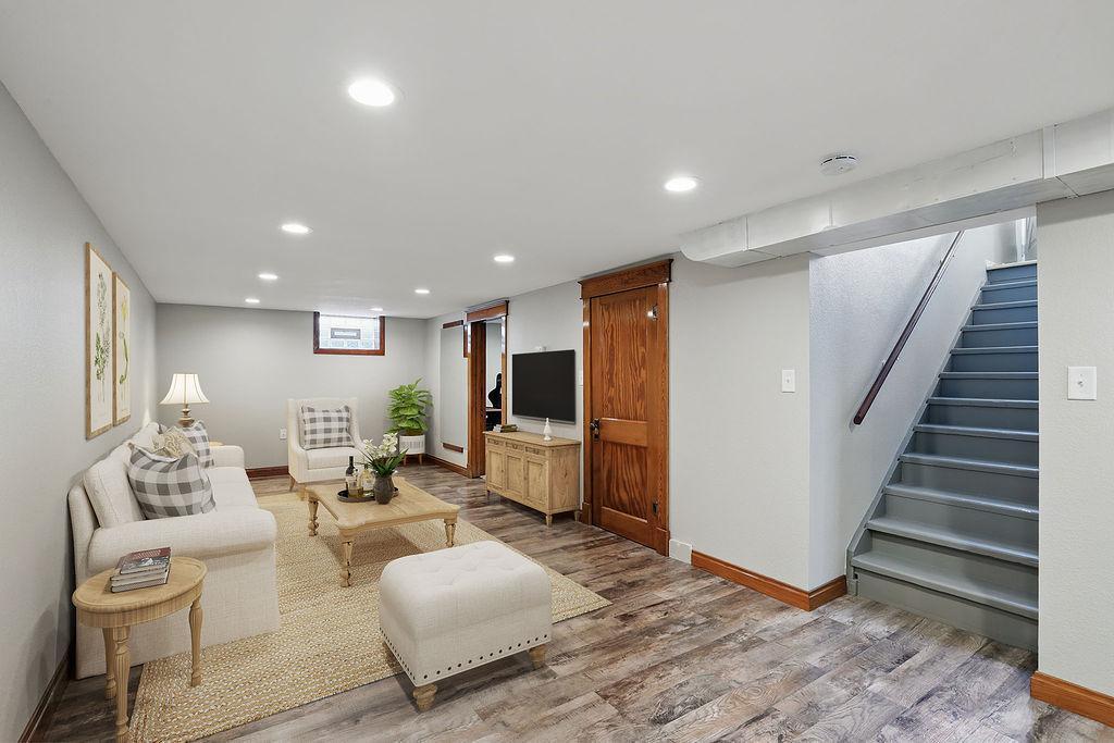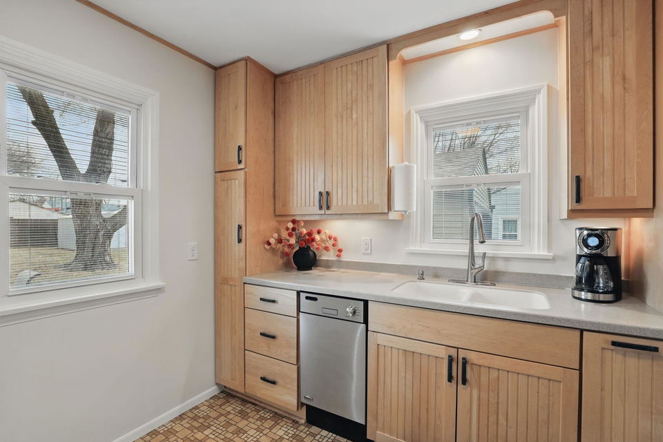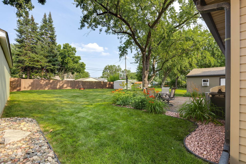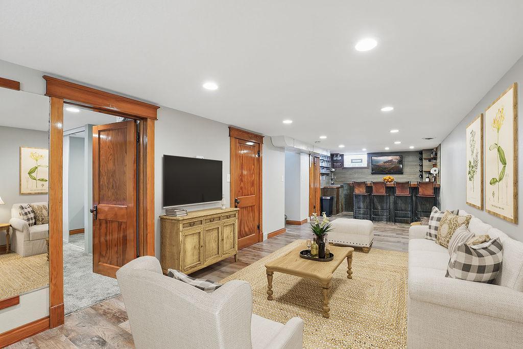 Welcome to this exceptional home, offering 3 bedrooms, 2 bathrooms, and a spacious 2-car garage! Step inside to discover beautiful hardwood floors, all-new lighting, refreshed trim and 6 panel doors plus crown molding and vinyl windows with built-in blinds. The living room boasts a large picture window, while the adjacent informal dining space flows seamlessly into a beautifully appointed kitchen featuring maple cabinets, stainless steel appliances, Silestone countertops, a pantry, and a charming kitchen window. The lower level impresses with a stylish remodel, showcasing a wet bar with a sink, custom glass holders and shelving, a ¾ bath, and a cozy bedroom with an egress window. Outside, the stamped concrete patio is perfect for entertaining, offering great views of the expansive backyard, which is partially fenced for added privacy. Garage was raised two full blocks and is partially insulated with heater. Recent upgrades ensure modern comfort, including fresh interior paint (2025), new ceiling fans in bedrooms (2025), refrigerator (2023), water heater (2021), furnace with humidifier (2021), A/C unit (2021), basement remodel (2020), and roof replacement (2013). Nestled in a prime location, this home provides convenient access to Centennial Lakes shopping and walking paths, Southdale and Southtown shopping centers, many restaurants, highly rated schools, and scenic parks like Woodlake Nature Center. Commuting is effortless with nearby access to 494, Crosstown, and 35W. Pride of ownership is evident throughout—this is a must-see!