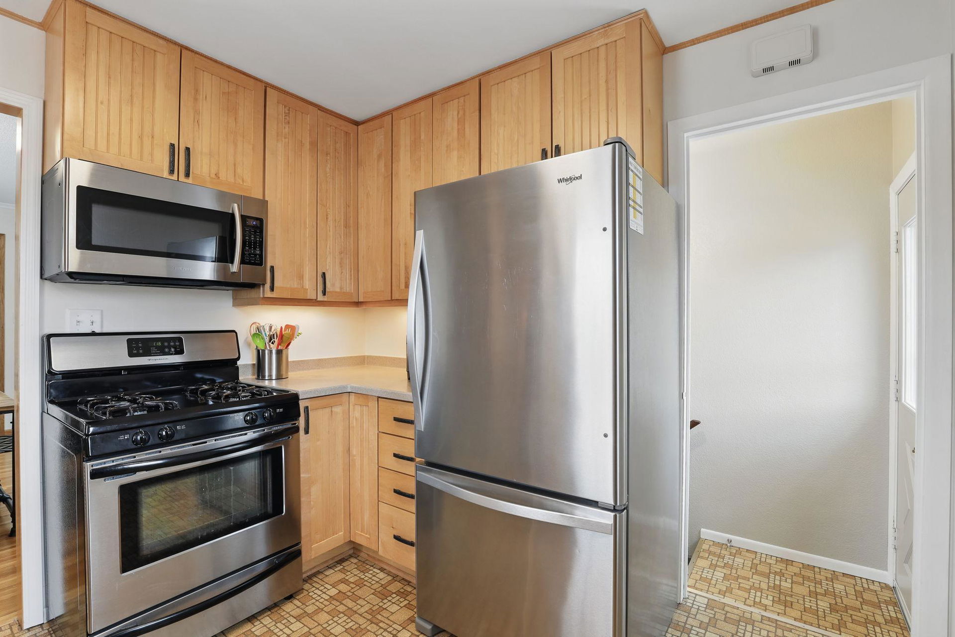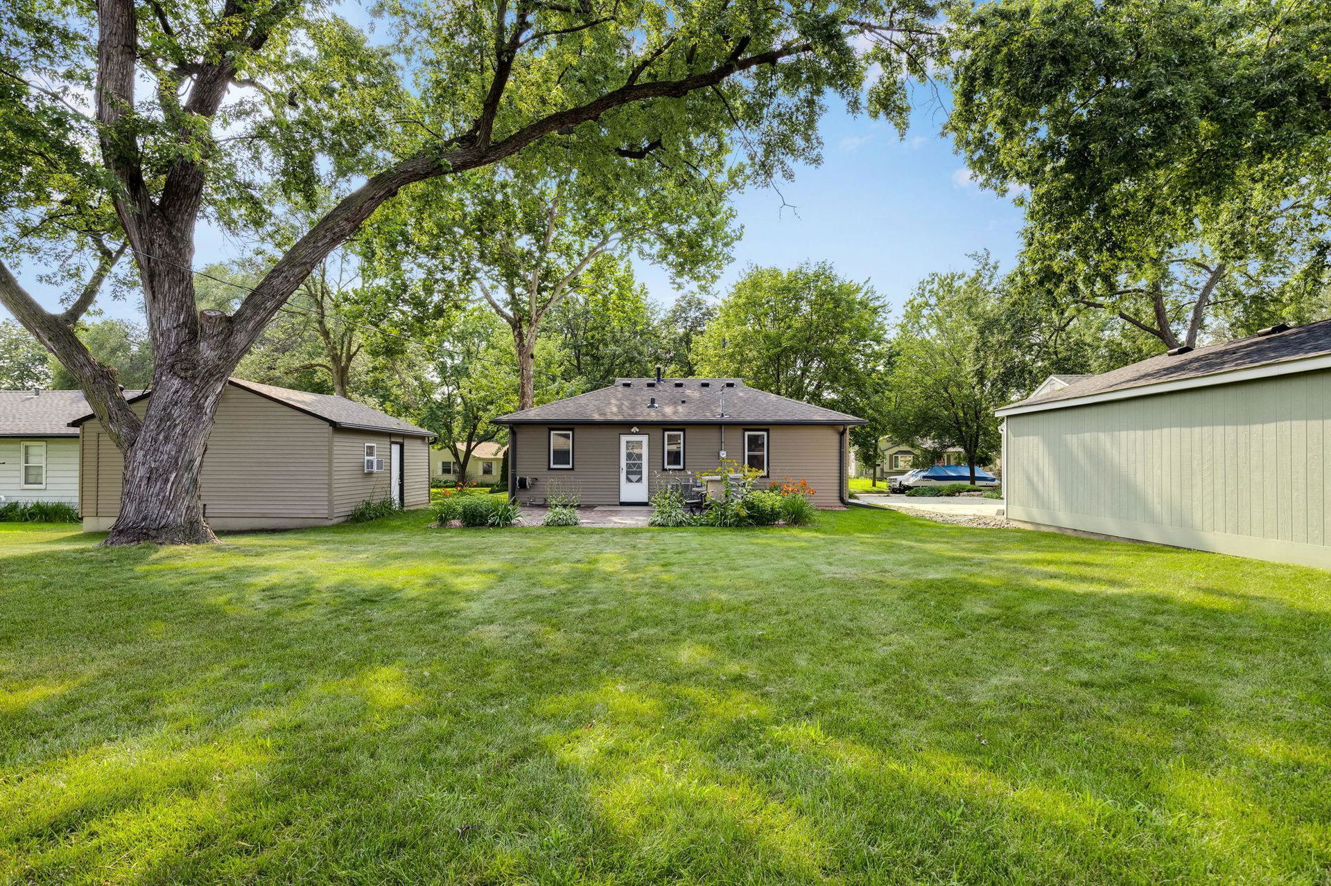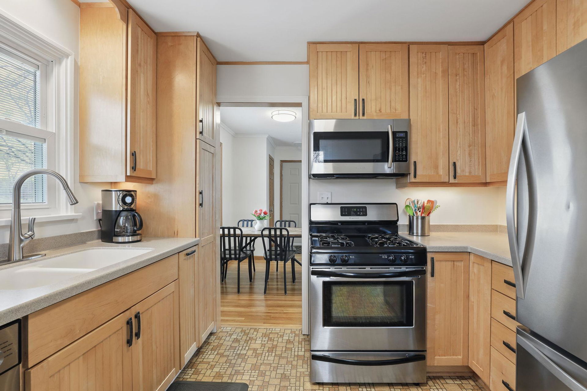 Welcome to this exceptional home, offering 3 bedrooms, 2 bathrooms, and a spacious 2-car garage! Step inside to discover beautiful hardwood floors, all-new lighting, refreshed trim and 6 panel doors plus crown molding and vinyl windows with built-in blinds. The living room boasts a large picture window, while the adjacent informal dining space flows seamlessly into a beautifully appointed kitchen featuring maple cabinets, stainless steel appliances, Silestone countertops, a pantry, and a charming kitchen window. The lower level impresses with a stylish remodel, showcasing a wet bar with a sink, custom glass holders and shelving, a ¾ bath, and a cozy bedroom with an egress window. Outside, the stamped concrete patio is perfect for entertaining, offering great views of the expansive backyard, which is partially fenced for added privacy. Garage was raised two full blocks and is partially insulated with heater. Recent upgrades ensure modern comfort, including fresh interior paint (2025), new ceiling fans in bedrooms (2025), refrigerator (2023), water heater (2021), furnace with humidifier (2021), A/C unit (2021), basement remodel (2020), and roof replacement (2013). Nestled in a prime location, this home provides convenient access to Centennial Lakes shopping and walking paths, Southdale and Southtown shopping centers, many restaurants, highly rated schools, and scenic parks like Woodlake Nature Center. Commuting is effortless with nearby access to 494, Crosstown, and 35W. Pride of ownership is evident throughout—this is a must-see!