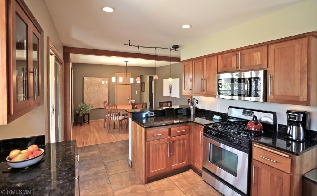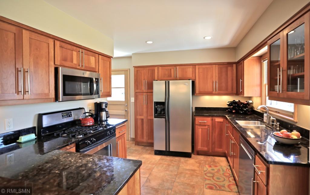 Immaculate updated one story home in convenient Richfield location! Stunning renovated kitchen w/granite counters, st. steel appliances, abundant cherry cabinets opens to dining room, perfect for entertaining. Relax and enjoy the summer breeze in the vaulted 3 season porch off the back of the home. 2 bedrooms on the main floor and classic tiled full bath. Living room w/cut stone fireplace, hardwood floors under carpet. Lower level tiled 3/4 bath. French doors open to 3rd bedroom w/egress window. Generous LL family room w/brick fireplace & built in office area. Central air conditioning. Attached one car garage w/extra space for storage. 2 tiered deck off back porch & paver patio area. Expansive fenced yard w/raised garden beds, space for gardening. Walking distance to restaurants, shopping, & easy access for commuting.