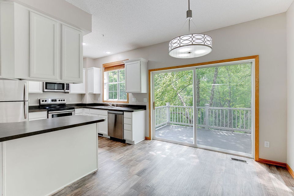 Fabulous townhome in The Gables at Arbor Pointe. Enjoy private wooded views from the deck or looking out the kitchen window. Kitchen and dining room have luxury vinyl flooring. All new stainless appliances in kitchen in 2019. Enjoy the main floor layout featuring high ceilings, a gas fireplace, a half bath, informal dining room, kitchen, deck with sliding glass door and large windows that bring in beautiful natural light. New Washer/Dryer, Water Heater (2021), and smart thermostat. Roof was done in 2021 by association. Bedrooms are oversized and have plenty of room for dressers and other furniture. There is a third bedroom in lower level that could also be made into a family room/flex room. The development backs up to Arbor Pointe golf club, an executive 9 hole golf course. Convenient to parks, trails, restaurants, shopping and schools. A must see!