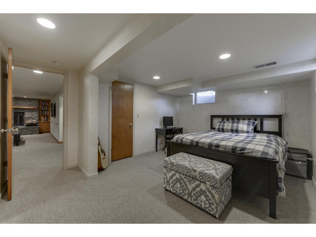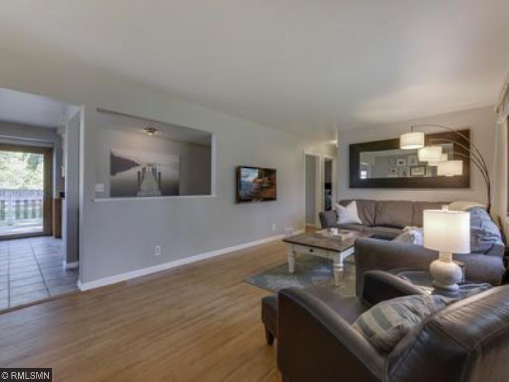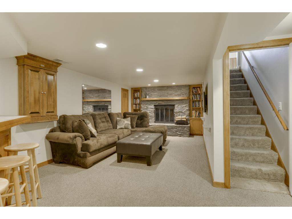 Wonderfully updated rambler situated in a cozy cul-da-sac with a HUGE fenced in backyard. The light and bright main level includes refinished hardwood floors, new trim, new paint, new SS appliances, and heated tile floors in the kitchen and bathroom! 3rd bedroom up is being used as a dining room. The lower level welcomes you with a fantastic private suite (non conforming) with walk in closet, entertainers bar w/cabinetry, wood burning fireplace with custom mantle, and a huge amount of storage!